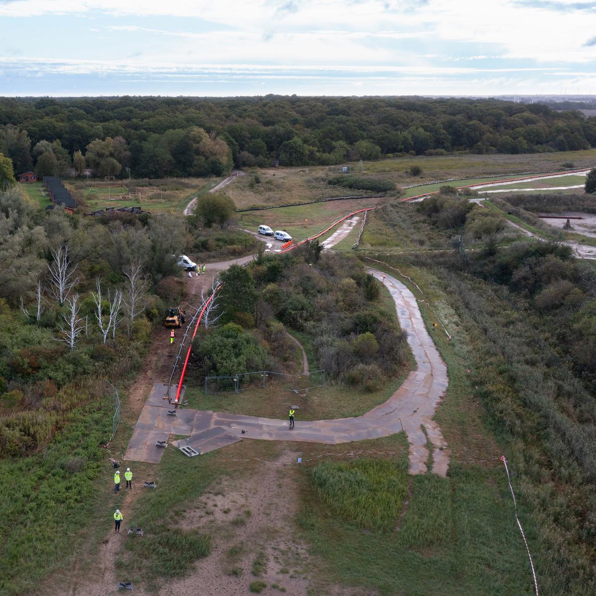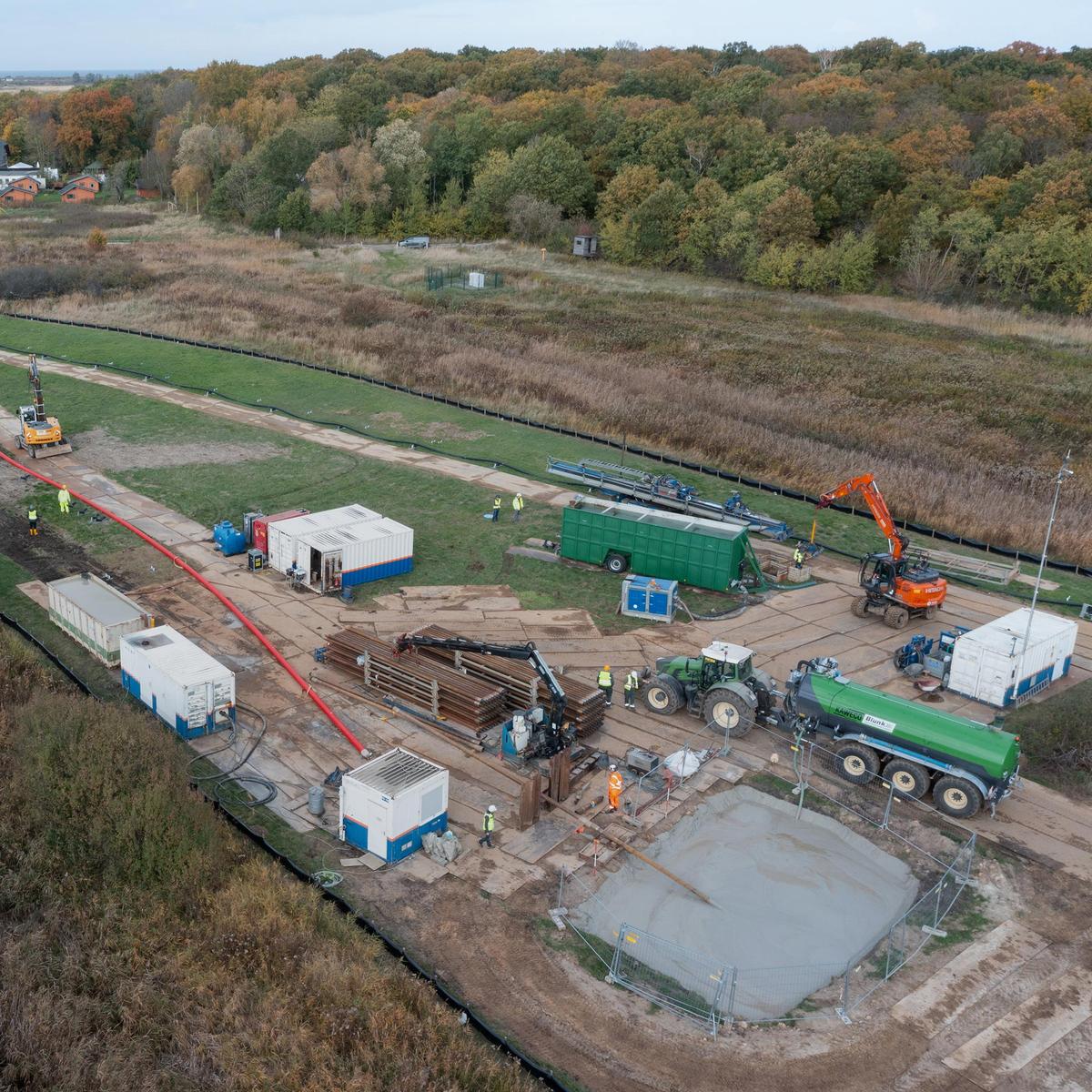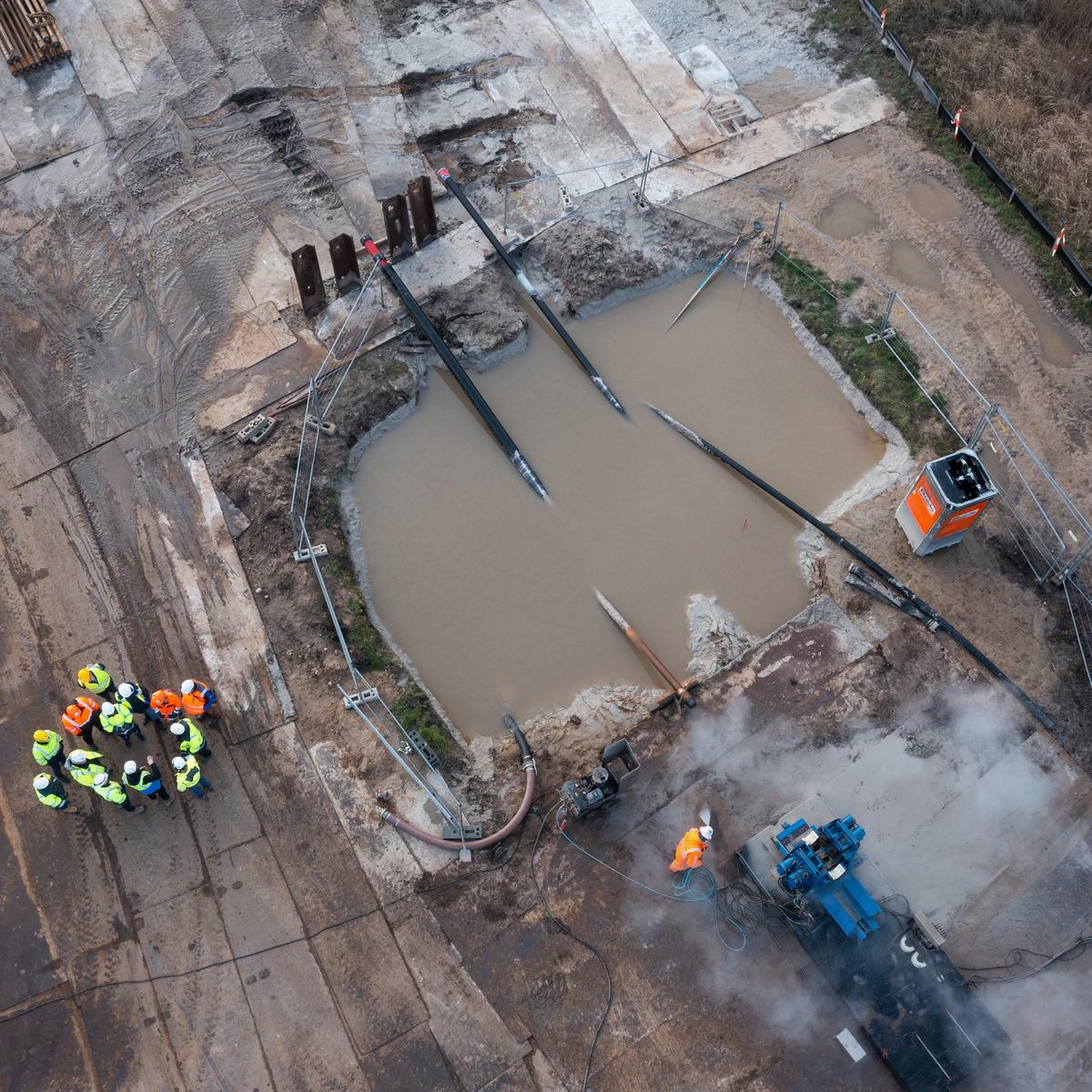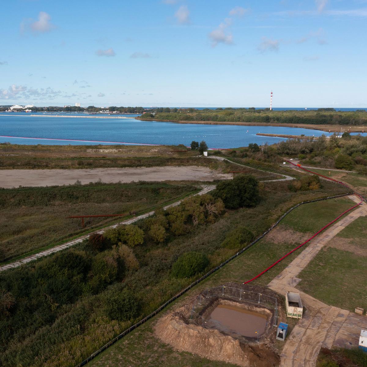 Bei laufendem Betrieb der vorhandenen 400 kV Kabeltrasse KONTEK haben die Energieinfrastruktur-Spezialisten im Raum Rostock auf einer Länge von 14 km – teilweise in einem Abstand von nur wenigen Metern – parallel die neue KONTEK-Kabeltrasse errichtet. 9 km davon wurden in 22 HDD-Bohrungen in geschlossener Bauweise gebaut. Zwei der HDD-Bohrungen mit einer Länge von 750 bzw. 950 m, eine davon in ca. 26 m Tiefe unter dem Breitling hinweg.