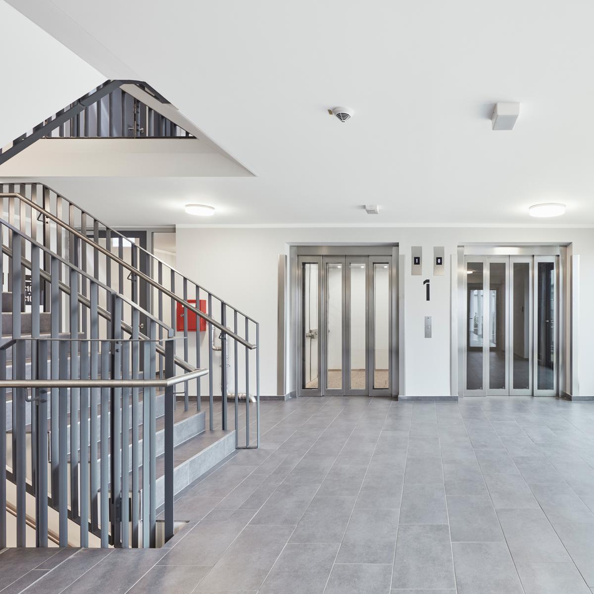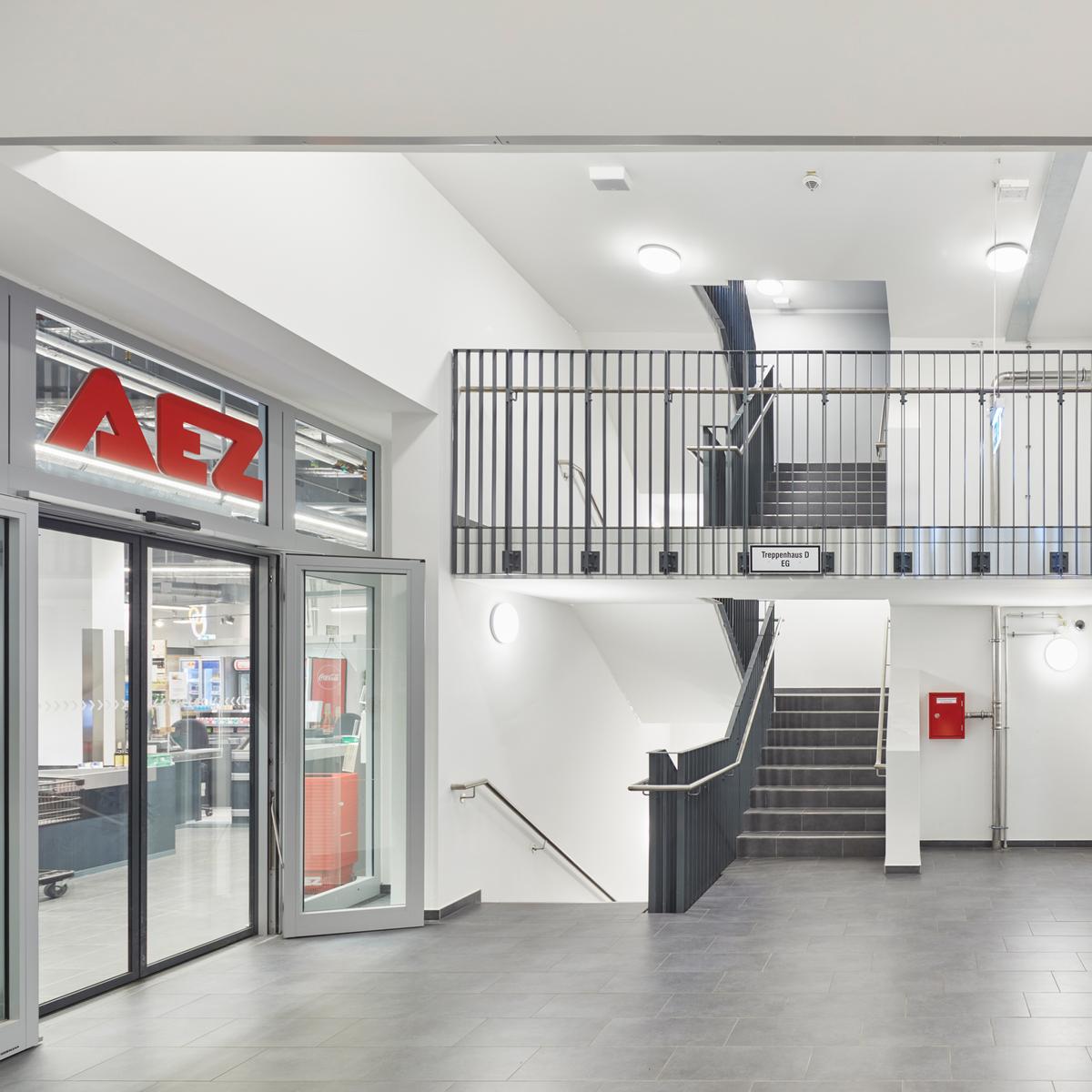 Schlüsselfertiger Neubau eines Wohn- und Geschäftshauses mit Tiefgarage als Erweiterung des Amper-Einkaufszentrums inkl. Ausführungs- und Tragwerksplanung. Eine besondere Herausforderung stellte das Bauen im laufenden Einkaufsbetrieb ohne ausreichend Logistikflächen dar. Zudem realisierte Köster 100 Wohneinheiten und verantwortete den Rückbau eines alten Bauwerks sowie die Gestaltung bzw. Umsetzung einer optimierten Wärmedämmung der Gebäudehülle.