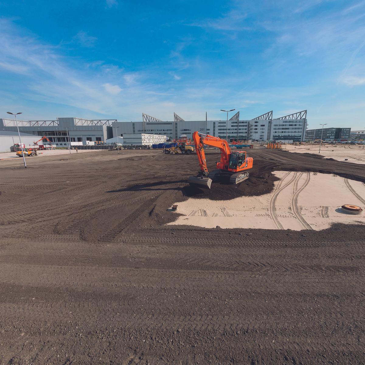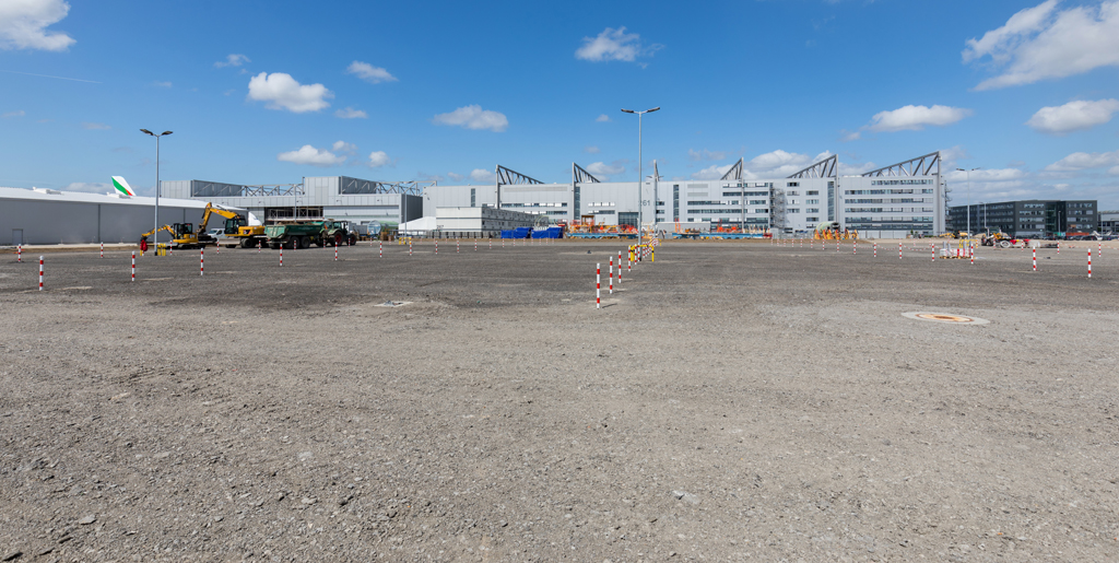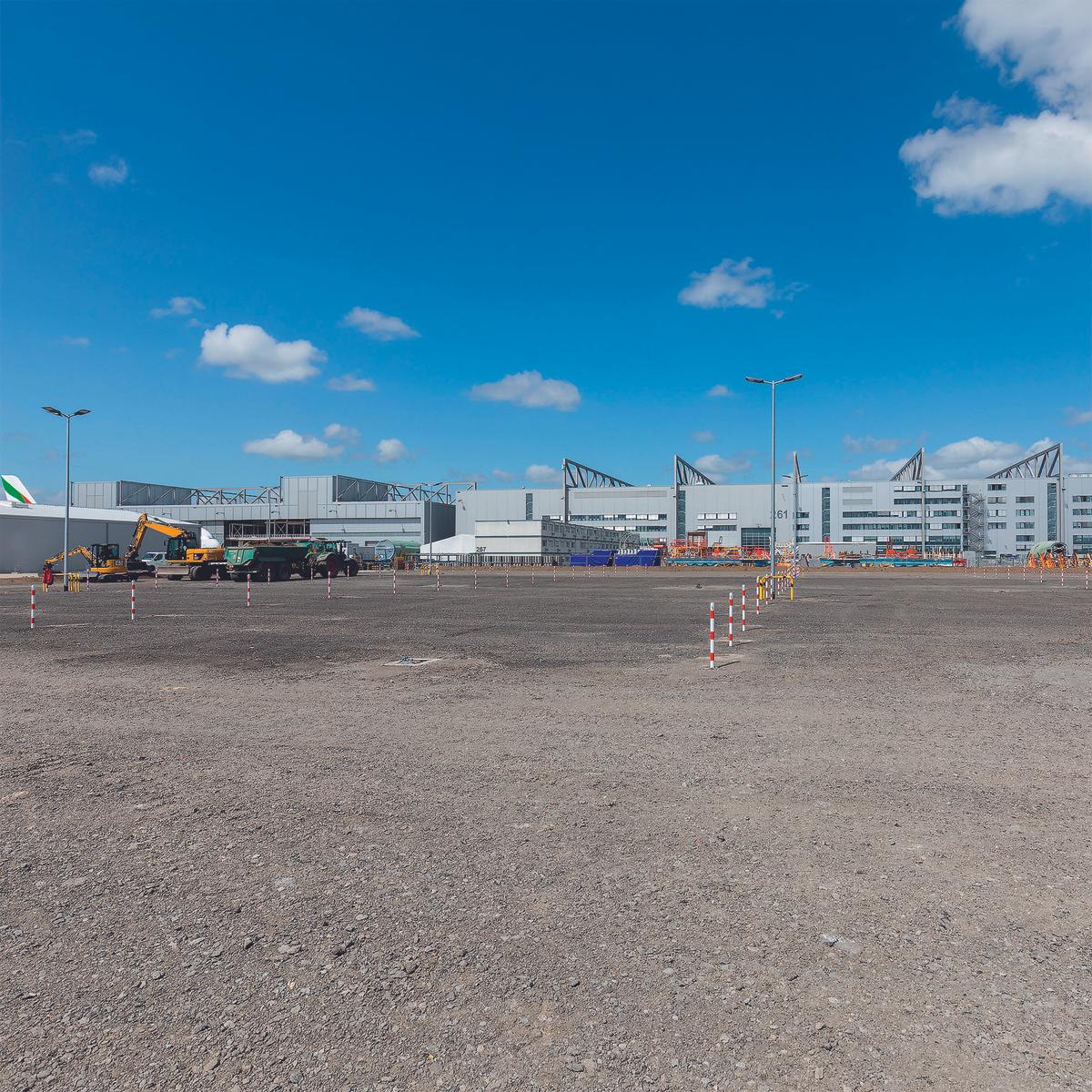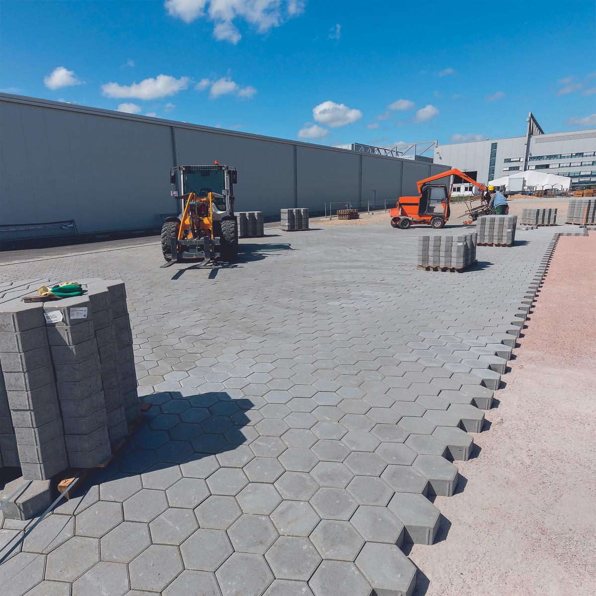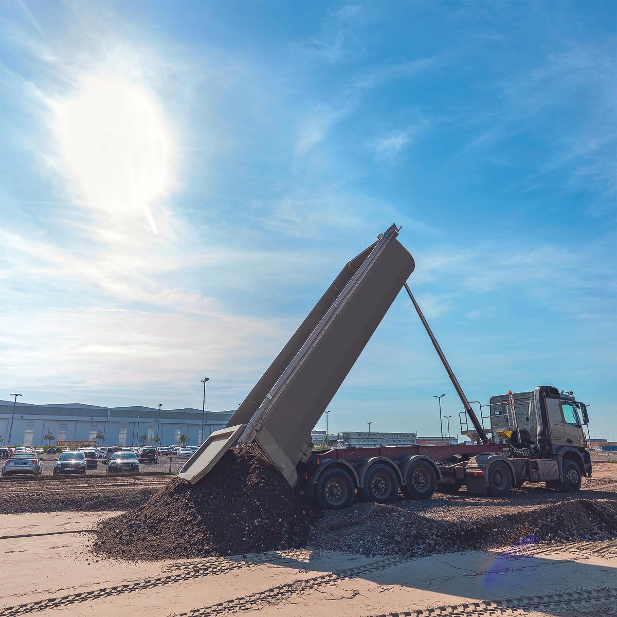 Erstellung eines Schotterparkplatzes sowie Infrastrukturmaßnahmen für eine Logistikhalle.
