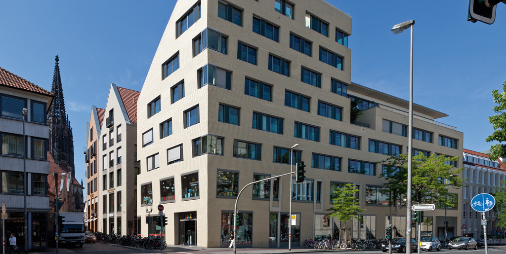 Der Hochbau Münster realisierte nach Abschluss umfangreicher Spezialtiefbauarbeiten den Rohbau zum Gebäudekomplex am Alten Fischmarkt bestehend aus 7 Wohn- und Geschäftshäusern inkl. Tiefgarage.