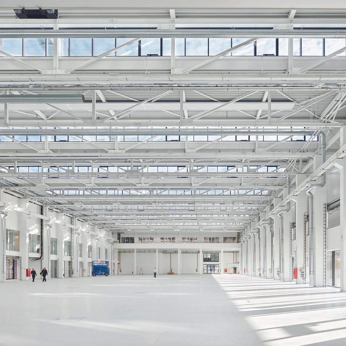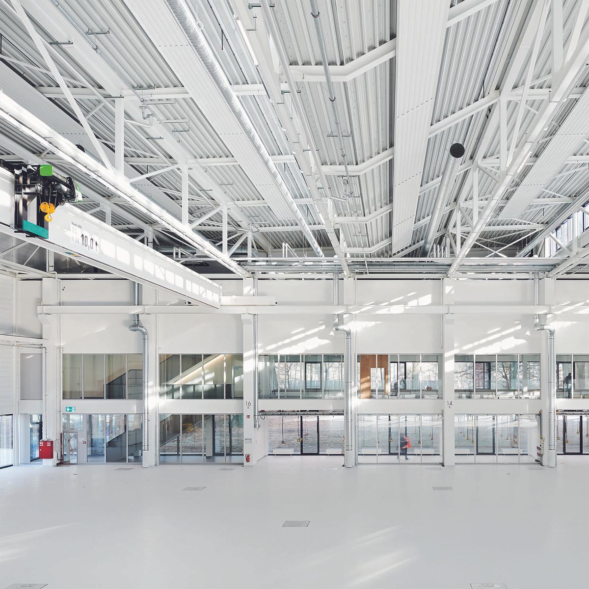 Schlüsselfertiger Neubau eines Multifunktionsgebäudes mit Technikhalle sowie Büro- und Schulungsräumen für 140 Mitarbeiter/innen für das Forschungsprogramm „Wandlungsfähige Produktion der Zukunft für funktionsintegrierten Leichtbau“. Mit der internen Fachabteilung für Bautechnik und Innovation wurde bereits in der Planungsphase eine individuelle technische Optimierung für die Realisierung der speziellen gefalteten Fassade entwickelt. Herzstück ist eine 4.700 qm große, stützenfrei erstellte Werkstatt- und Fabrikationshalle, in der in Zukunft interdisziplinär neue Produktionstechnologien im Automobilbau entwickelt werden.