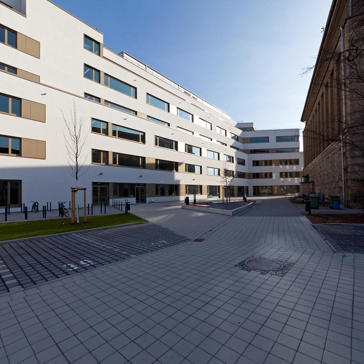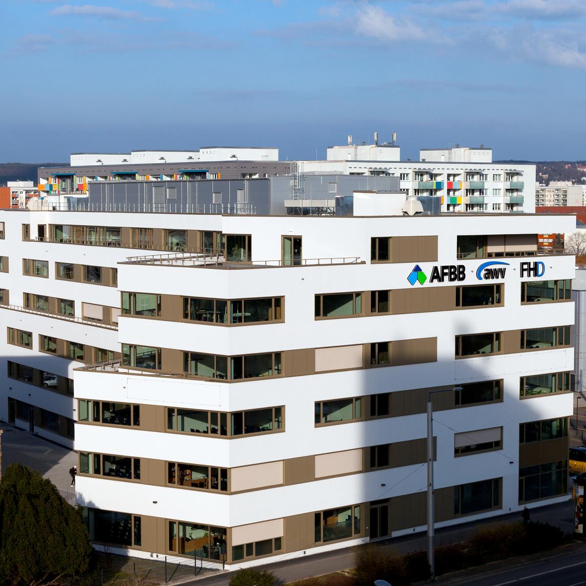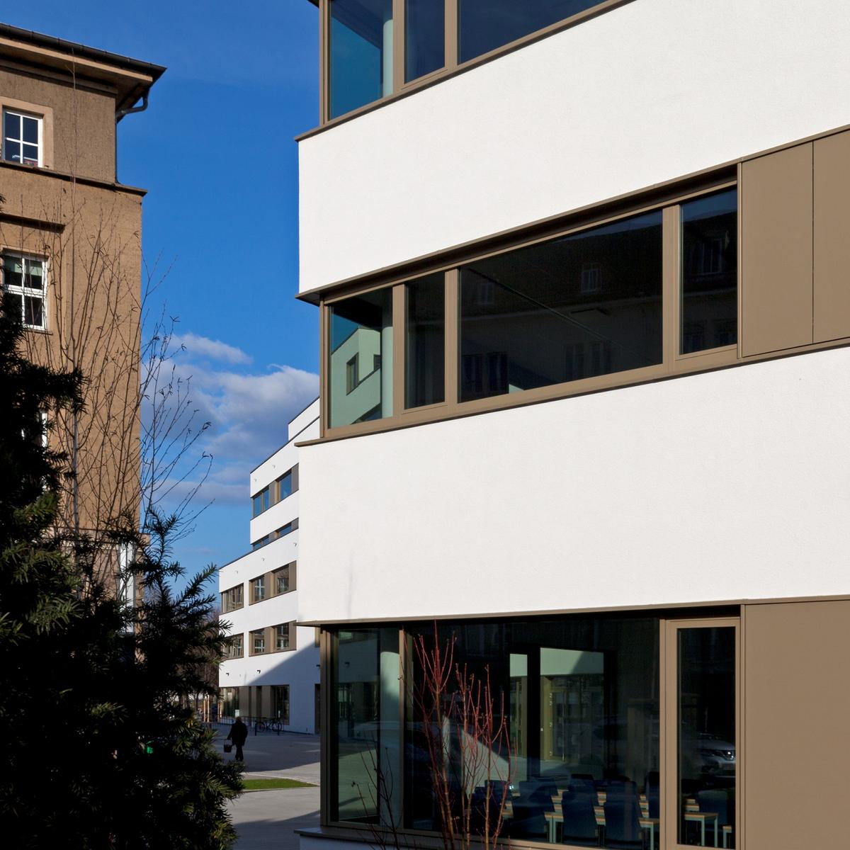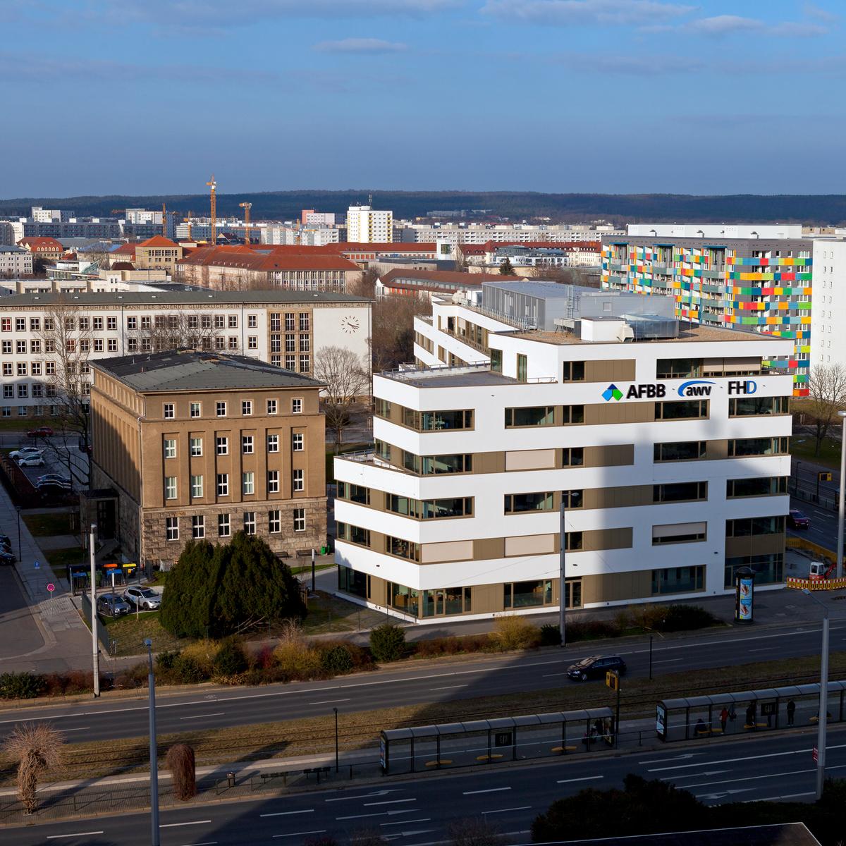 Schlüsselfertiger Neubau des 6-geschossigen Schul- und Verwaltungszentrums mit einer hochwertigen Alu-Glas-Fassade. Neben Seminarräumen und Hörsälen ist dort auch eine Mensa untergebracht. Der Kunde profitierte hier von den Lösungen, die der Köster Geschäftsbereich Bautechnik und Innovation (BTI) bereits bei der Angebotserstellung entwickelt hat. Zudem wurde zur Optimierung des Bewehrungsstahlverbrauches ein statisches 3D-Modell erzeugt.