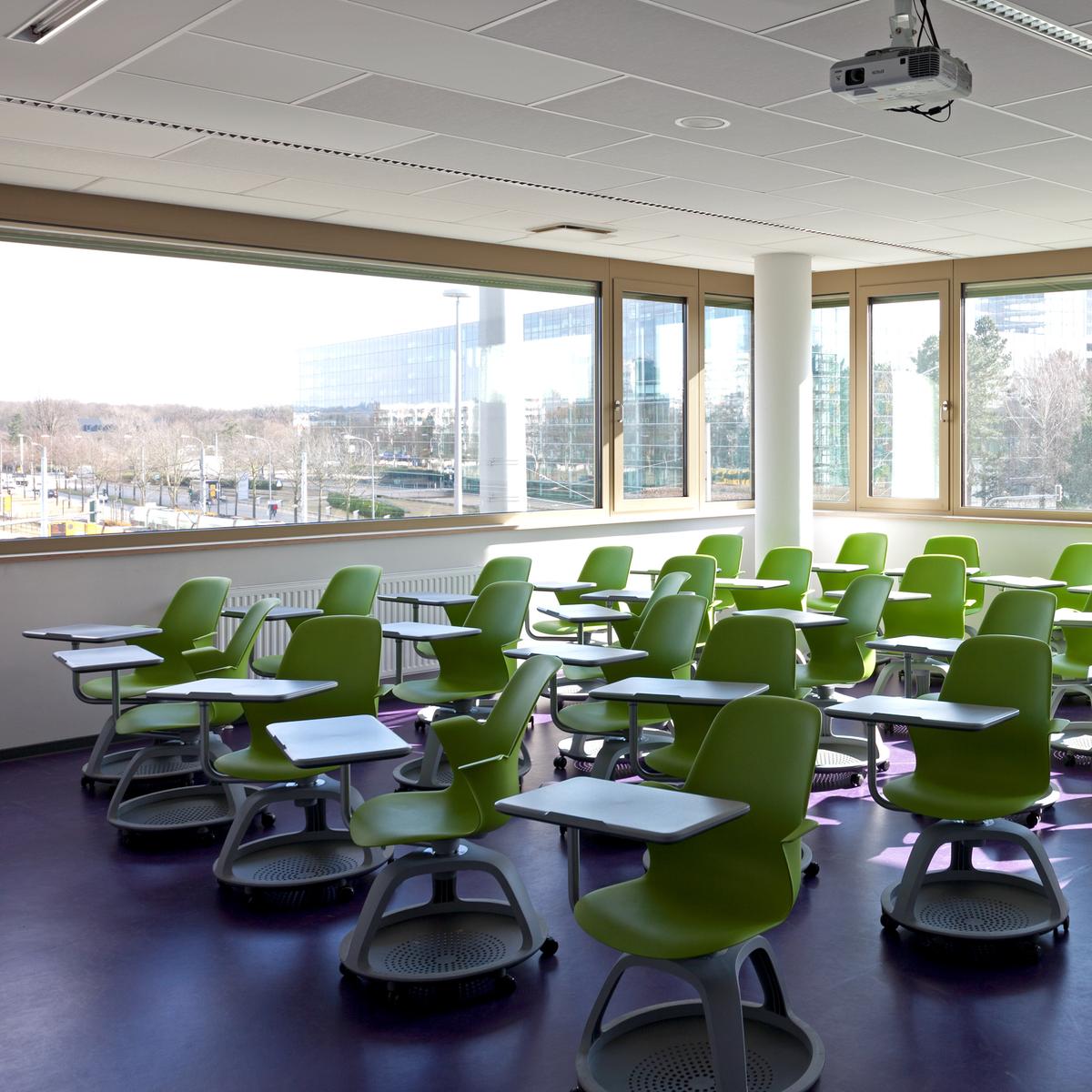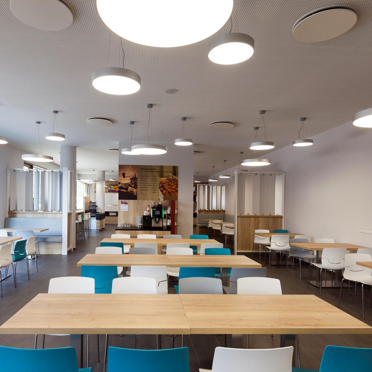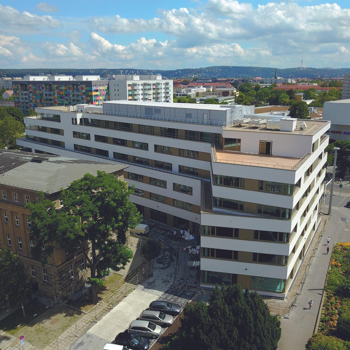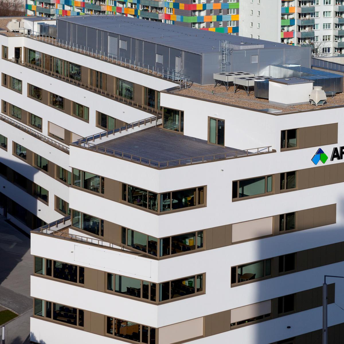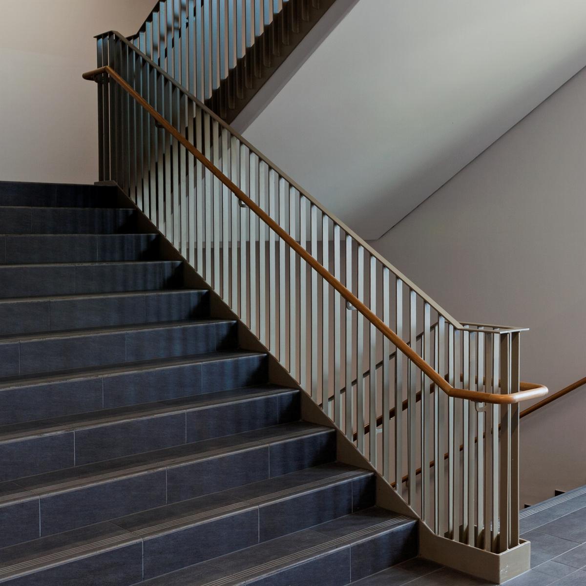 Schlüsselfertiger Neubau des 6-geschossigen Schul- und Verwaltungszentrums mit einer hochwertigen Alu-Glas-Fassade. Neben Seminarräumen und Hörsälen ist dort auch eine Mensa untergebracht. Der Kunde profitierte hier von den Lösungen, die der Köster Geschäftsbereich Bautechnik und Innovation (BTI) bereits bei der Angebotserstellung entwickelt hat. Zudem wurde zur Optimierung des Bewehrungsstahlverbrauches ein statisches 3D-Modell erzeugt.