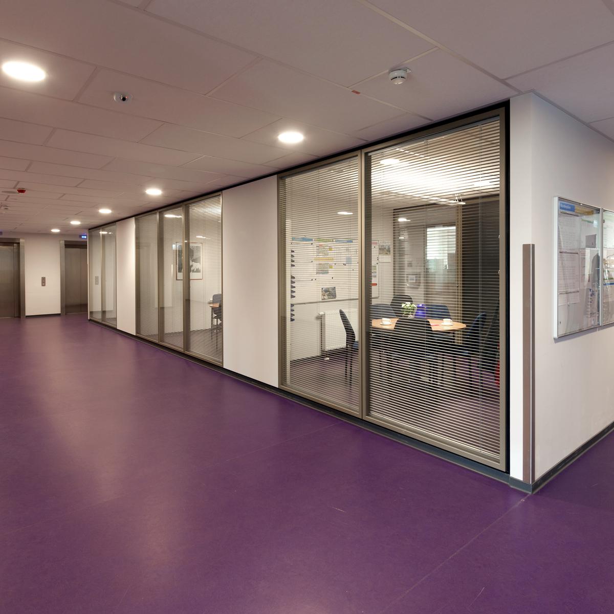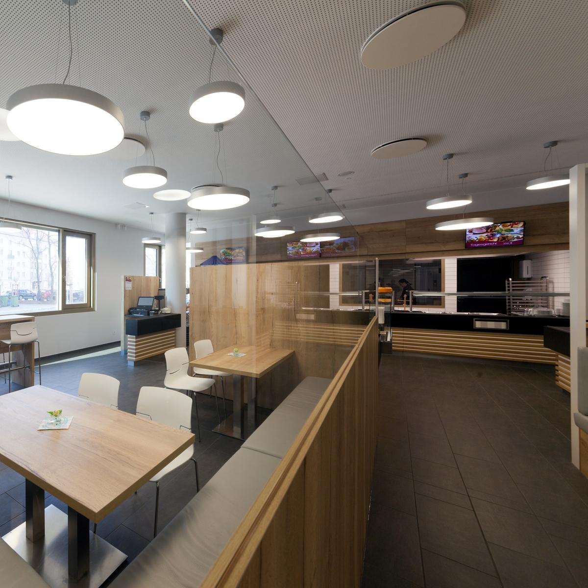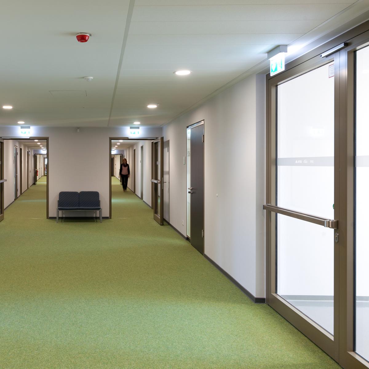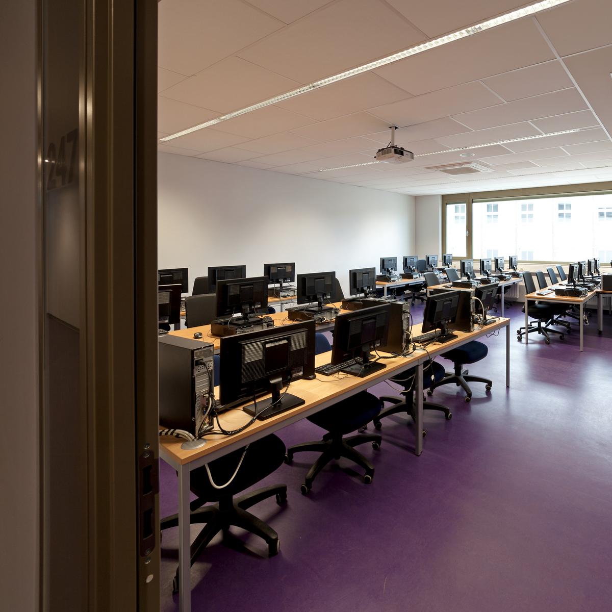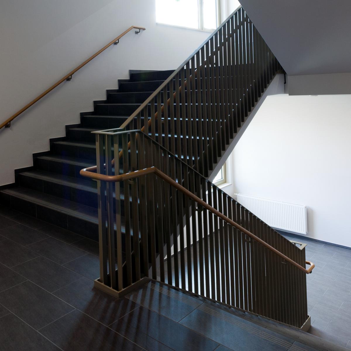 Schlüsselfertiger Neubau des 6-geschossigen Schul- und Verwaltungszentrums mit einer hochwertigen Alu-Glas-Fassade. Neben Seminarräumen und Hörsälen ist dort auch eine Mensa untergebracht. Der Kunde profitierte hier von den Lösungen, die der Köster Geschäftsbereich Bautechnik und Innovation (BTI) bereits bei der Angebotserstellung entwickelt hat. Zudem wurde zur Optimierung des Bewehrungsstahlverbrauches ein statisches 3D-Modell erzeugt.