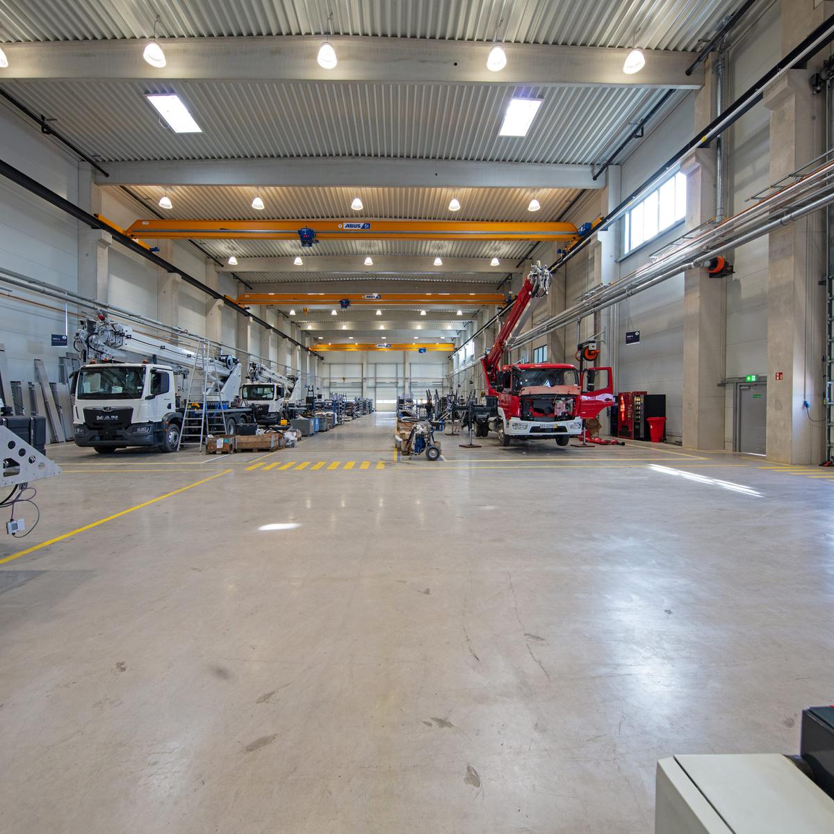 Schlüsselfertiger Neubau einer Montagehalle mit Bürotrakt und Checklaufplatz sowie die Erweiterung zweier Bestandshallen im laufenden Werksbetrieb. Die Bauaufgabe beinhaltete die Planung aller Planungsphasen und setzte eine detaillierte Terminplanung und deren Sicherung voraus. Sowohl bei den vorangegangenen Abrissarbeiten als auch beim Neubau mussten zudem Lagerflächen bereitgehalten werden.