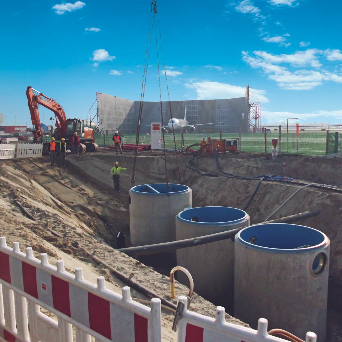 Damit die Airbus Operations GmbH ihre Beluga-Transportflugzeuge witterungsunabhängig entladen kann und somit die Planungssicherheit für ihre Transporte erhöht, erstellte Köster eine hochwertige Infrastruktur für die Beluga-Hallen in Bremen und Hamburg. Die Tiefbauer installierten die Entwässerungsleitungen, die Abwasser- und Feuerlöschsysteme und errichteten die Pump-, Abscheide- und weitere Sonderbauwerke. Außerdem verbanden sie die Infrastruktur mit dem Fernwärmesystem, realisierten die Elektroarbeiten und mit einer Tiefengründung auch die Auflagerbalken für die späteren Beladungssysteme bei laufendem Flug- und Geschäftsbetrieb.
