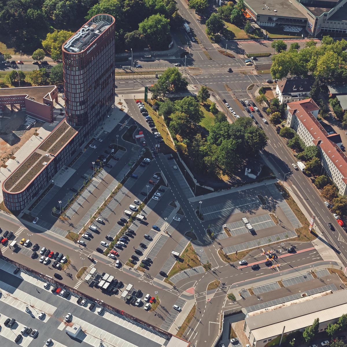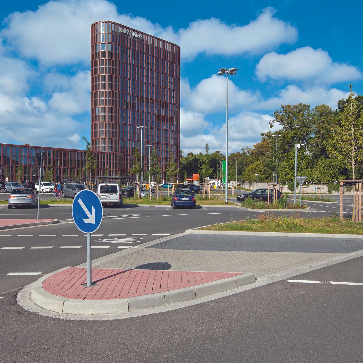 Auf dem kompletten Areal für den BraWoPark in Braunschweig erstellte die Köster GmbH die Außenanlagen als zusätzlichen Auftrag zur schlüsselfertigen Realisierung des Verwaltungsgebäudes Business Center II. Die Tiefbauer erstellen dazu neben der Entwässerung 45.000 qm befestigte Flächen in Asphalt, Pflaster oder Beton. Außerdem bauten sie ein unterirdisches Rückhaltebecken und eine 350 m lange Lärmschutzwand, bindeten das Gelände an das öffentliche Straßennetz an und erstellten Medien- und Versorgungsleitungen.