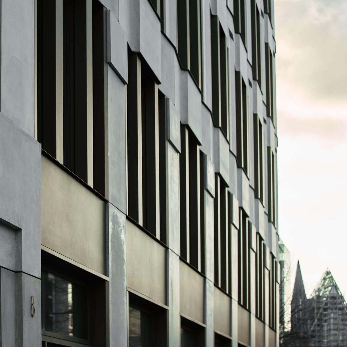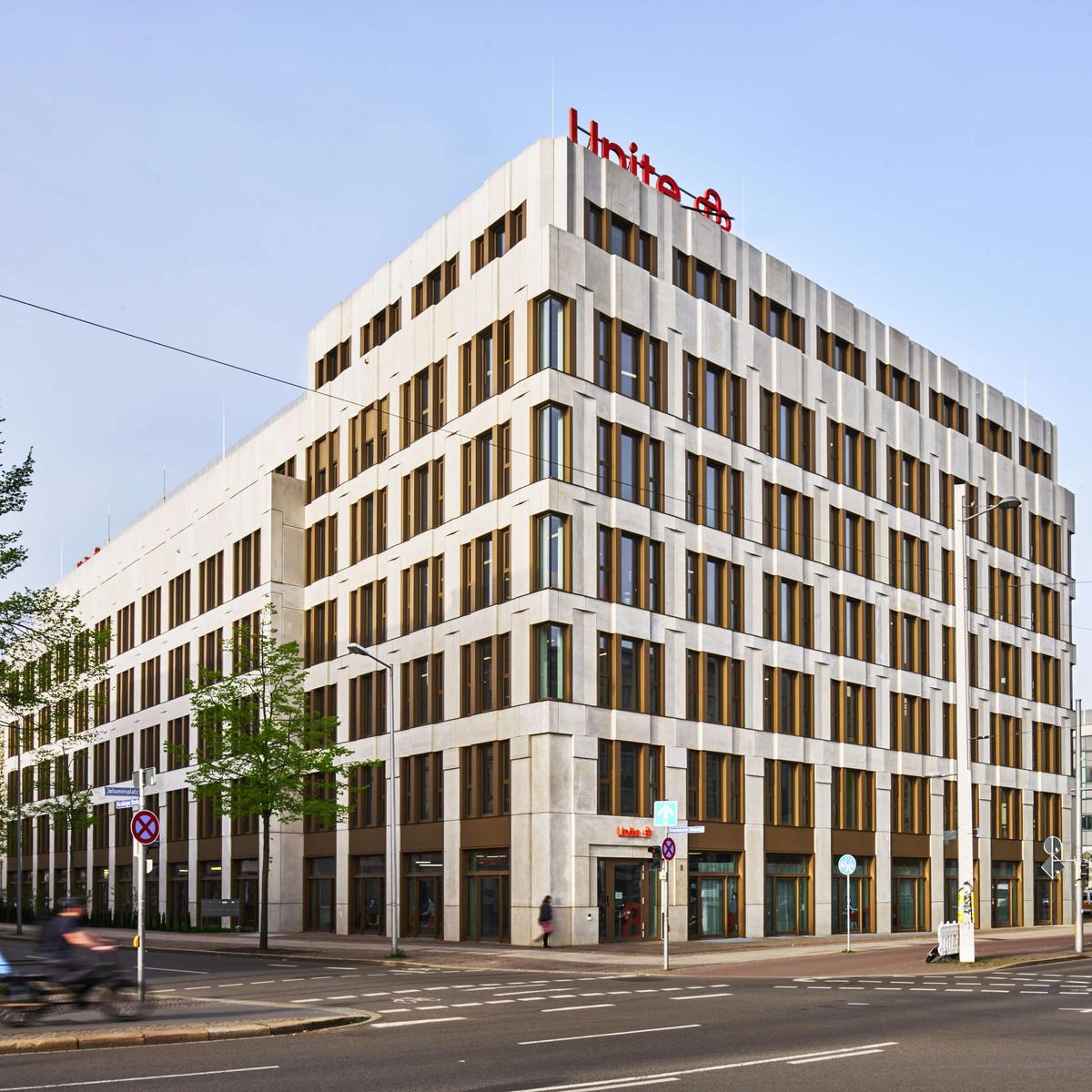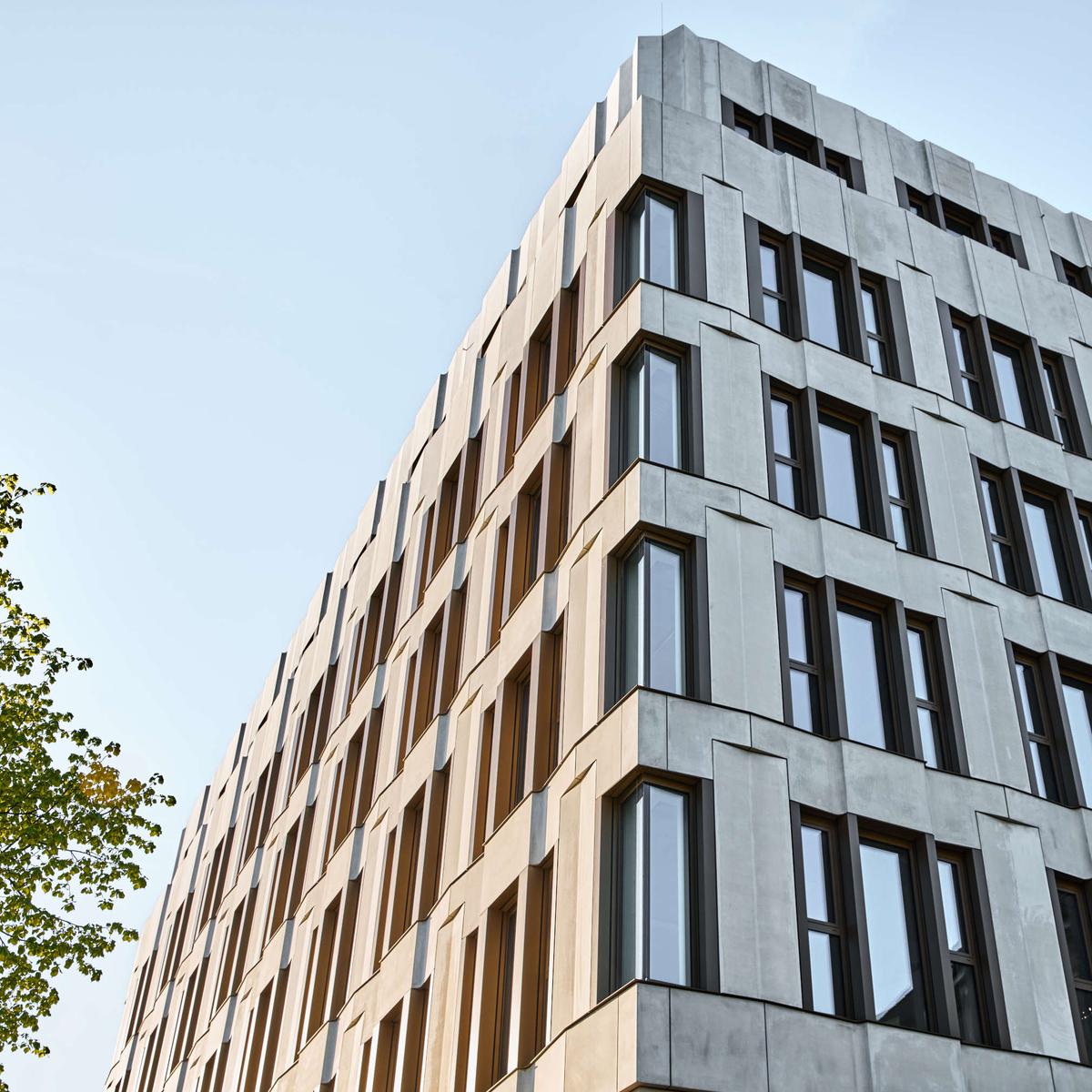 Das Gebäude besteht aus 2 Tiefgeschossen, einem Erdgeschoss sowie 6 Obergeschossen. Das statische Prinzip des U-förmigen Grundrisses folgt dem Grundsatz einer Skelettbauweise. In den Regelgeschossen wurden punktgestützte Deckenplatten geplant. Diese lagern im Gebäudeinnern auf Einzelstützen und im Fassadenbereich auf enger stehenden Fassadenscheiben auf.