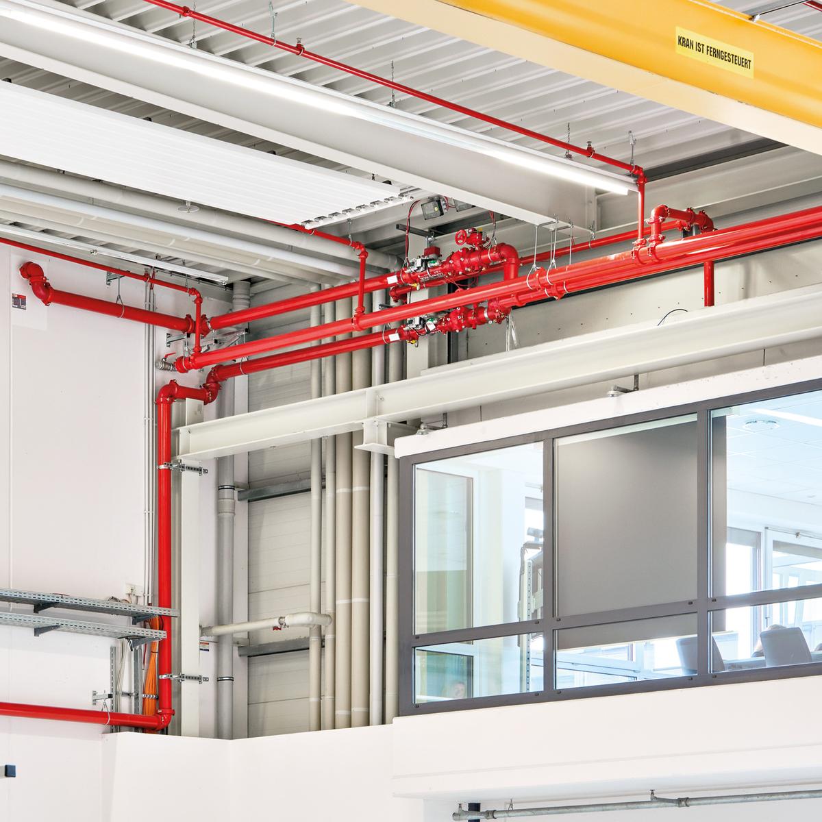 Köster übernahm innerhalb dieses Projekts die Erweiterung einer Bestandshalle um ca. 1.000 m². Dabei wurde eine Sprinkleranlage eingesetzt, die für einen verbesserten Brandschutz in den bestehenden und neuen Teilen der Produktions- und Lagerhalle sorgt. Dabei stellte das Bauen im Bestand in den bestehenden Teilen der Halle eine Herausforderung dar, konnte allerdings durch den Einsatz umfängliche Planung umgesetzt werden.