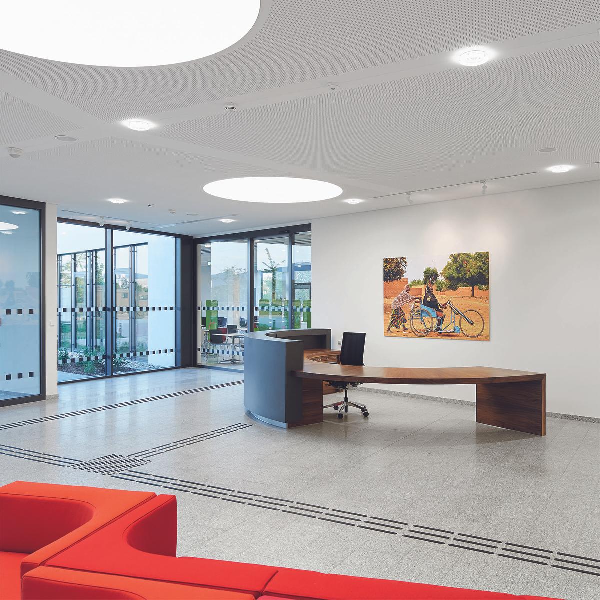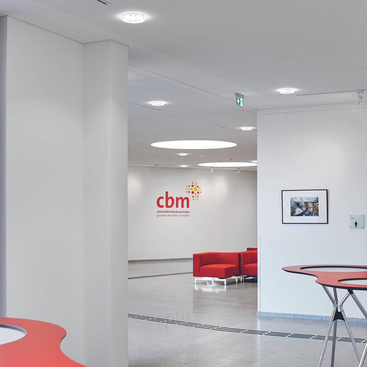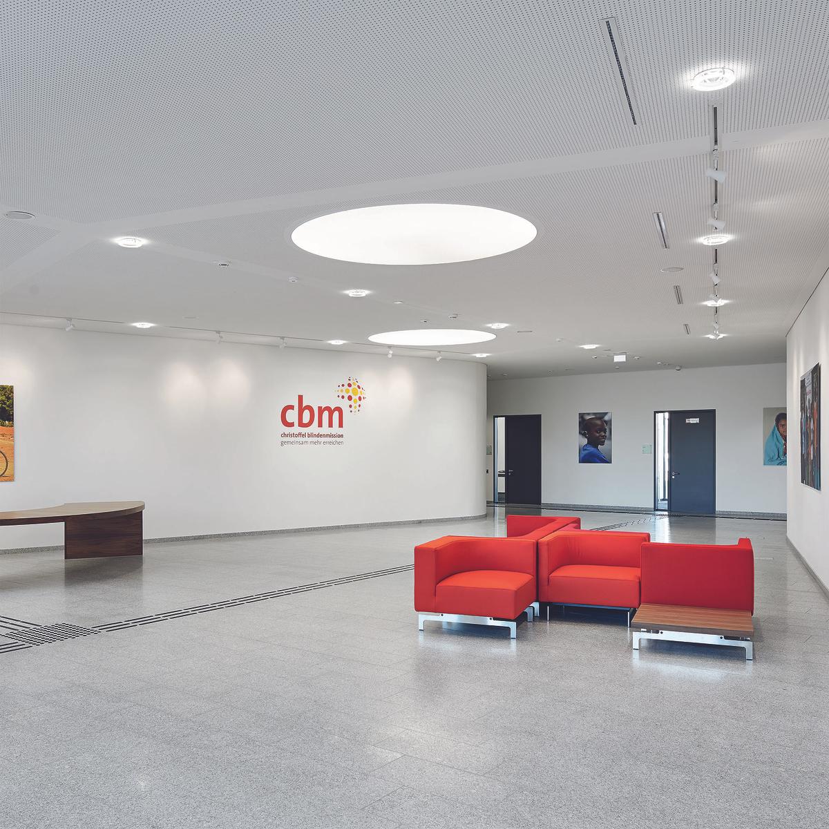 Schlüsselfertiger Neubau eines barrierefreien Verwaltungsgebäudes mit Büros, Konferenzräumen, Cafeteriabereich und Andachtsraum nach dem Planen-Bauen-Prinzip. Die Architektur der neuen Verwaltung der Christoffel-Blindenmission Deutschland e.V. (CBM) in Bensheim (südlich von Darmstadt) vereint höchste Anforderungen an die Barrierefreiheit mit einer lebendigen und offenen Arbeitsatmosphäre. Auf der einen Seite erleichtern Induktionsschleifen, taktile Bodenindikatoren und stufenlose Zugänge Mitarbeitern und Besuchern den Alltag, auf der anderen Seite verbessern offene Arbeitsplätze, Gemeinschaftsbereiche und großzügige Verglasungen Kommunikation und Transparenz. Das Kompetenz-Center Sozialimmobilien Süd erstellte den schlüsselfertigen Neubau für das barrierefreie Gebäude inkl. sämtlicher Planungsleistungen in 15 Monaten.
