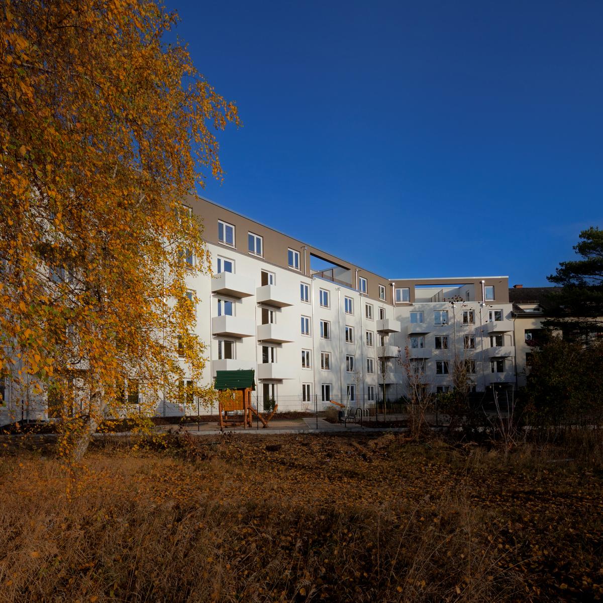 Schlüsselfertiger Neubau mit 61 Mietwohnungen mit jeweils ein bis vier Zimmern. Erst dank eines Sondervorschlags im Spezialtiefbau konnte das Projekt realisiert werden. Hier kamen eine Unterwasserbetonsohle und eine Spundwandumschließung zum Einsatz.