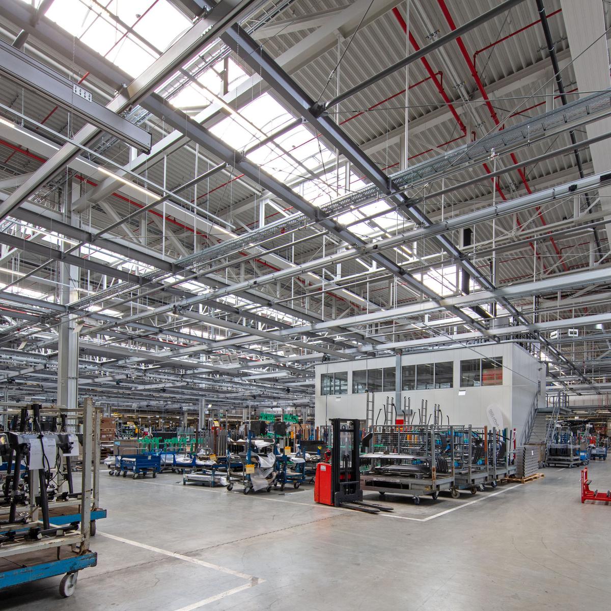 Abriss der alten Produktionsstätte und Neubau einer 100 m x 150 m x 13,5 m großen Produktionshalle über der vorhandenen Produktionsfläche von 14.000 m². Die rekordverdächtige Bauzeit von nur 22 Wochen konnte durch die ausführliche Planung erzielt werden. Besonders herausfordernd hierbei war die umfängliche Technische Gebäudeausrüstung und die minutiös geplante Ausführung der Gewerke während der laufenden Produktion.