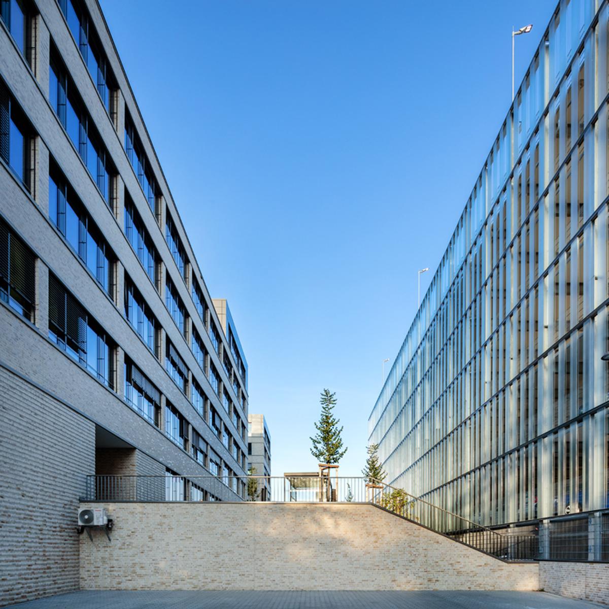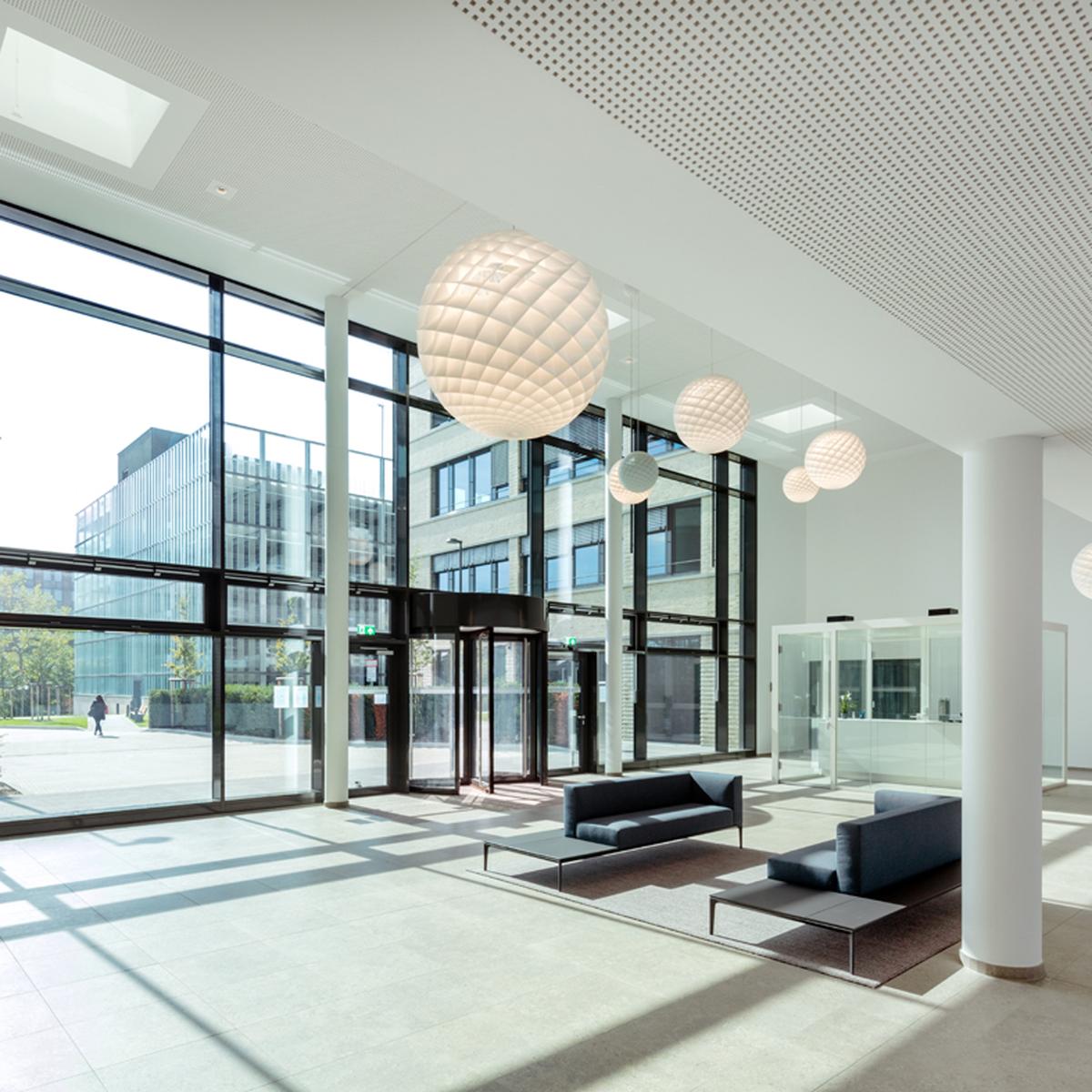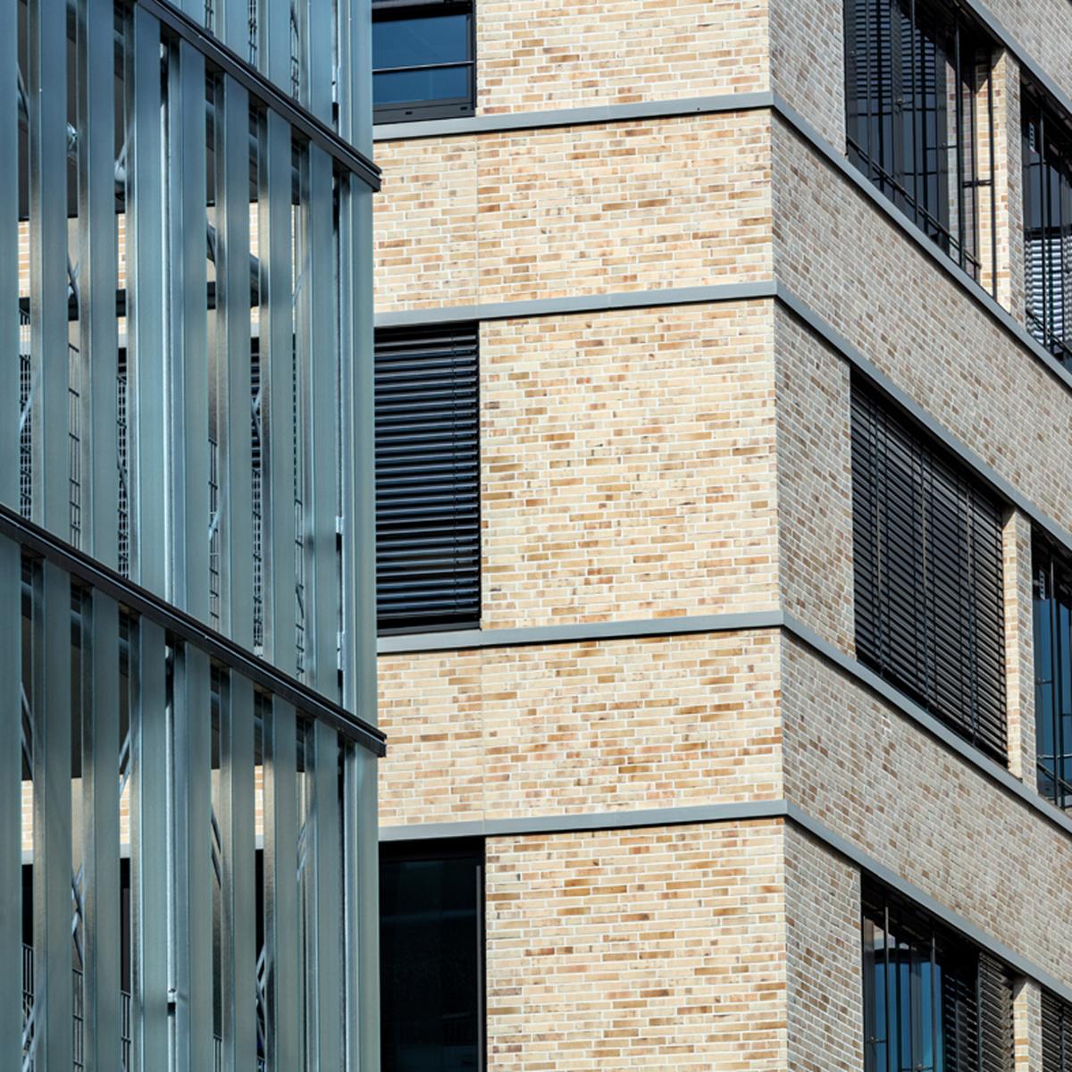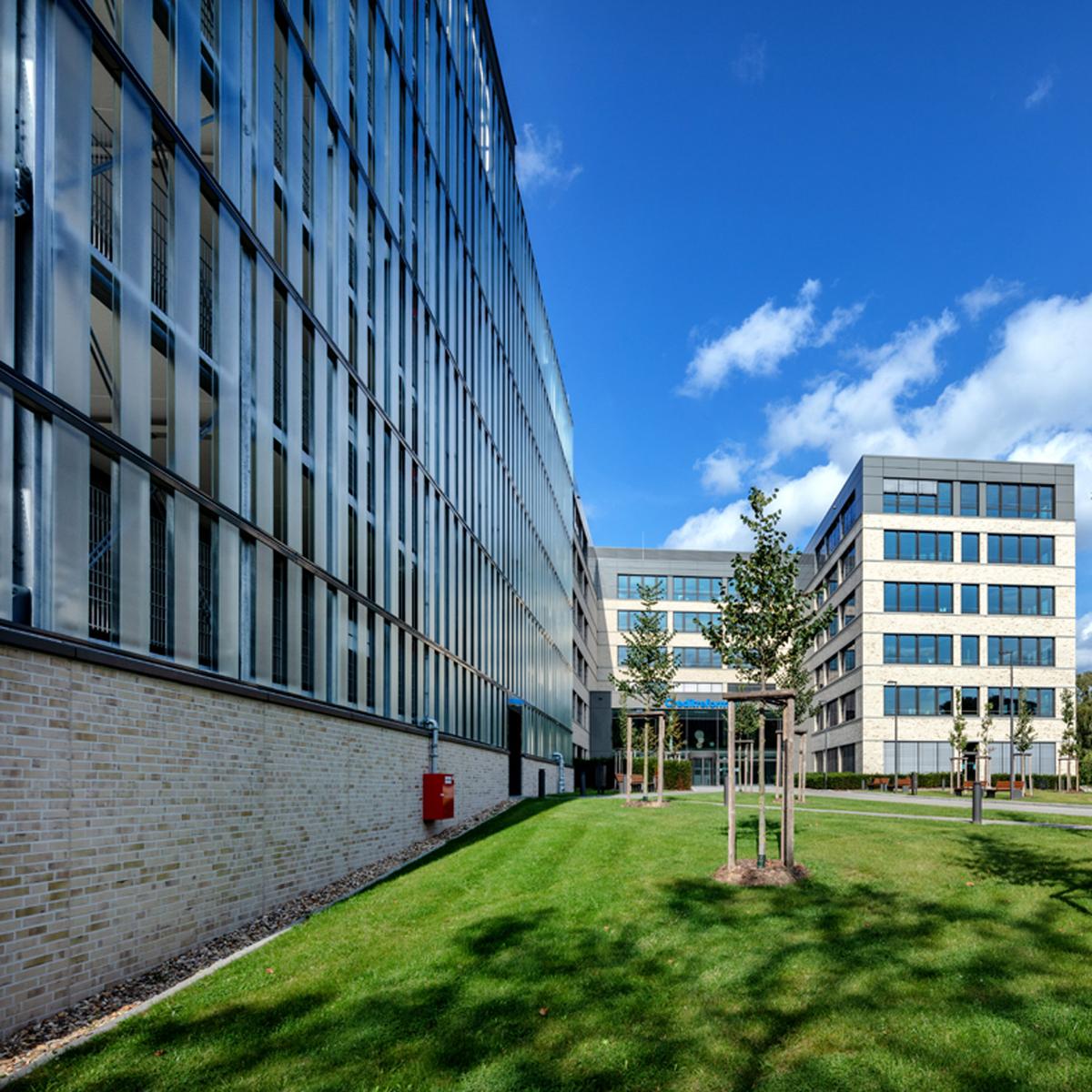 Schlüsselfertiger Neubau eines sechsgeschossigen Bürogebäudes mit großem BHKW und Absorptionskältemaschine. Auf einem Grundstück von 13.700 qm plante und realisierte Köster u.a. mittels des Einsatzes von Ortbeton, Fertigteil-Brüstungselementen und Fertigteil-Treppen dieses Bauvorhaben unter Einhaltung des Budgetrahmens. Die Immobilie bietet Arbeitsplätze für bis zu 650 Personen. Im Erdgeschoss sind neben dem Foyer ein Meeting-Point und ein zusätzlicher Konferenzbereich angesiedelt. Das 5. Obergeschoss wurde als Staffelgeschoss ausgerichtet. Optisches Highlight dieses Gebäudes ist die anspruchsvolle Klinkerriemchen-WDVS-Fassade. Die lange und vertrauliche Zusammenarbeit zwischen dem Stammkunden und Köster gewährleistete einen reibungslosen Bauablauf.