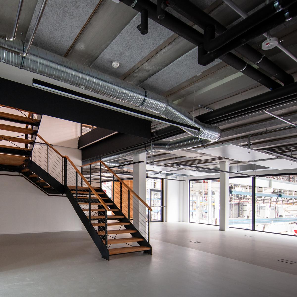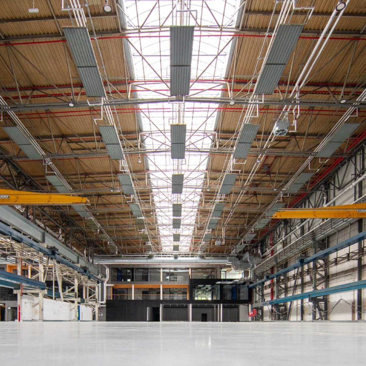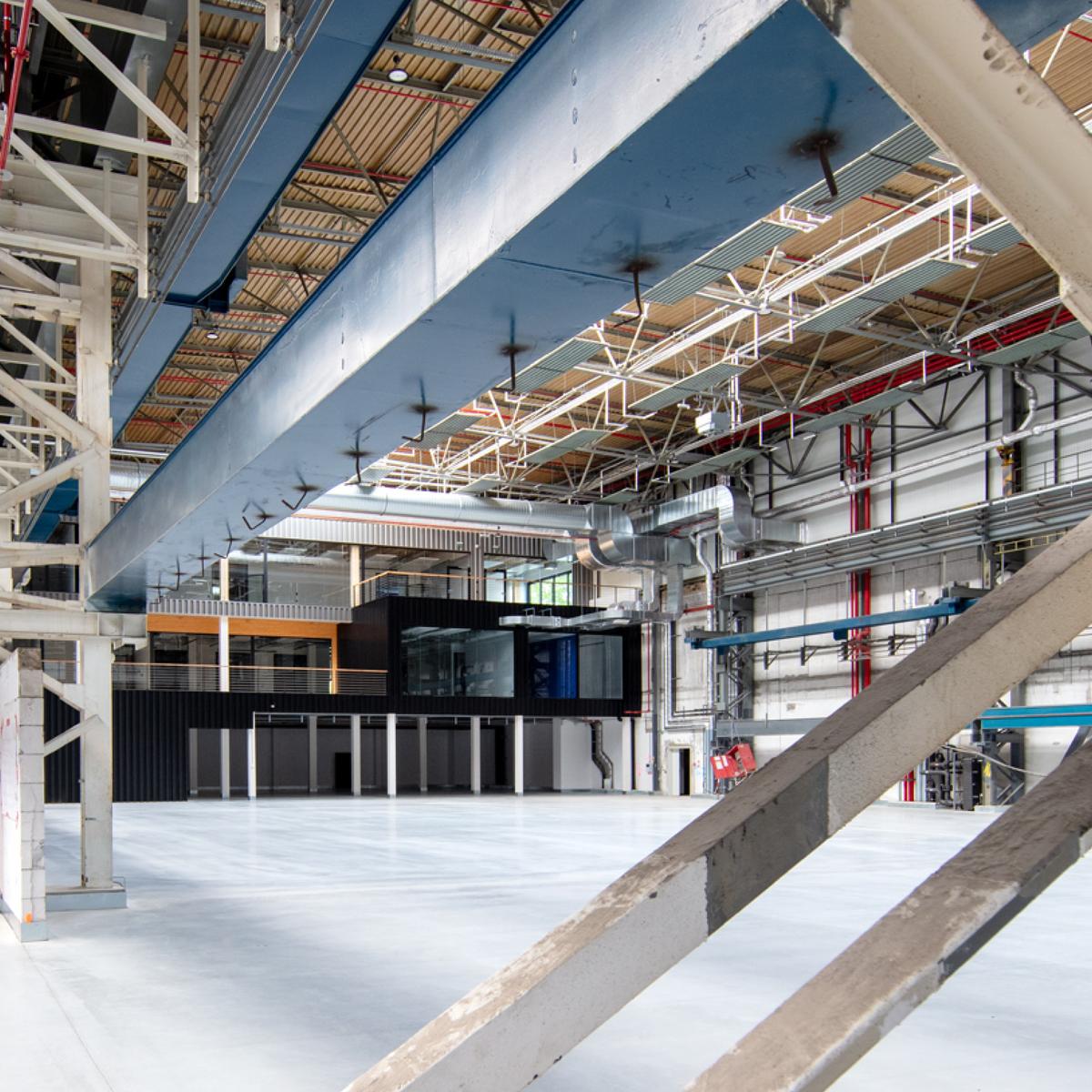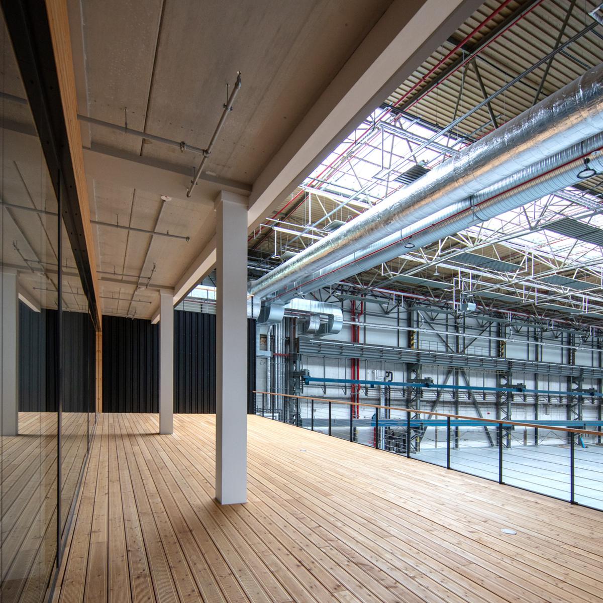 Die in der Vergangenheit für die Produktion von Schleifmaschinen genutzte Bestandshalle mit drei Hallenschiffen erhielt unter anderem zwei neue Bürogeschossebenen, teilweise in Holzhybridbauweise. Kösters Leistungsumfang des erweiterten Rohbaus wurde später um das Los Innenausbau ergänzt, wobei eine enge Verzahnung mittels Last-Planner mit den bauseitigen Gewerken für sämtliche technische Anlagen die termingerechte Übergabe für den mieterseitigen Ausbau sicherstellte.
