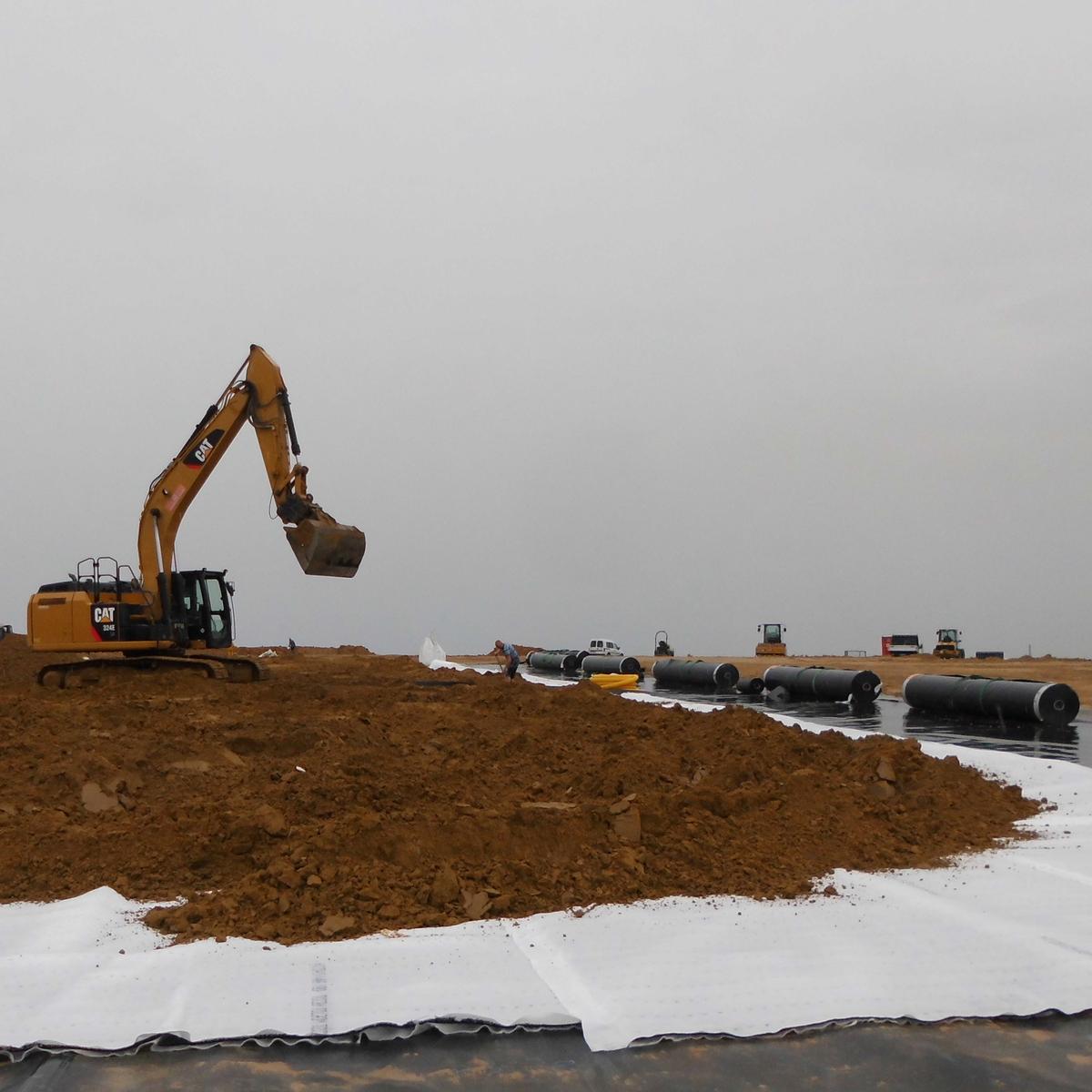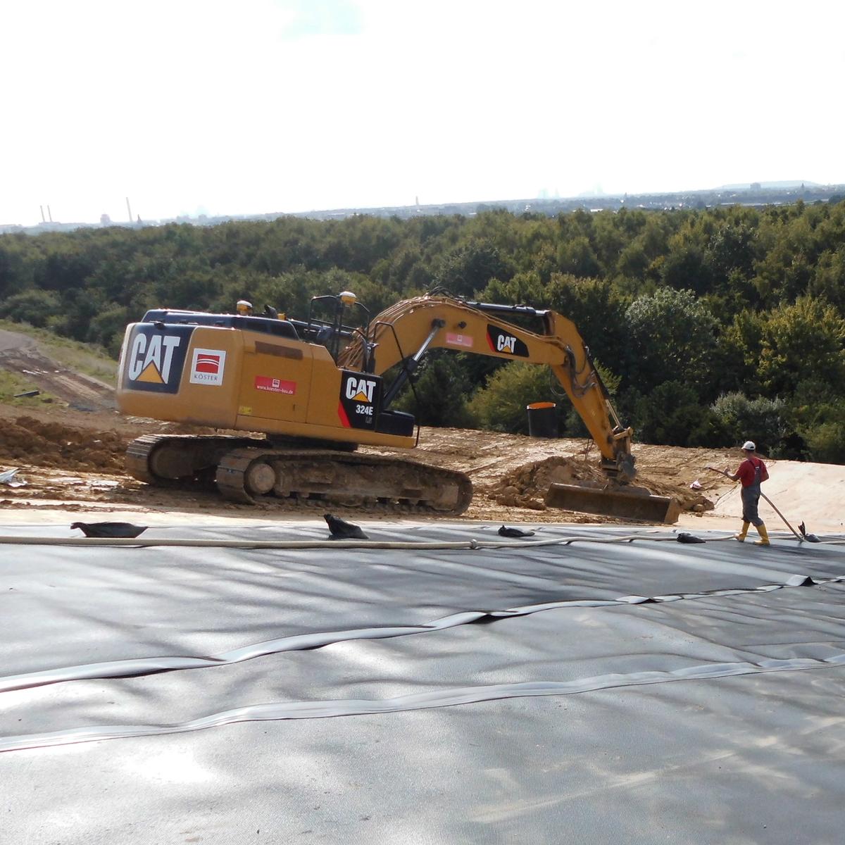 Auf der Deponie Dormagen-Rheinfeld realisierte Köster die Oberflächenabdichtung durch den Einbau von 38.500 qm Kunststoffdichtungsbahnen und Dränmatten und installierte ein Regenwasser-Ableitungssystem. Unabhängige Ingenieurbüros überwachen im Auftrag der Bezirksregierung Düsseldorf die sensiblen Abdichtungsarbeiten. Ein Sondervorschlag von Köster senkte die Baukosten und verringerte die Bauzeit.