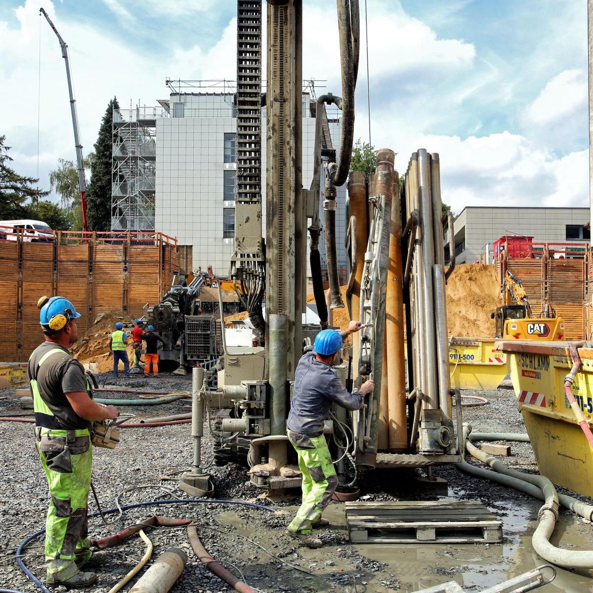 Köster errichtete für den Deichmann Campus in Essen eine schlüsselfertige Baugrube mit einer Tiefe von bis zu zwölf Metern inkl. Bohrungen für die Geothermie. Zudem optimierte Köster die Pläne für die Geothermie und konnte dessen Effizienz deutlich steigern. Trotz enger Zuwege und gleichzeitig stattfindender Gewerke übergab Köster die fertige Baugrube termingerecht.