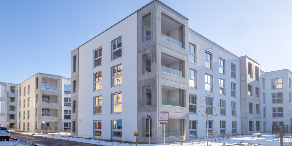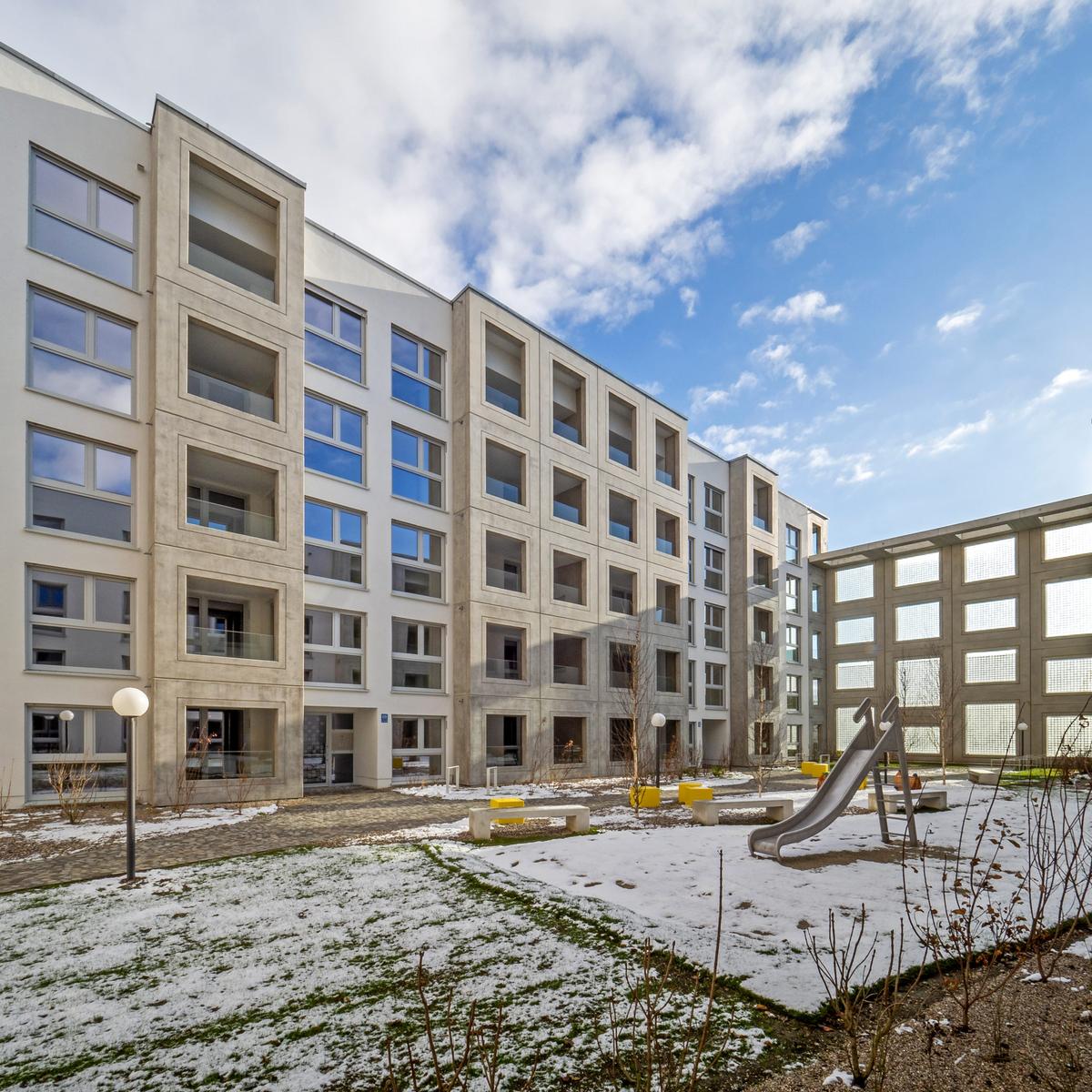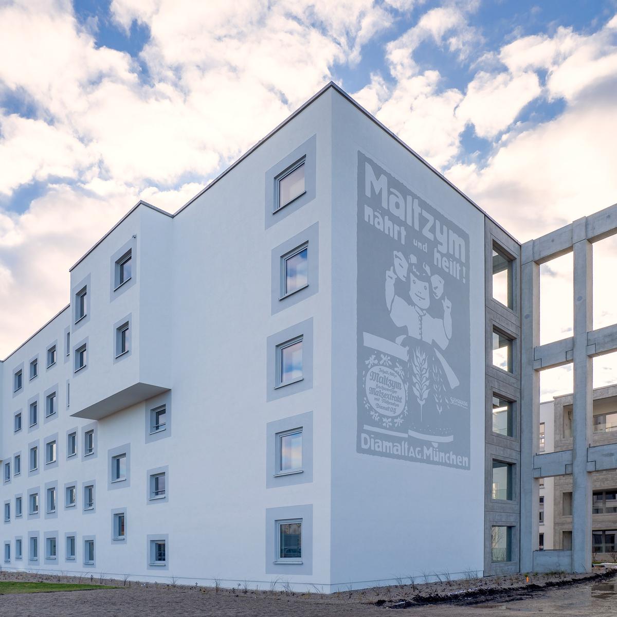 Köster realisierte die schlüsselfertige Wohnanlage mit 98 Mietwohnungen in vier Bauteilen inkl. des Rohbaus für eine Kita. Der Neubau ist Teil des neuen Wohnquartiers Diamaltpark in München, der erschwinglichen Wohnraum bieten soll. Der Entwurf stammt von Lehmann, Tabillion & Castorph Architektur Stadtplanung Gesellschaft. Köster übernahm die gesamte Planungskoordination und begleitete die TGA-Planung. Für Speziallösungen wurde der Bereich Bautechnik + Innovation eingebunden. Um die erhöhten städtebaulichen Vorgaben bzgl. Schallschutz zu erfüllen, wurden Doppelkastenfenster und Lärmschutzwände verbaut. Dank schneller Entscheidungswege konnte das Projekt auch mit Sonderwünschen in der vereinbarten Bauzeit fertiggestellt werden.