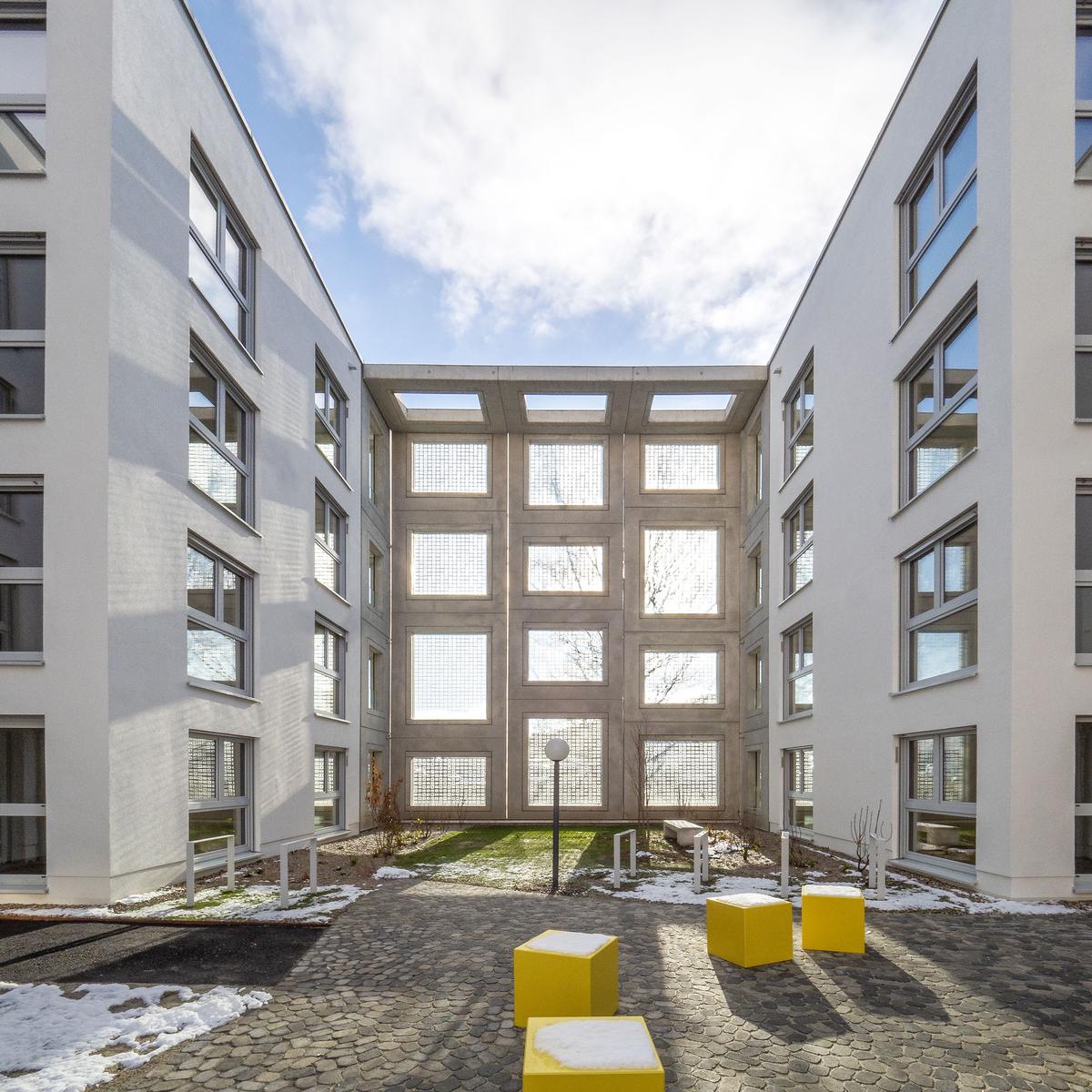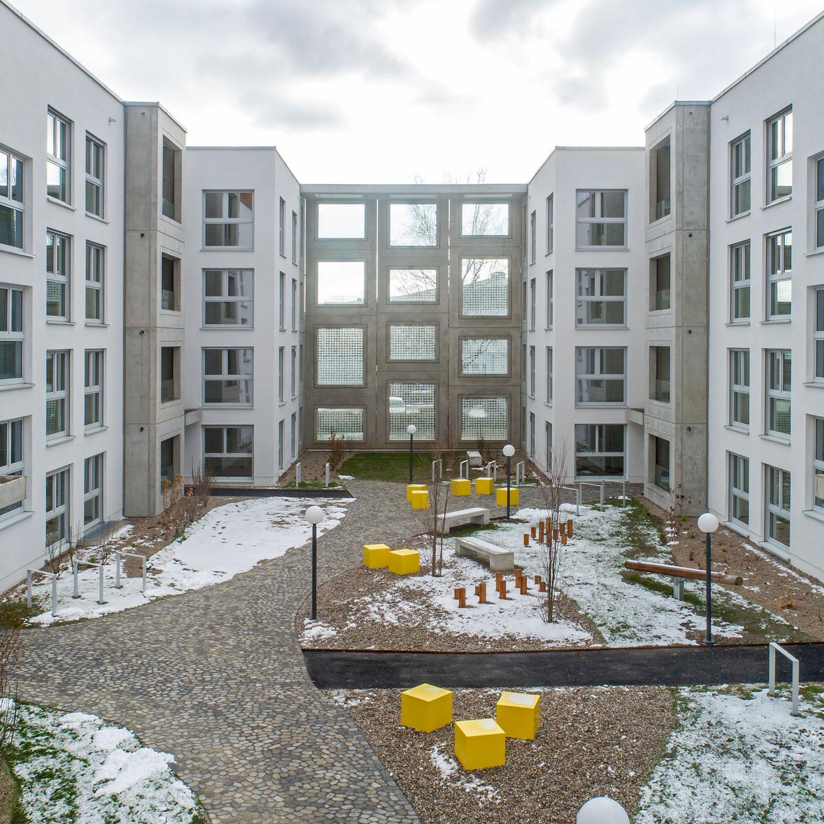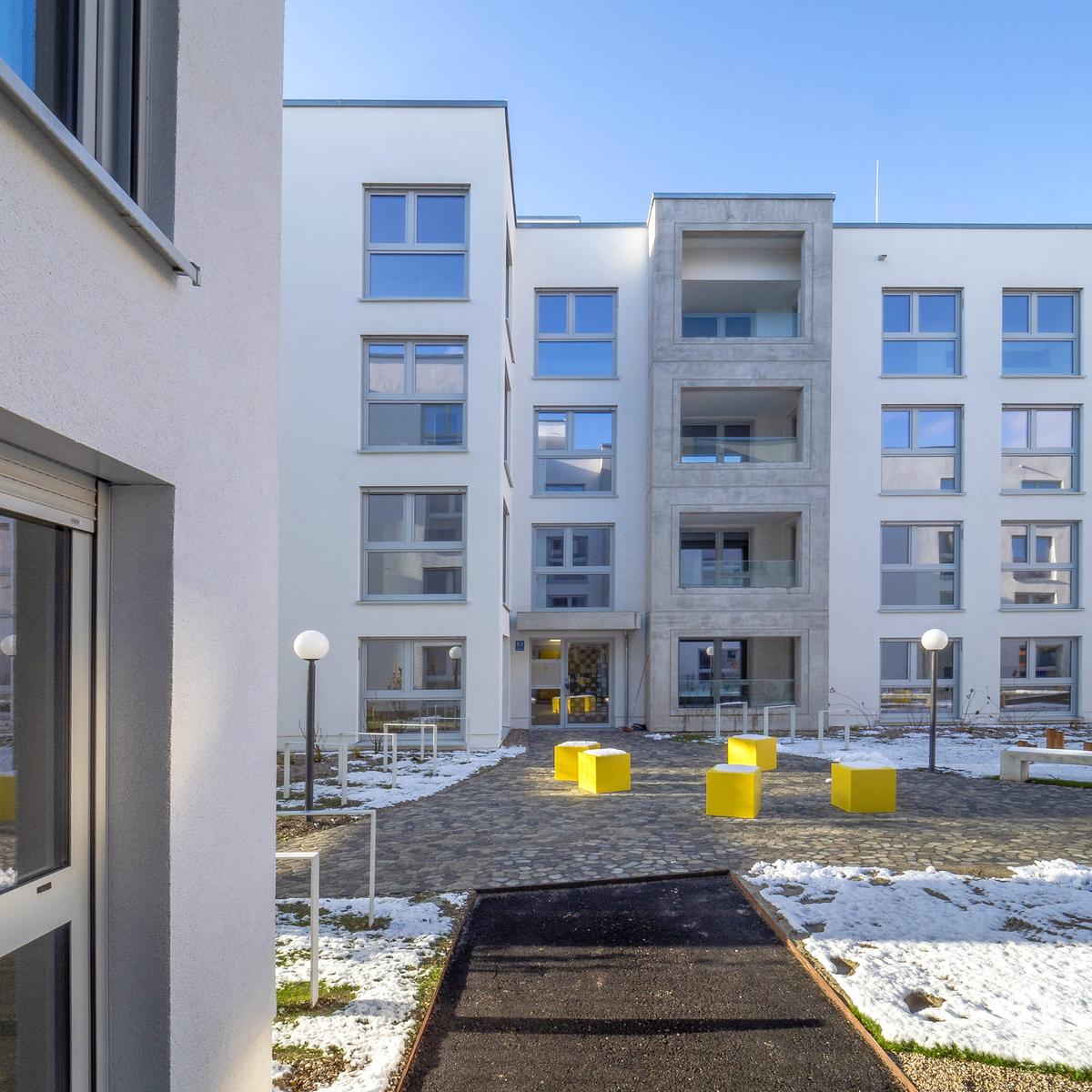 Köster realisierte die schlüsselfertige Wohnanlage mit 98 Mietwohnungen in vier Bauteilen inkl. des Rohbaus für eine Kita. Der Neubau ist Teil des neuen Wohnquartiers Diamaltpark in München, der erschwinglichen Wohnraum bieten soll. Der Entwurf stammt von Lehmann, Tabillion & Castorph Architektur Stadtplanung Gesellschaft. Köster übernahm die gesamte Planungskoordination und begleitete die TGA-Planung. Für Speziallösungen wurde der Bereich Bautechnik + Innovation eingebunden. Um die erhöhten städtebaulichen Vorgaben bzgl. Schallschutz zu erfüllen, wurden Doppelkastenfenster und Lärmschutzwände verbaut. Dank schneller Entscheidungswege konnte das Projekt auch mit Sonderwünschen in der vereinbarten Bauzeit fertiggestellt werden.