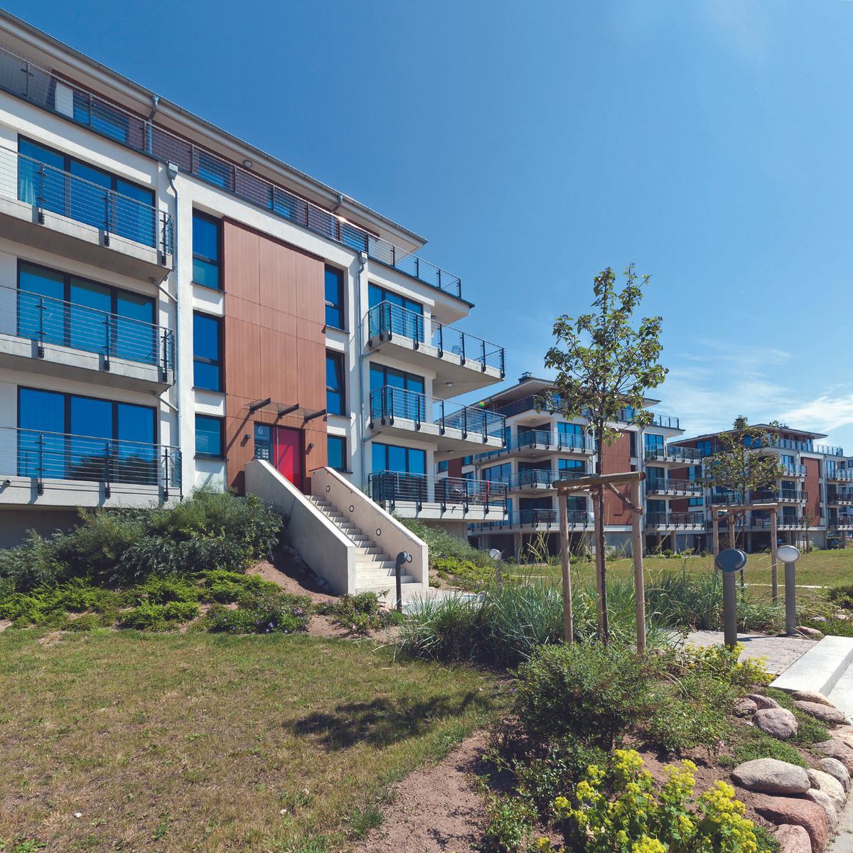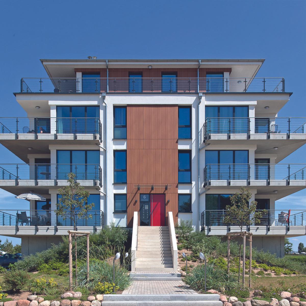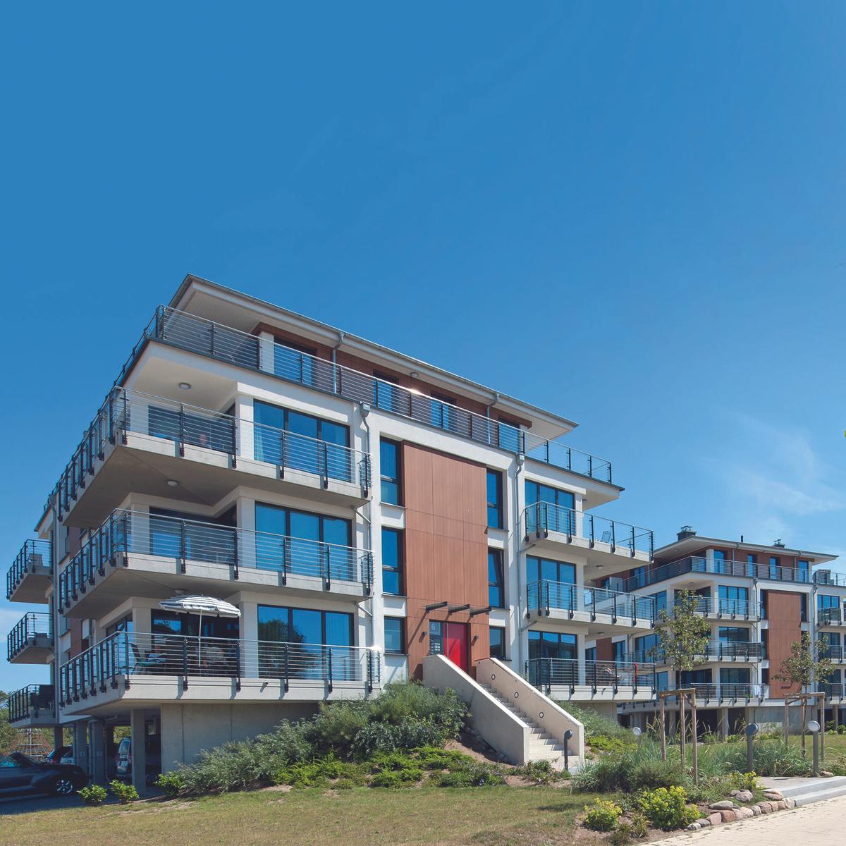 Rohbau von drei Ferienwohnhäusern mit insgesamt 42 Wohnungen inkl. Tiefen- und Bohrpfahlgründung, Errichtung der Dachstühle sowie Ausführung der Trockenbauarbeiten. Dank vielfältiger Erfahrungen bei der Realisierung von Bauwerken in Küstennähe konnten die Kosten mit einem Sondervorschlag zur Grundwasserabsenkung reduziert werden.