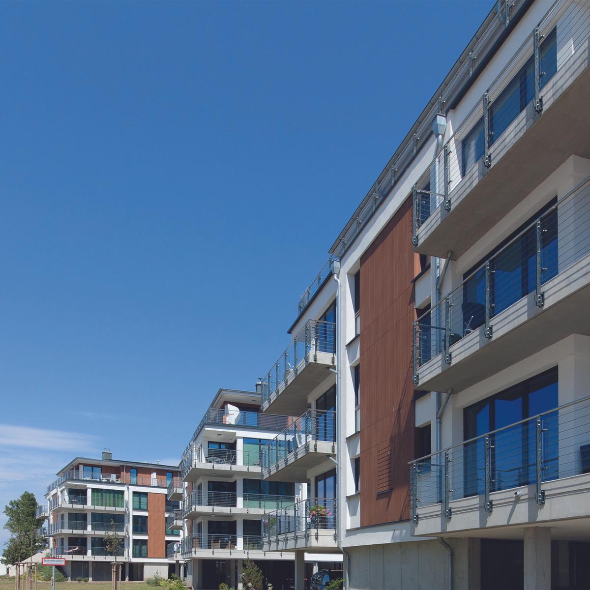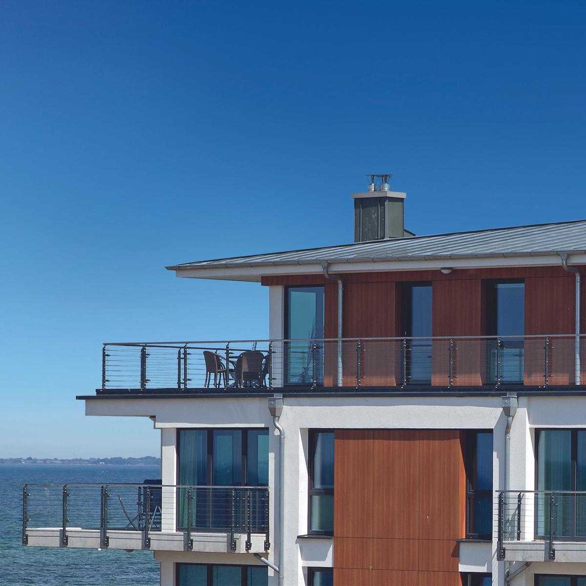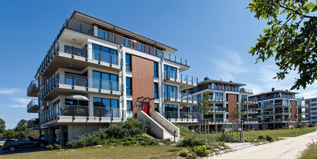 Rohbau von drei Ferienwohnhäusern mit insgesamt 42 Wohnungen inkl. Tiefen- und Bohrpfahlgründung, Errichtung der Dachstühle sowie Ausführung der Trockenbauarbeiten. Dank vielfältiger Erfahrungen bei der Realisierung von Bauwerken in Küstennähe konnten die Kosten mit einem Sondervorschlag zur Grundwasserabsenkung reduziert werden.