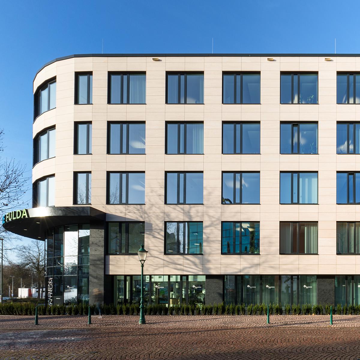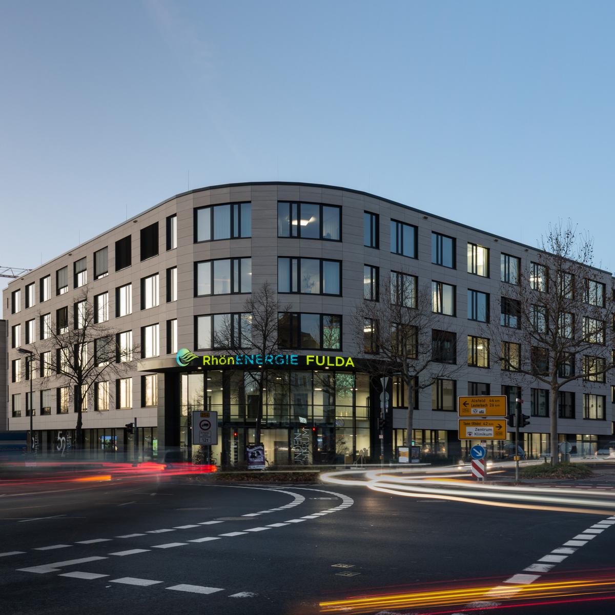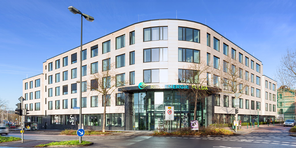 Schlüsselfertiger Neubau eines Bürogebäudes inkl. Tiefbauarbeiten und Ausbau von Stellplätzen im Auftrag der Dr. Helmut Greve Bau- und Boden-AG. Der Neubau dient der Zusammenlegung mehrerer Bereiche des Mieters Rhön Energie an einem Standort. Unter anderem die Verwendung von Ortbeton und Fertigteiltreppen konnten die Kosten für das Bauvorhaben senken. Die stets enge Zusammenarbeit zwischen Köster und dem Kunden führte dazu, dass das Bauvorhaben termingerecht fertiggestellt wurde. Der Bauherr legte Wert auf eine gesunde und attraktive Arbeitsatmosphäre mit Akustiksegeln sowie mit Schallschutzrücken verlegtem Teppichboden und vorgespannten Flachdecken. Auch von außen erhielt die neue Zentrale mit einer vorgehängten Natursteinfassade eine hochwertige Gebäudehülle.