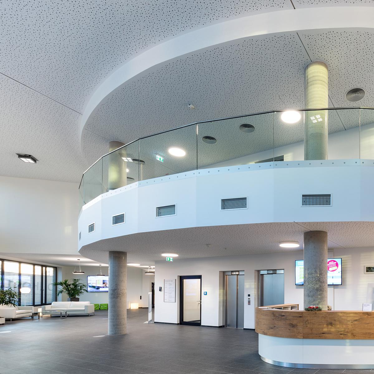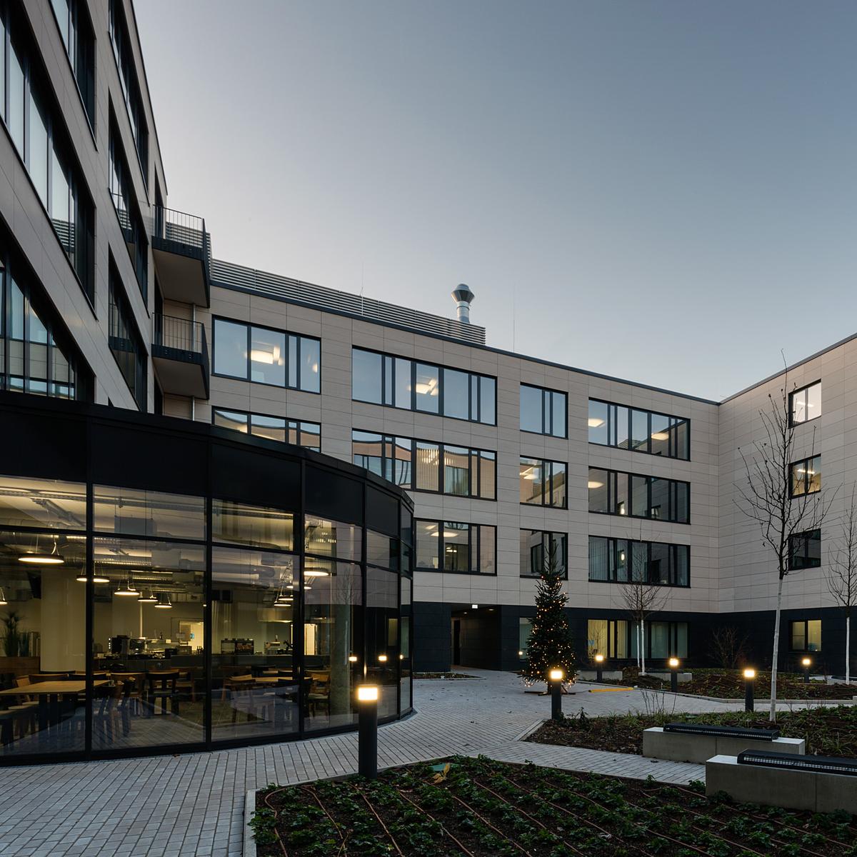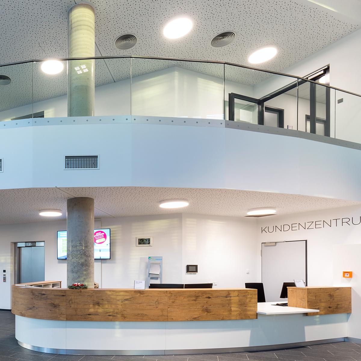 Schlüsselfertiger Neubau eines Bürogebäudes inkl. Tiefbauarbeiten und Ausbau von Stellplätzen im Auftrag der Dr. Helmut Greve Bau- und Boden-AG. Der Neubau dient der Zusammenlegung mehrerer Bereiche des Mieters Rhön Energie an einem Standort. Unter anderem die Verwendung von Ortbeton und Fertigteiltreppen konnten die Kosten für das Bauvorhaben senken. Die stets enge Zusammenarbeit zwischen Köster und dem Kunden führte dazu, dass das Bauvorhaben termingerecht fertiggestellt wurde. Der Bauherr legte Wert auf eine gesunde und attraktive Arbeitsatmosphäre mit Akustiksegeln sowie mit Schallschutzrücken verlegtem Teppichboden und vorgespannten Flachdecken. Auch von außen erhielt die neue Zentrale mit einer vorgehängten Natursteinfassade eine hochwertige Gebäudehülle.
