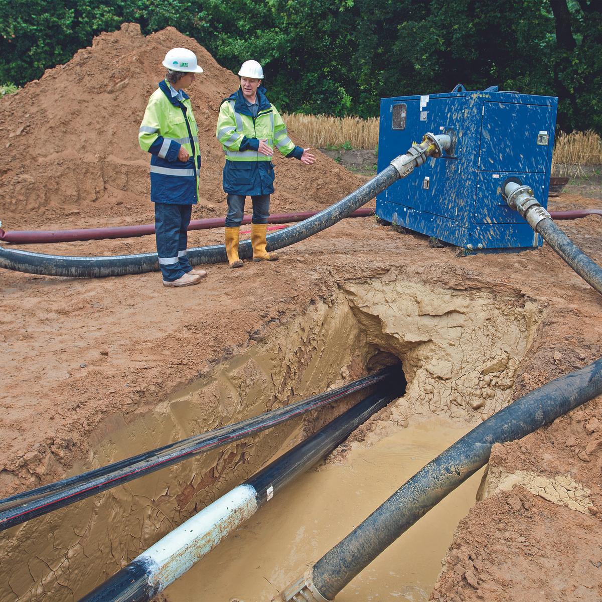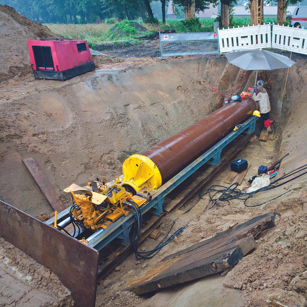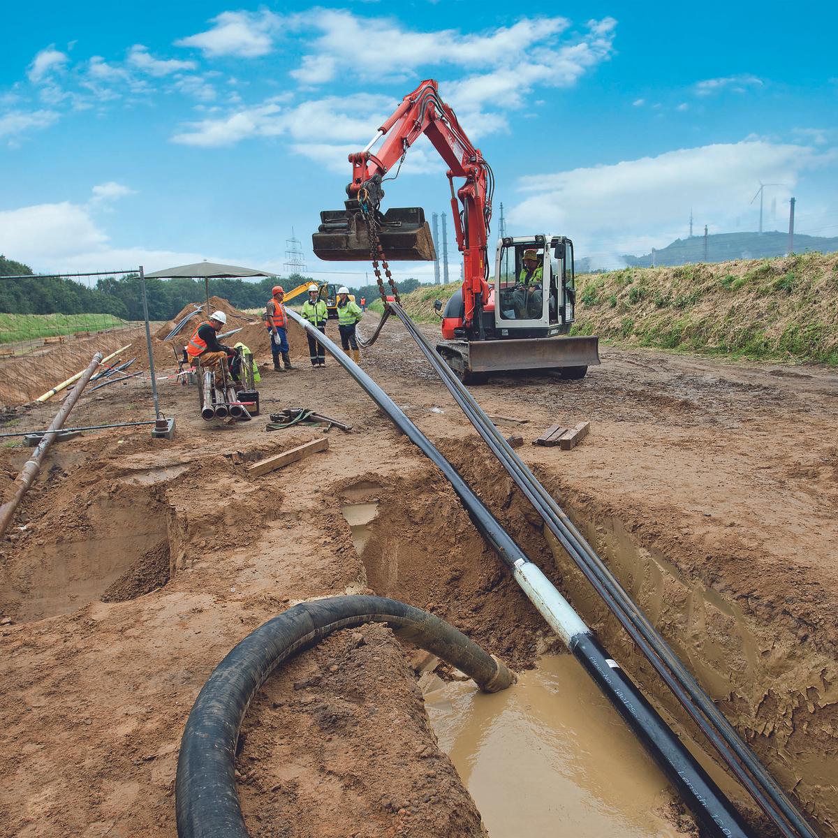Neubau einer 10 km langen Doppelleitung. Damit flüssige Kohlenwasserstoffe sicher von der Raffinerie Scholven in den zehn Kilometer entfernten Chemiepark gelangen, entstand eine neue Fernleitung. In zehn Monaten wurde die aus zwei Rohrfernleitungssträngen bestehende Doppelleitung mit einem Innendurchmesser von 150 mm verlegt – ein Projekt mit hohen Sicherheitsanforderungen. Da die Trasse größtenteils parallel zu Hochspannungsfreileitungen, im Schutzstreifen von vorhandenen Leitungsanlagen und in landwirtschaftlich genutzten Gebieten entstand, wurden ganz unterschiedliche Verlegeverfahren eingesetzt – darunter auch das grabenlose HDD-Spülbohrverfahren.