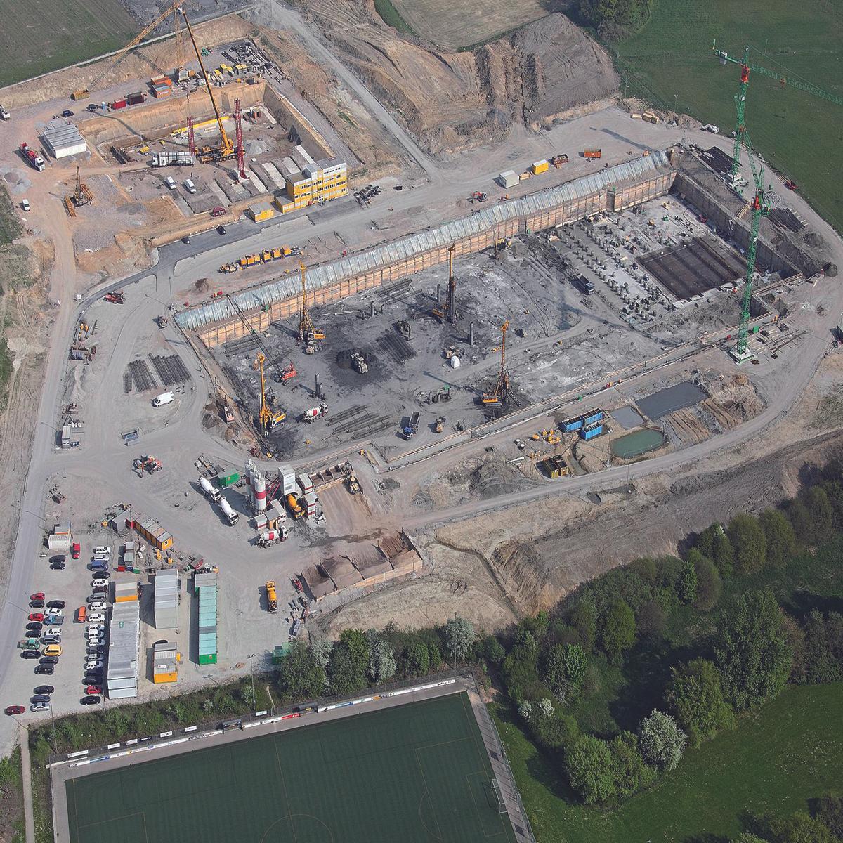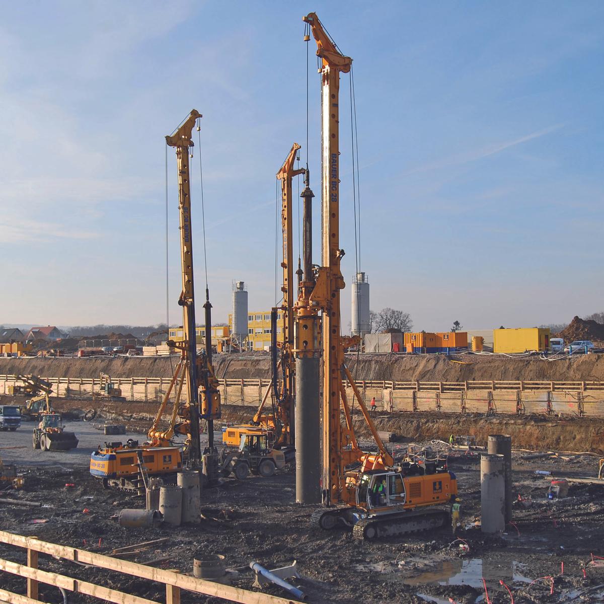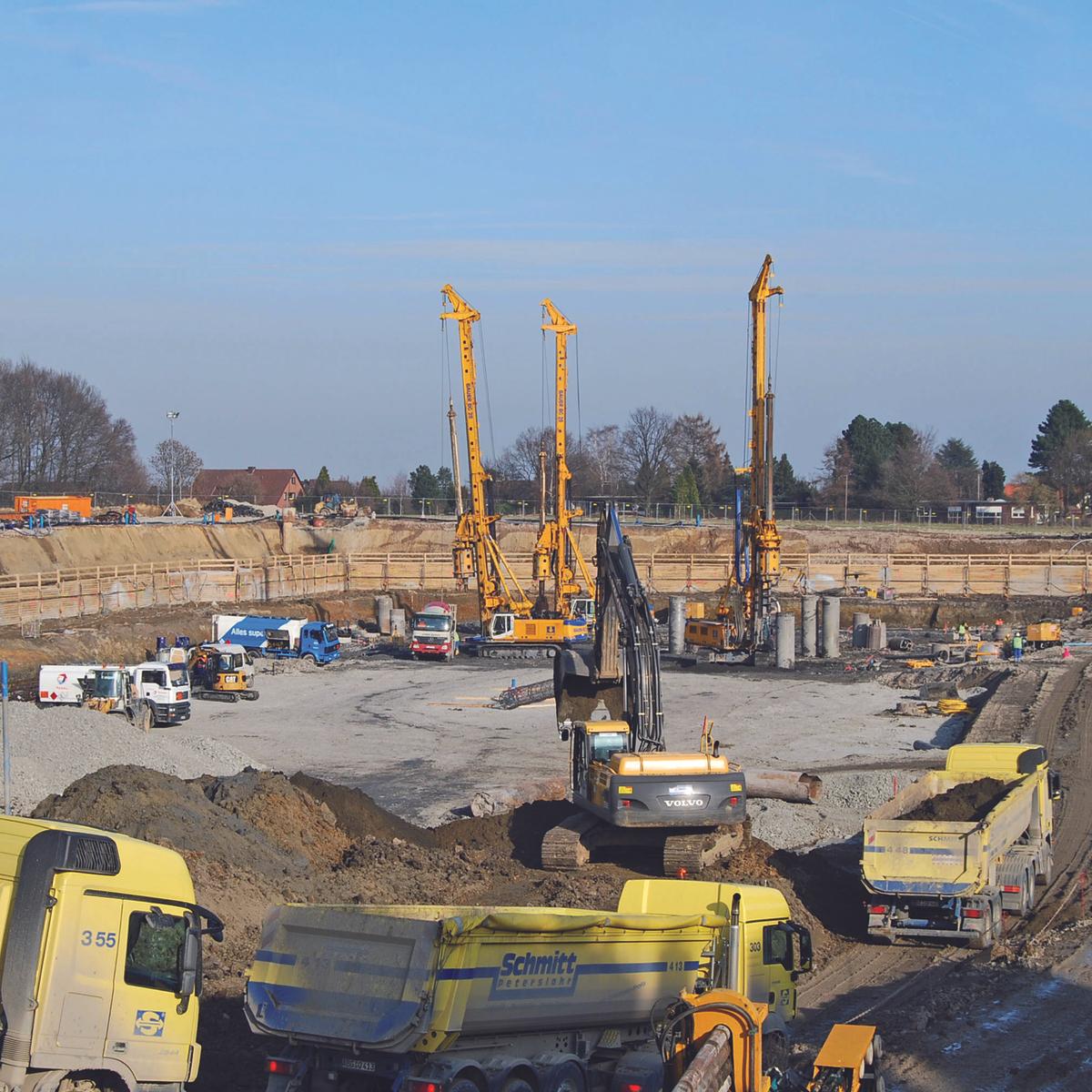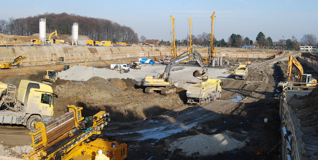 Nordrhein-Westfalen investierte rund 1 Mrd. Euro in Neubau sowie Erweiterung der Fachhochschule und Universität Bielefeld. Köster erstellte für das Projekt eine der größten Baugruben Norddeutschlands: 200 m Länge, 90 m Breite, bis zu 10 m Tiefe. Das Bauteam hatte sich mit heiklen Rahmenbedingungen auseinanderzusetzen. So war die Bauzeit äußerst knapp bemessen, widrige Witterungsverhältnisse erschwerten die Tätigkeiten zusätzlich. Größtes Problem war jedoch der schwierige Baugrund aus nicht tragfähigem, mit Grundwasser durchsetztem Quellton. Die Lösung: Eine Absenkung des Grundwasserspiegels über Tiefbrunnen. Um die straffen zeitlichen Vorgaben einzuhalten, waren täglich bis zu 50 Lkw im Einsatz. Die Fahrzeuge transportierten rund 200.000 cbm Bodenaushub ab. Die fertige Baugrube wurde schließlich mit einem rückverankerten Berliner Verbau gesichert. Anschließend brachten die Spezialisten von Köster 700 Gründungspfähle ein: Sie sichern heute den Stand des Fachhochschul-Gebäudes und versorgen die Einrichtung zusätzlich mit Erdwärme.