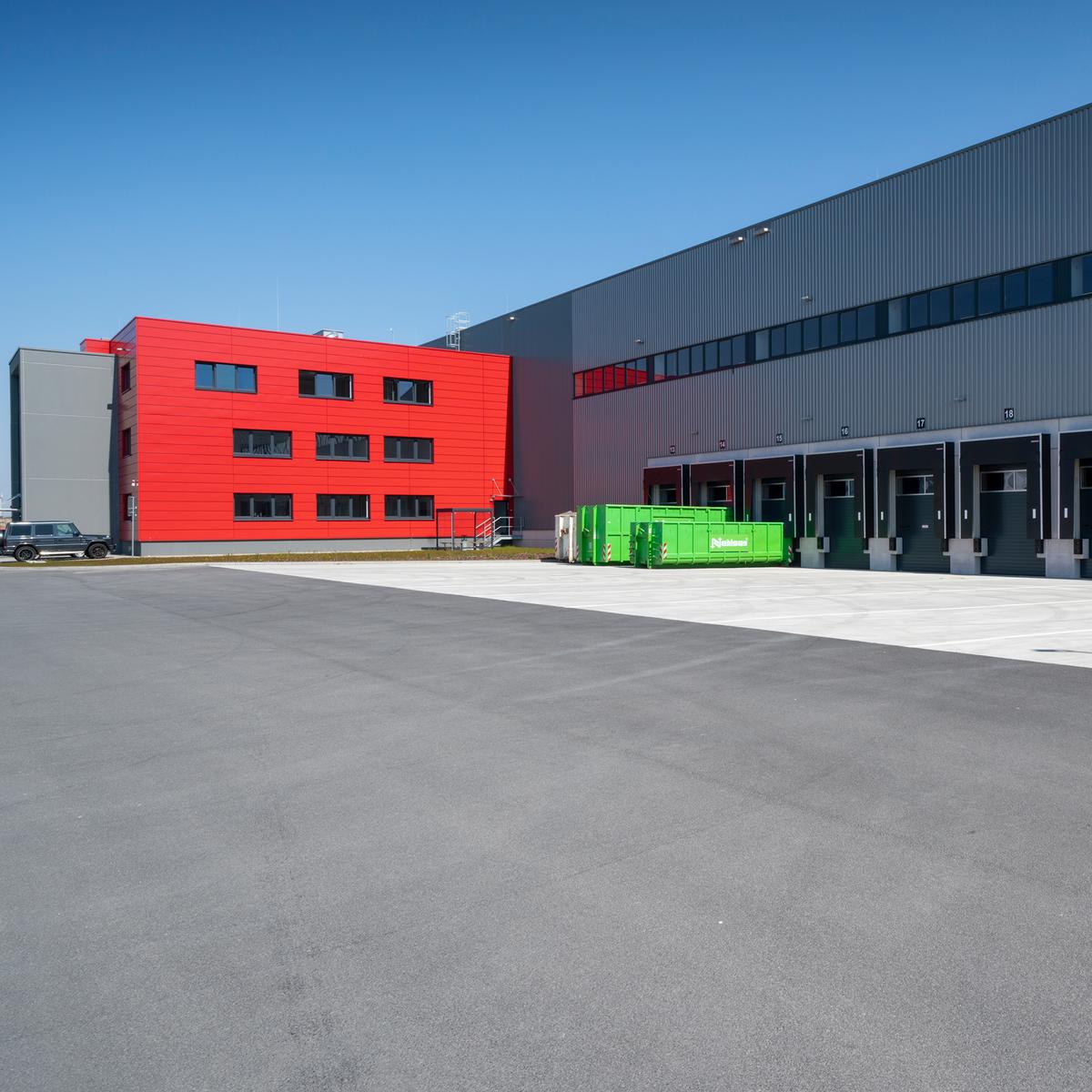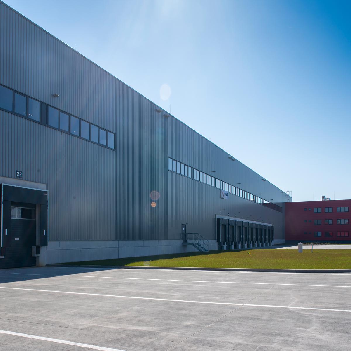 Schlüsselfertiger Neubau einer 33.000 m² großen Logistikhalle in 3 Brandabschnitten mit 6.000 m² Mezzaninfläche sowie 1.200 m² Bürofläche. Das Baugrundstück musste vor Hochbaustart mit ca. 120.000 m³ Füllmaterial aufgefüllt werden. Zudem waren Bodenverbesserungsmaßnahmen notwendig unter Berücksichtigung der Baugrundverhältnisse.