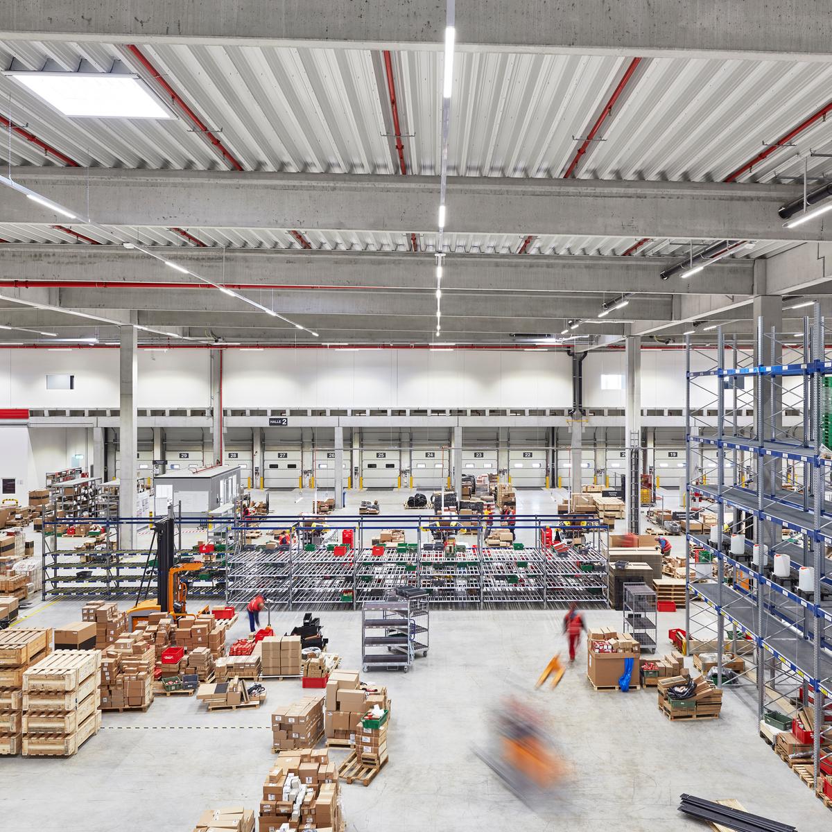 Schlüsselfertigen Neubau einer 43.000 qm großen Logistikhalle mit auf einer Zwischenebene integrierten Büro- und Sozialflächen inkl. Außenanlagen und Ausführungsplanung. Die bereits während der Angebotsphase intensive Zusammenarbeit mit dem Kunden zog sich auch über die Bauphase hinweg. So konnte Köster ein hochwertiges Logistikzentrum nach nur 30 Wochen Bauzeit inkl. Planung und Tiefbauleistungen übergeben.