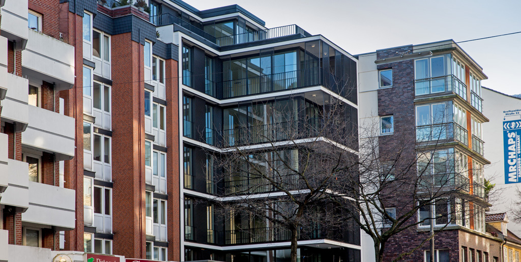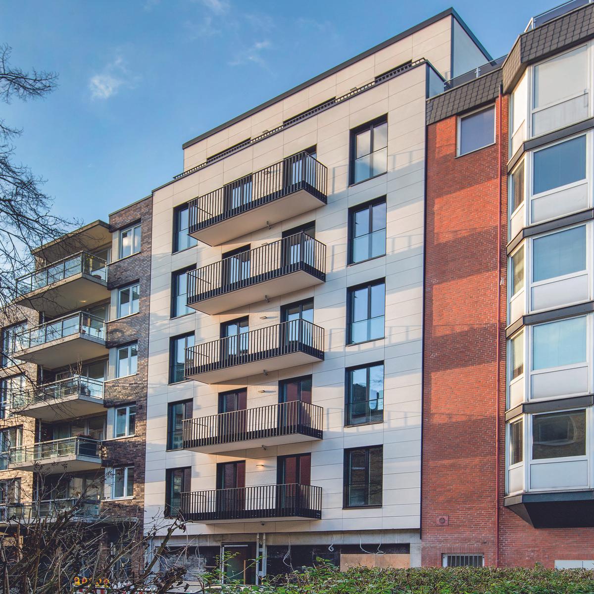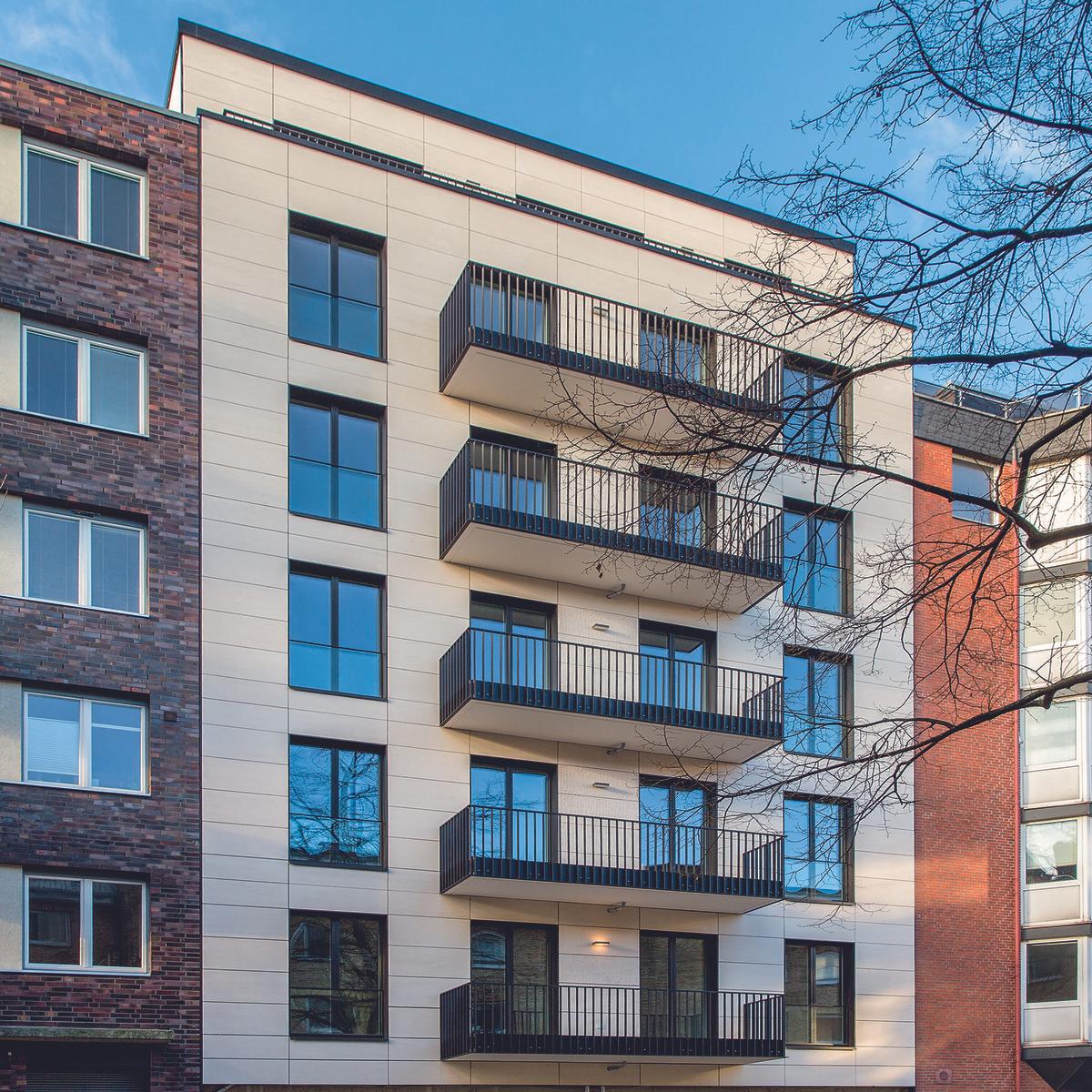 Schlüsselfertiger Neubau von 11 Mietwohnungen und einer Gewerbeeinheit inkl. Tiefgarage als Lückenbebauung sowie Abbruch der vorherigen Immobilie. Mit einem detaillierten Logistikkonzept und just-in-time Lieferungen stellten die beengten Platzverhältnisse in direkter Innenstadtlage keine Herausforderung dar.
