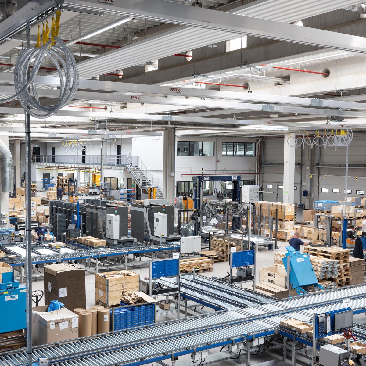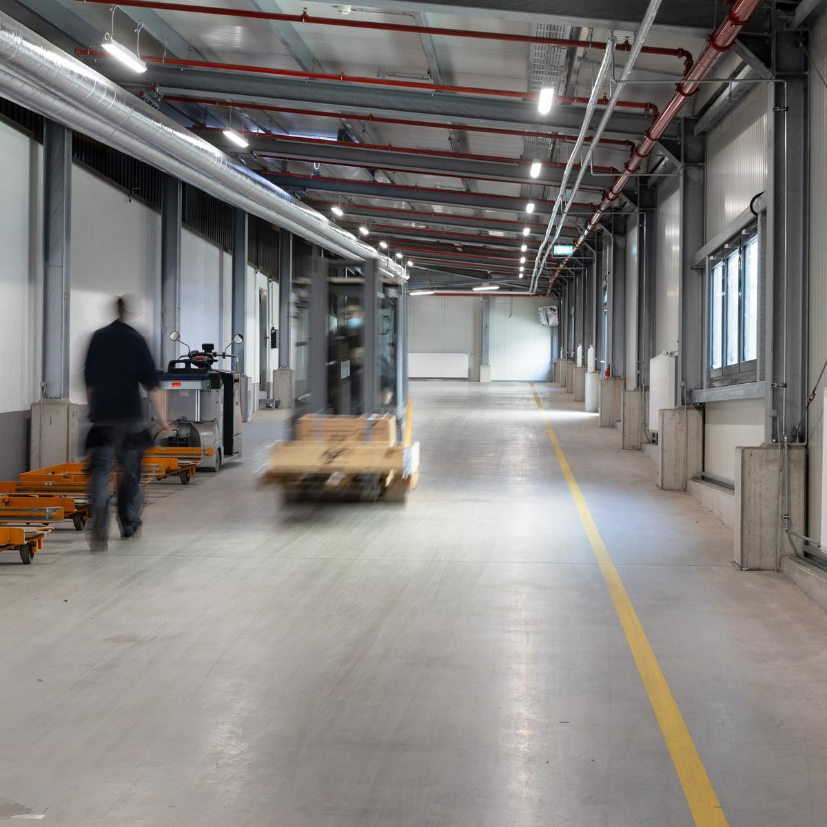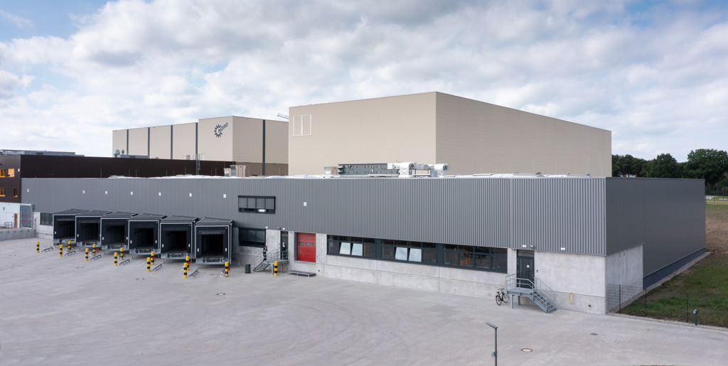 Für das Wachstum der Getriebebau Nord GmbH & Co. KG schuf Köster zusätzliche Lagerkapazitäten mit insgesamt 7.700 qm Bruttogeschossfläche. Der zweiteilige Logistikkomplex umfasst ein 4.500 qm großes Automatisches Kleinteillager (AKL) und eine Logistikhalle, auf deren 3.200 qm Brutto-Grundfläche die logistische Abwicklung von Verpackung, Versand und Verwaltung erfolgt. Reduzieren konnte Köster die Gesamtkosten des Projekts unter anderem durch den Einsatz von Fertigteilen: Im Gegensatz zur in Massivbauweise errichteten Logistikhalle wurde das AKL mit 25 m hohen Stahlbetonfertigteilstützen konstruiert.