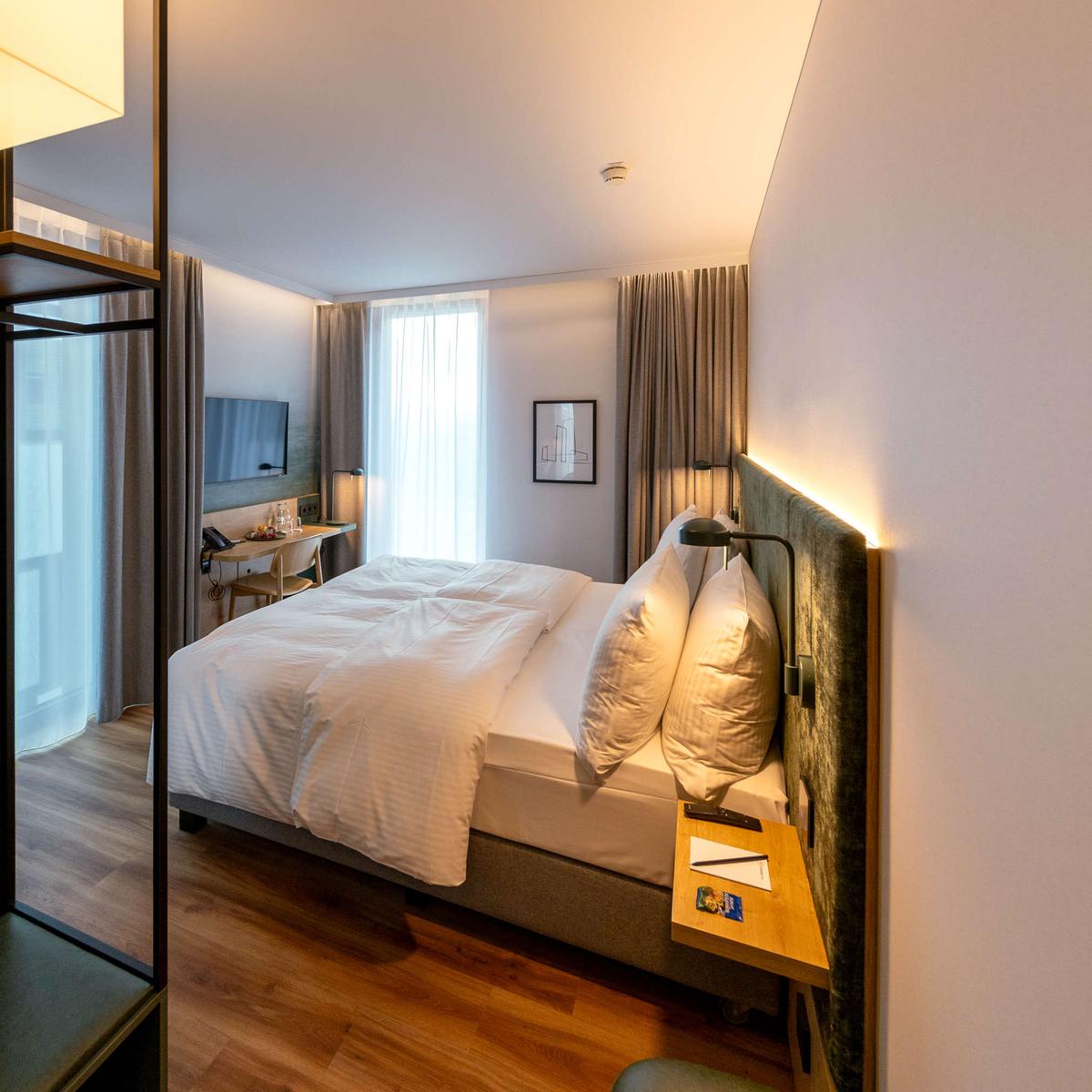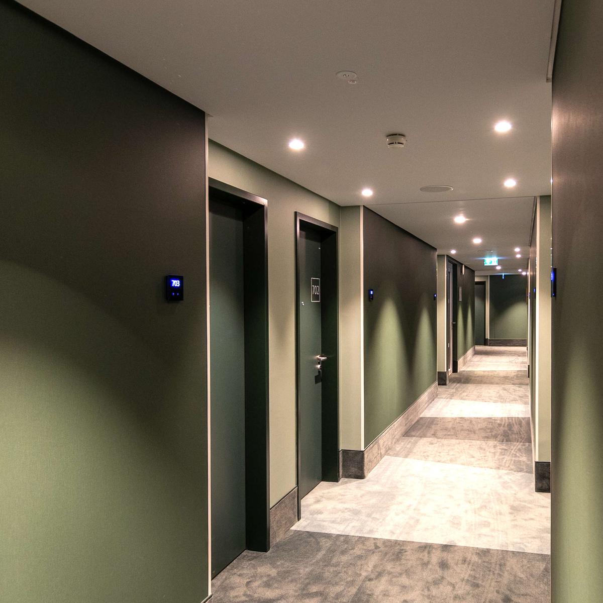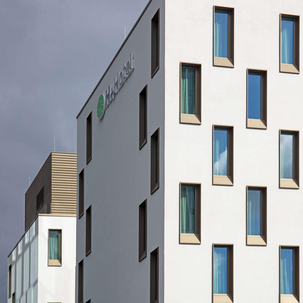 Auf einer Fläche von 2.486 m² realisierte Köster das schlüsselfertige Hotelgebäude über sieben Etagen mit 215 Zimmern. Im Erdgeschoss verfügt das Hotel über einen großzügigen Restaurant-, Foyer u. Barbereich mit Vollküche und Büroräumen. Der Fitnessraum für Hotelgäste befindet sich im Untergeschoss. Optisch lässt sich die Einfügung des orthogonal ausgerichteten Gebäudes in das streng geordnete, rechtwinklige Gesamtsystem hervorheben.