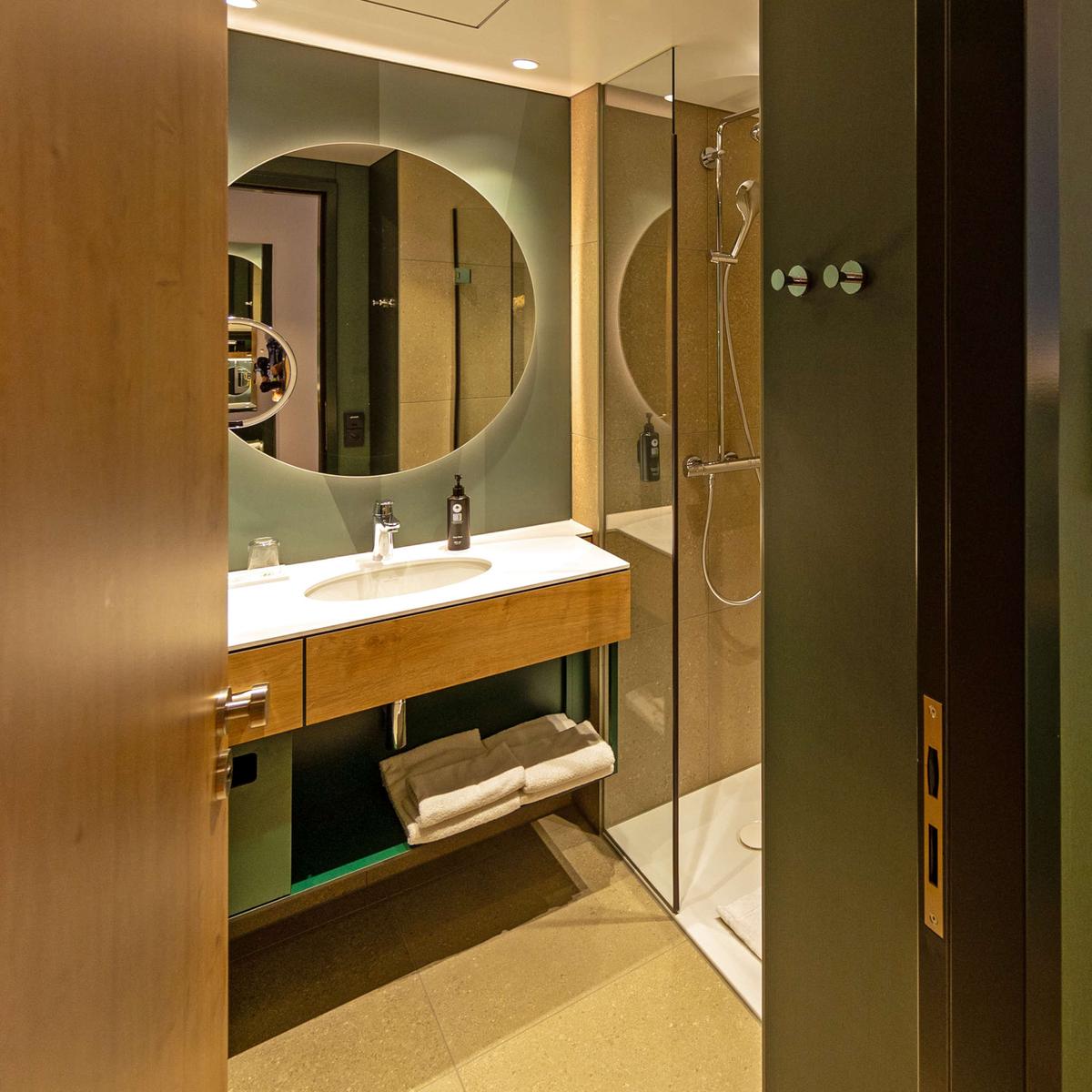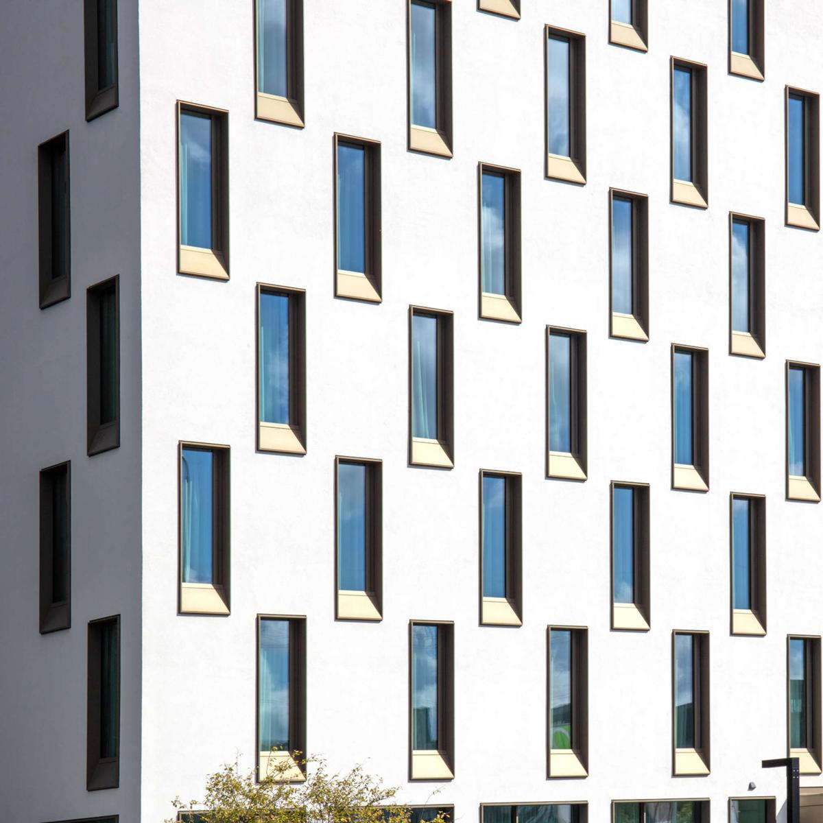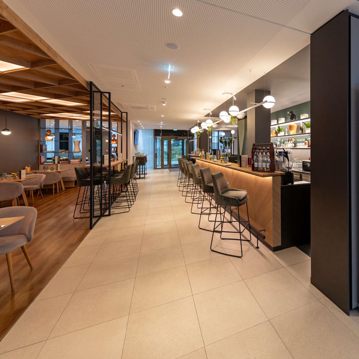 Auf einer Fläche von 2.486 m² realisierte Köster das schlüsselfertige Hotelgebäude über sieben Etagen mit 215 Zimmern. Im Erdgeschoss verfügt das Hotel über einen großzügigen Restaurant-, Foyer u. Barbereich mit Vollküche und Büroräumen. Der Fitnessraum für Hotelgäste befindet sich im Untergeschoss. Optisch lässt sich die Einfügung des orthogonal ausgerichteten Gebäudes in das streng geordnete, rechtwinklige Gesamtsystem hervorheben.