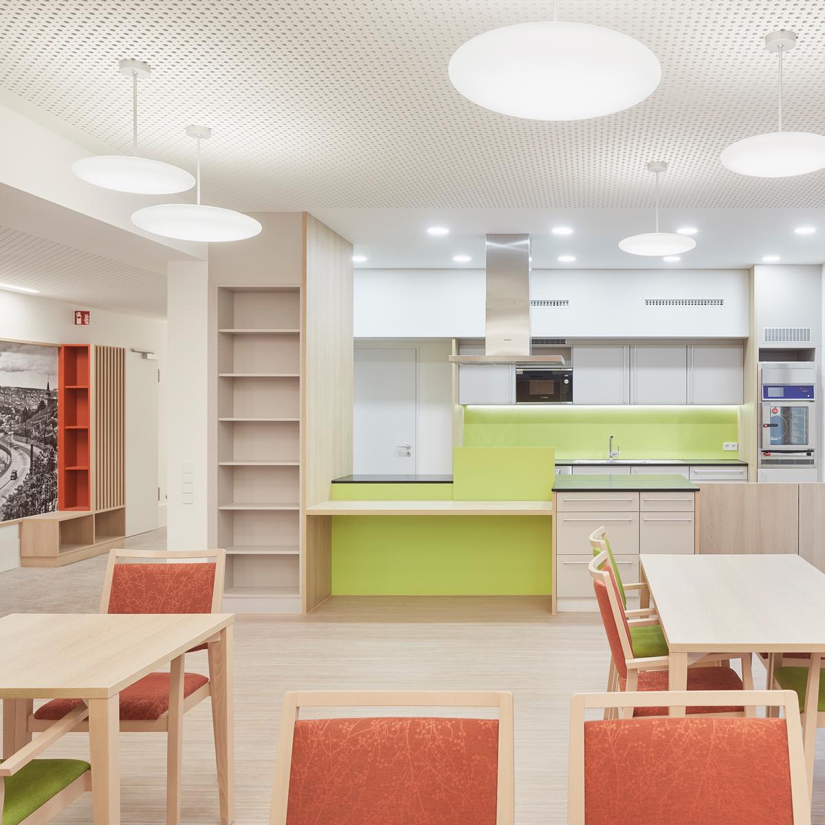 Sanierung eines Pflegeheimes mit insgesamt 87 Pflegeplätzen, 11 Wohnungen und einer Kindertagesstätte. Das bereits seit den 1960er-Jahren bestehende Gebäude wurde durch Köster kernsaniert. Die Treppenhauskerne wurden neu errichtet und mit zwei Aufzügen ausgestattet. Hierbei war eine überdurchschnittliche Einsatzbereitschaft des gesamten Baustellenteams erforderlich, da die Sanierung eines Gebäudes ein hohes Maß an Kreativität erfordert. Wirtschaftlich konnte dieses Projekt unter dem vorgegebenen Budgetrahmen des Kunden bleiben, während zahlreiche individuelle Lösungen während des Bauablaufs bewältigt werden mussten.
