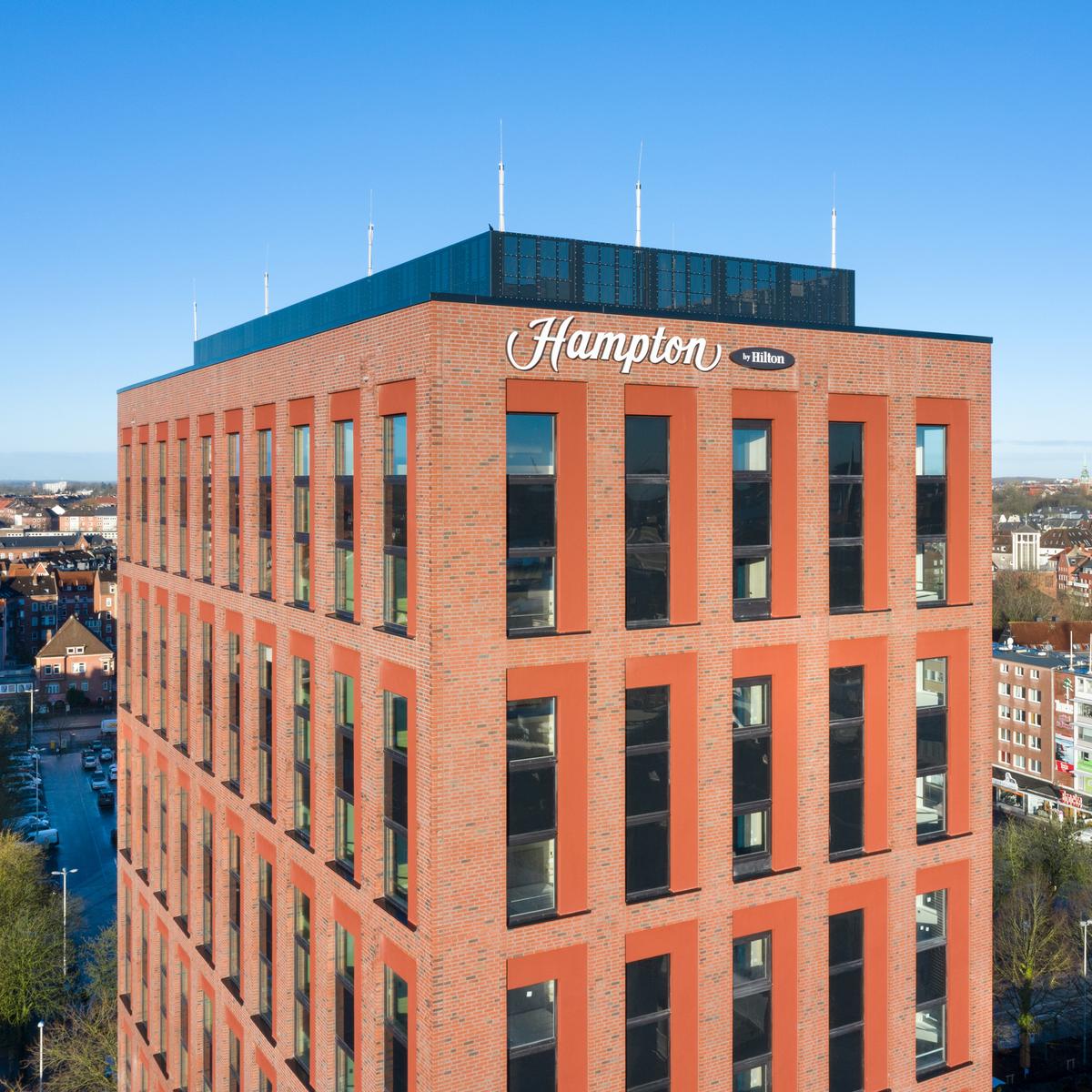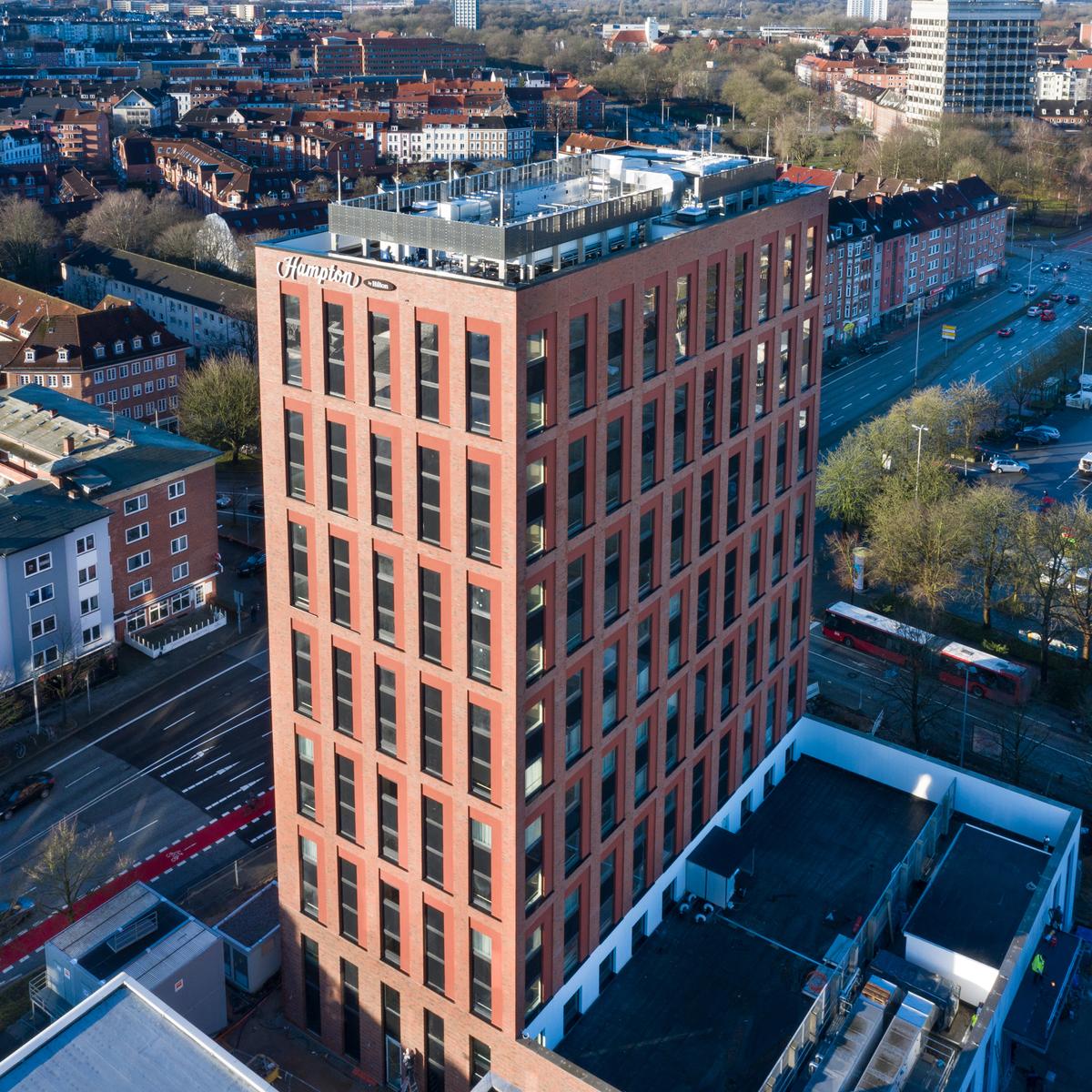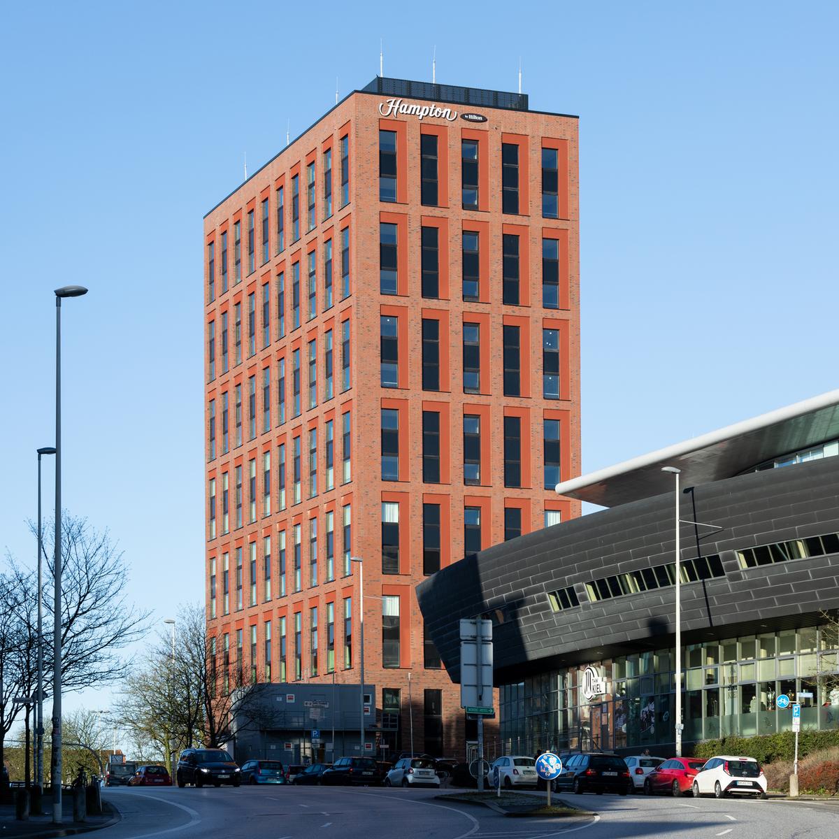 Im Auftrag der Revitalis Real Estate realisierte Köster den Rohbau des 45 m hohen Hotel-Neubaus der Hampton by Hilton Kette in Kiel. Mit einem Sondervorschlag zur Bauweise konnte Köster bereits in der Angebotsphase die Voraussetzung für die besonders schnelle Errichtung des Rohbaus schaffen und das Budgetziel des Kunden einhalten. Die Kombination aus ein- und zweigeschossigen Betonfertigteilen, die just-in-time auf der Baustelle angeliefert wurden, führte zu der deutlichen Kosten- und Zeitersparnis.