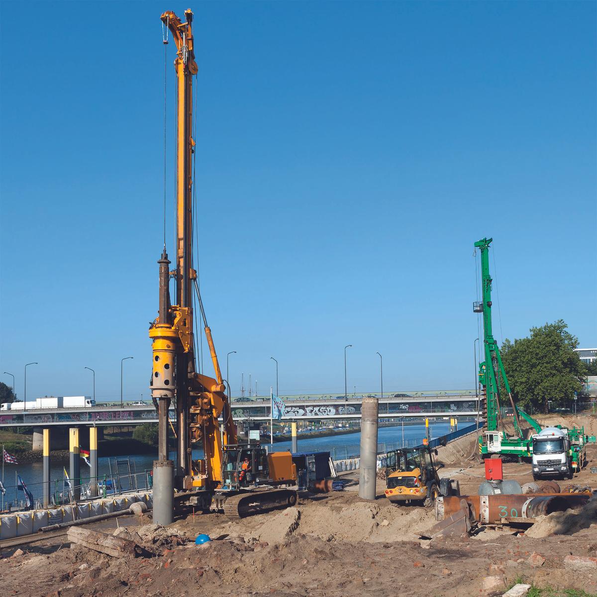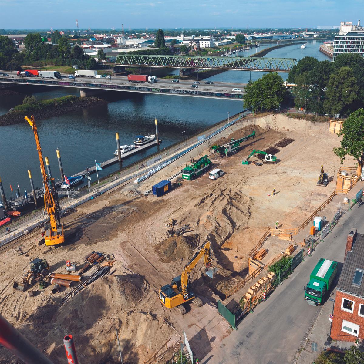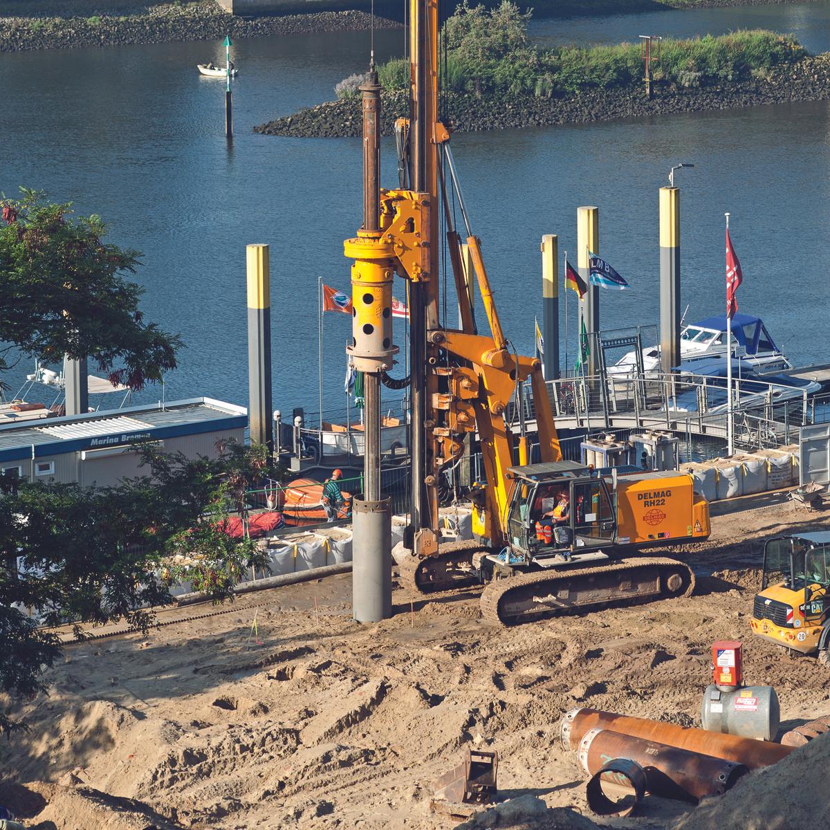 Ersatzneubau der bestehenden Hochwasserschutzanlage durch eine überschnittene Bohrpfahlwand mit aufgesetzter Stahlbetonwand. Die Maßnahme wurde von archäologischen Grabungen begleitet. Verfahrenstechnische Optimierungen der Pfahlwand verkürzten die Bauzeit. Industriell erzeugte Halbfertigteile sicherten die ambitionierte Produktionszeit der Stahlbetonwand.