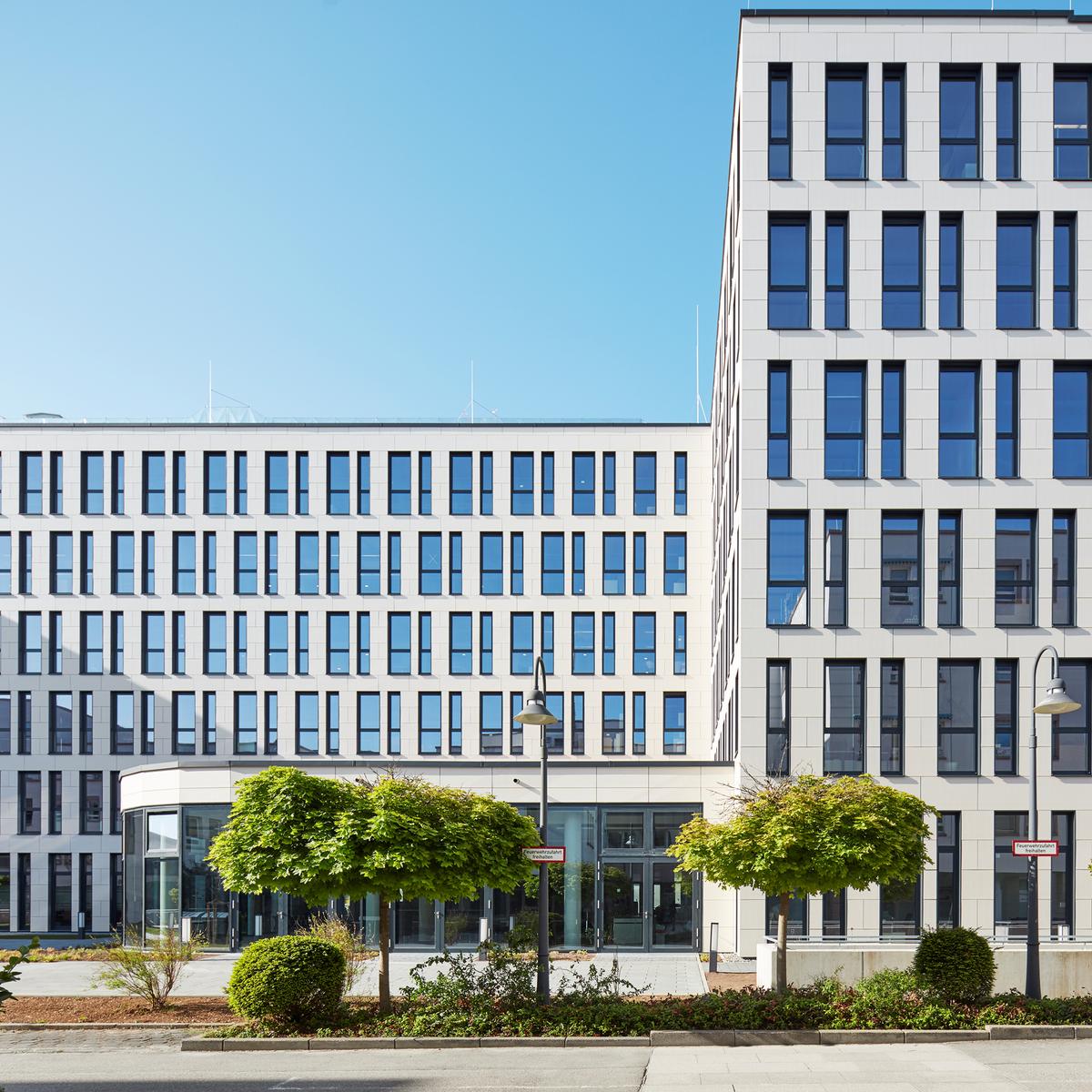 Schlüsselfertiger Neubau eines Büro- / Verwaltungsgebäudes mit 600 Arbeitsplätzen und einer Tiefgarage mit 192 Pkw-Stellplätzen sowie Lager- und Technikbereich.