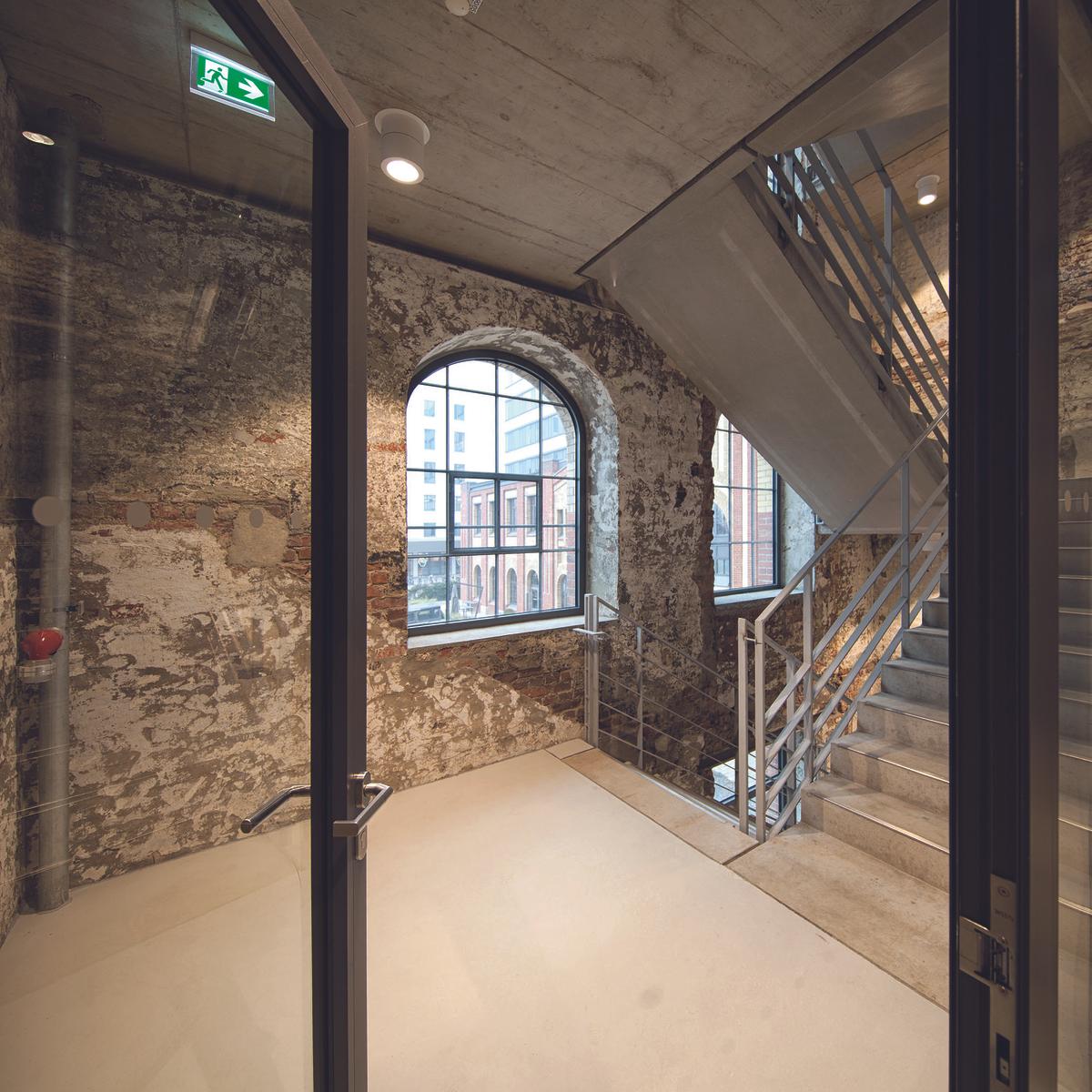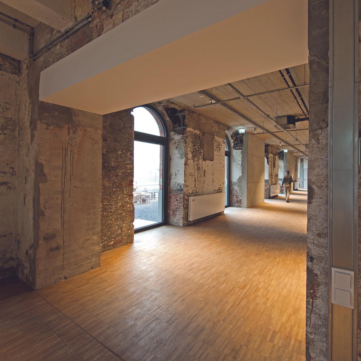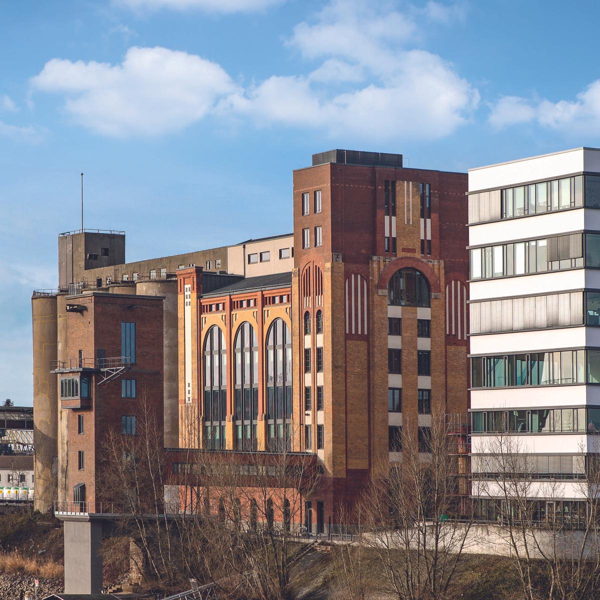 Auf dem Gelände der Düsseldorfer Plange Mühle übernahm Köster die schlüsselfertige Sanierung und den Umbau einer denkmalgeschützten Siloanlage aus dem Jahr 1906 in ein Büro- und Geschäftshaus. Während des Teilabbruchs sicherten die Bauexperten Teile der Ziegelfassade, arbeiteten Bauteile auf und integrierten diese wieder. Aus statischen Gründen wurde der Dachstuhl neuwertig nachgebaut. Ein umfangreicher Hochwasserschutz sicherte die Baustelle am Hafenbecken.