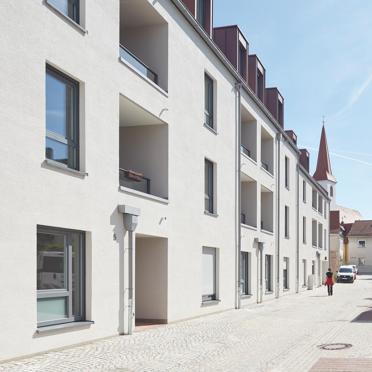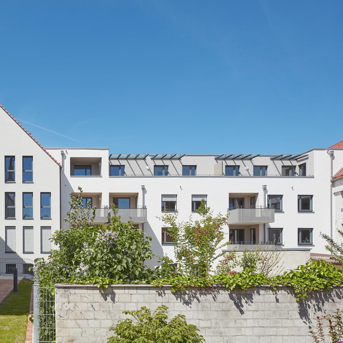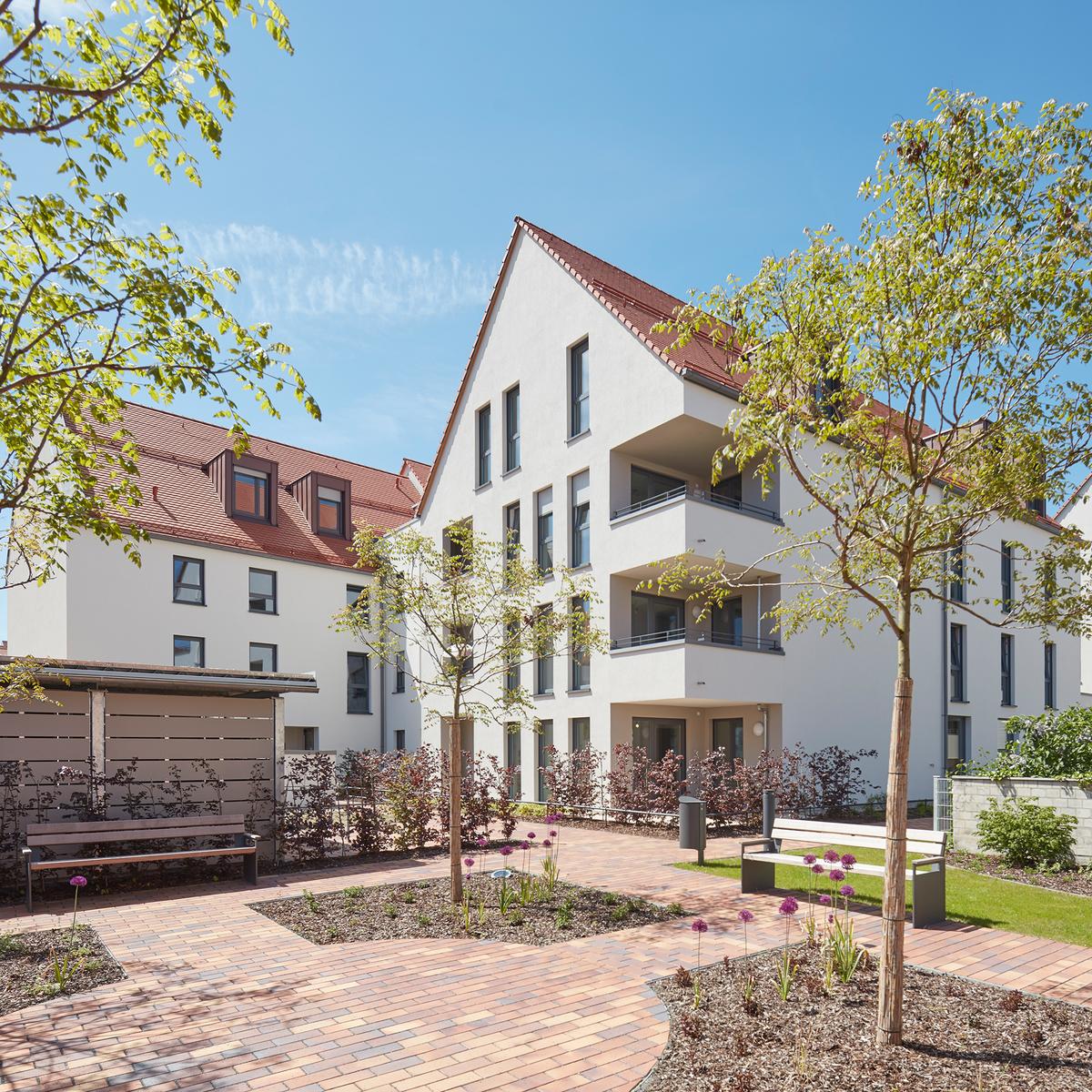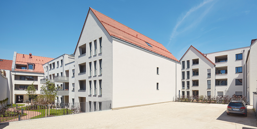 62 seniorenfreundliche Eigentums-Wohnungen mit angebundenem Service-Angebot sowie 8 Mikroappartements zählen zu der neuen Wohnanlage in Neumarkt i. d. Oberpfalz, die der Hochbau Nürnberg für die KIB Gruppe realisierte. Die Idee der Wohnform verknüpft die größtmögliche Eigenständigkeit der Bewohnerinnen und Bewohner mit maximaler Sicherheit. Dafür wurde eine kleinteilige Bebauung gewählt mit hochwertigen Aufenthaltsbereichen.
