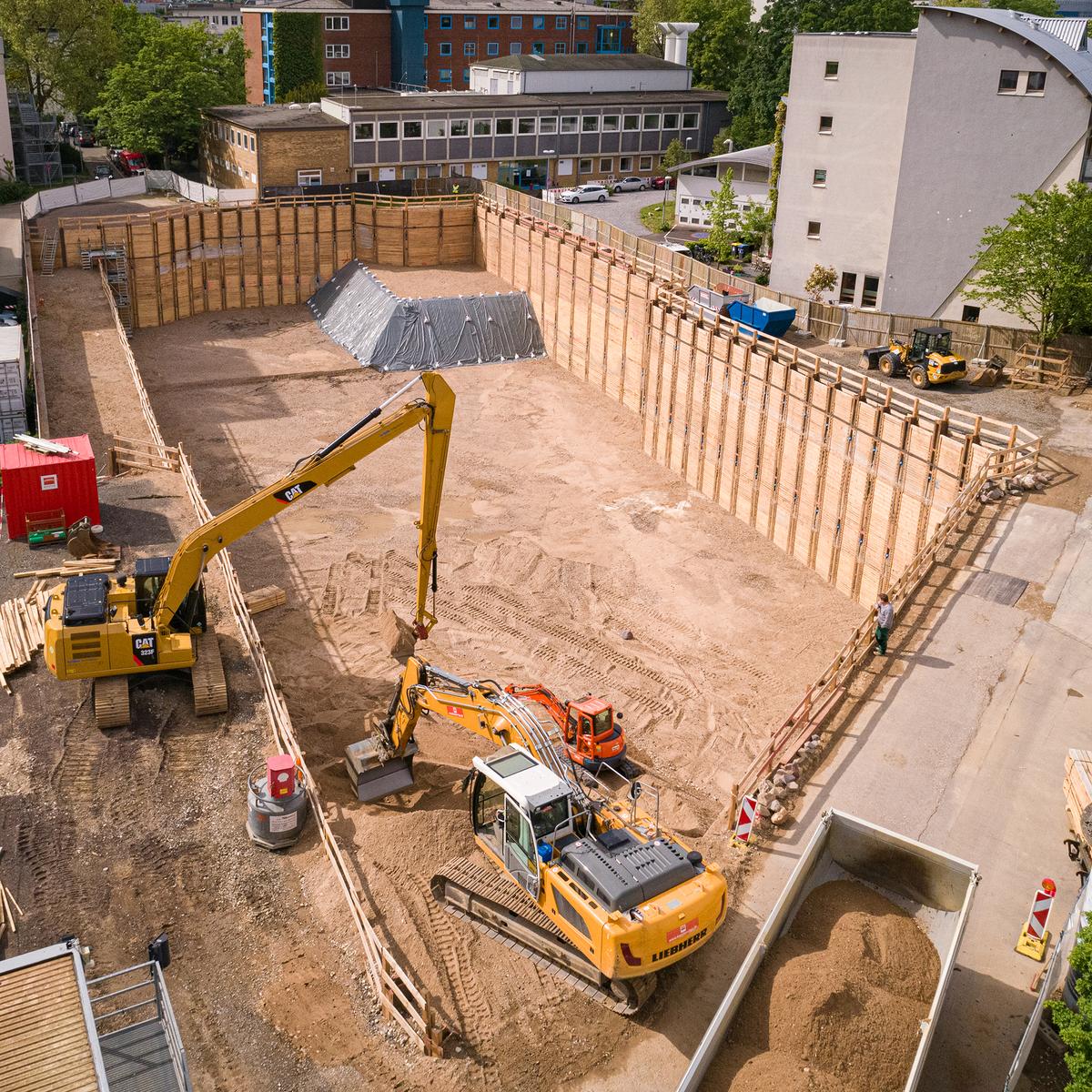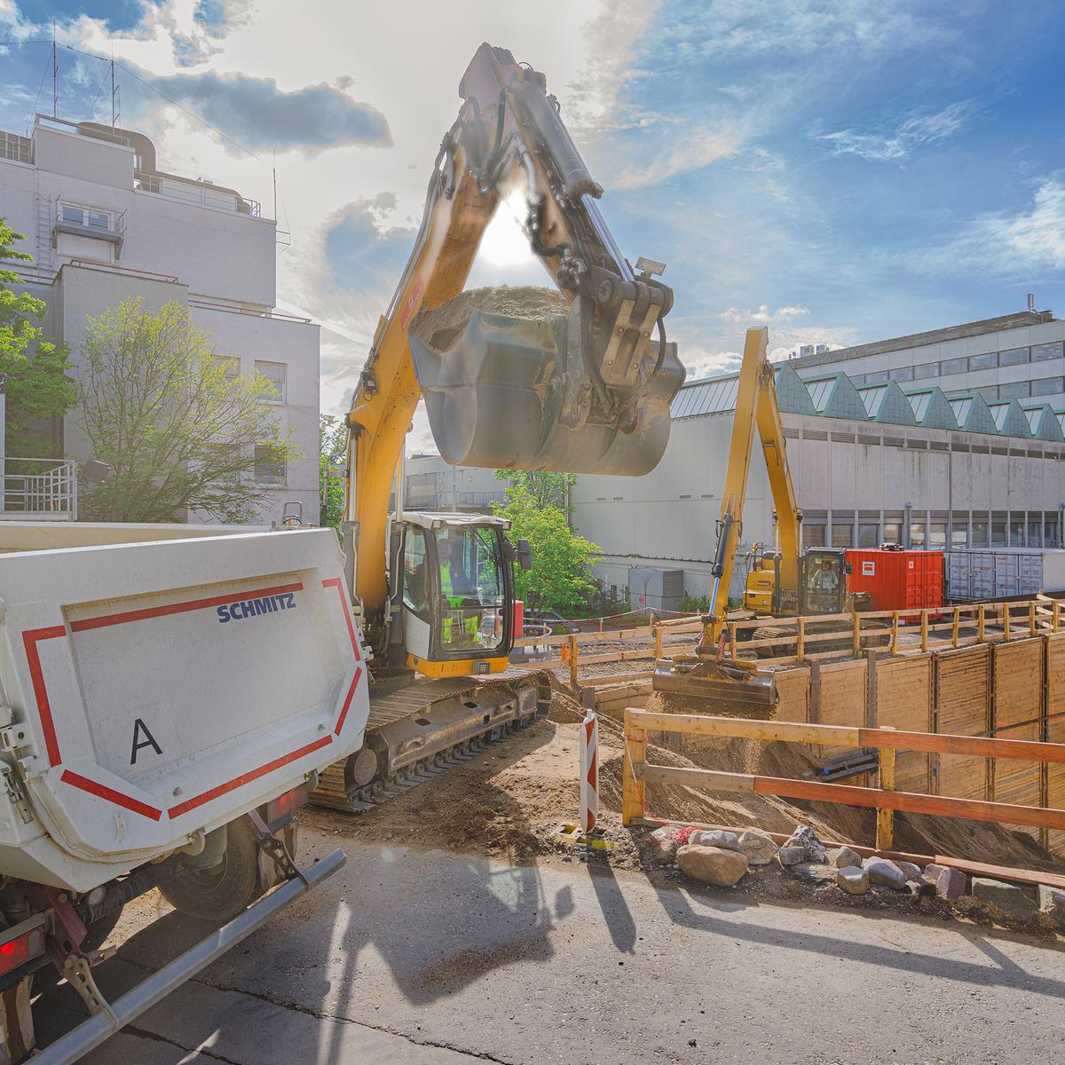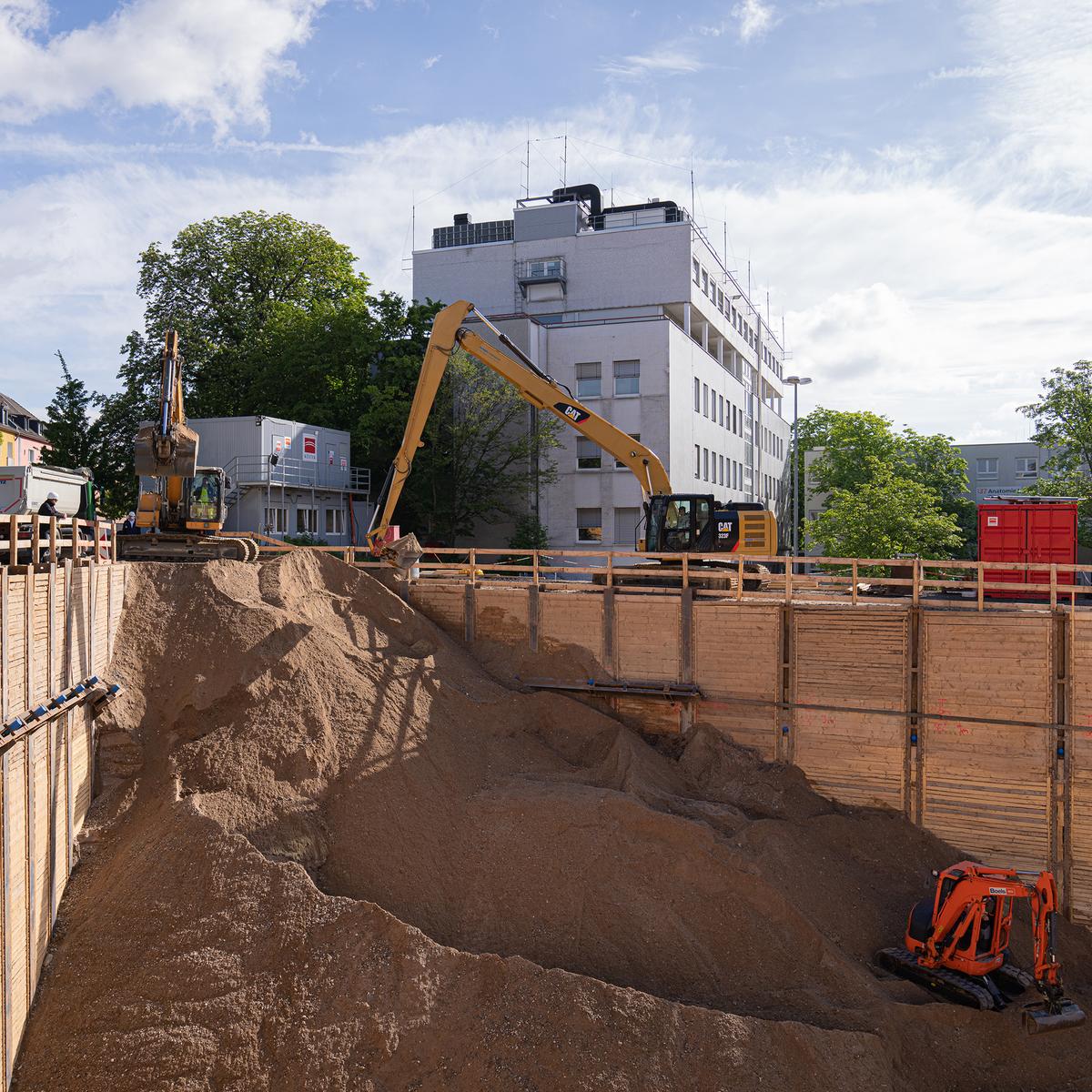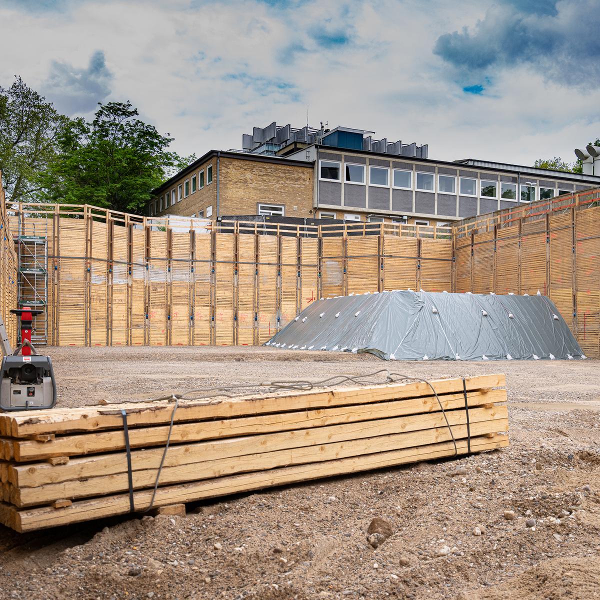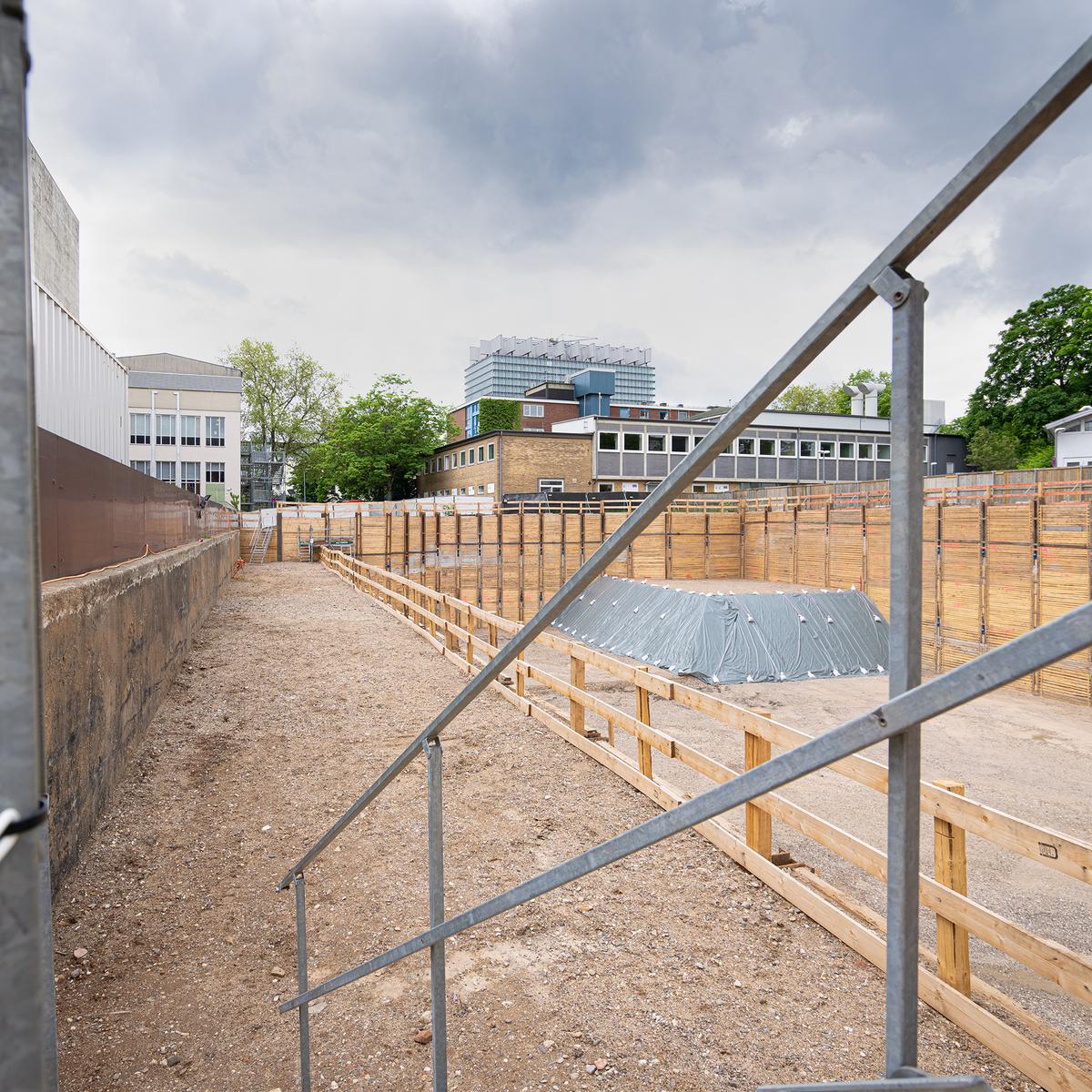 Für den Neubau der Prosektur verantwortete Köster die schlüsselfertige Baugrubenerstellung inkl. Erdbau und Verbauarbeiten. Zur gesonderten Baugrubensicherung wurden 2.000 m² zweifach rückverankerte Trägerbohlwände eingesetzt. Hinzu kamen 25.000 m³ Bodenaushub und 45.000 t Boden zur Entsorgung. In der frühen Konzeptionsphase steigerte Köster mit einer Änderung des Verbausystems und einer statischen Optimierung die Wirtschaftlichkeit des Projekts. Die Budgetsicherheit wurde durch eine Pauschalierung für die Entsorgung der Böden erhöht.