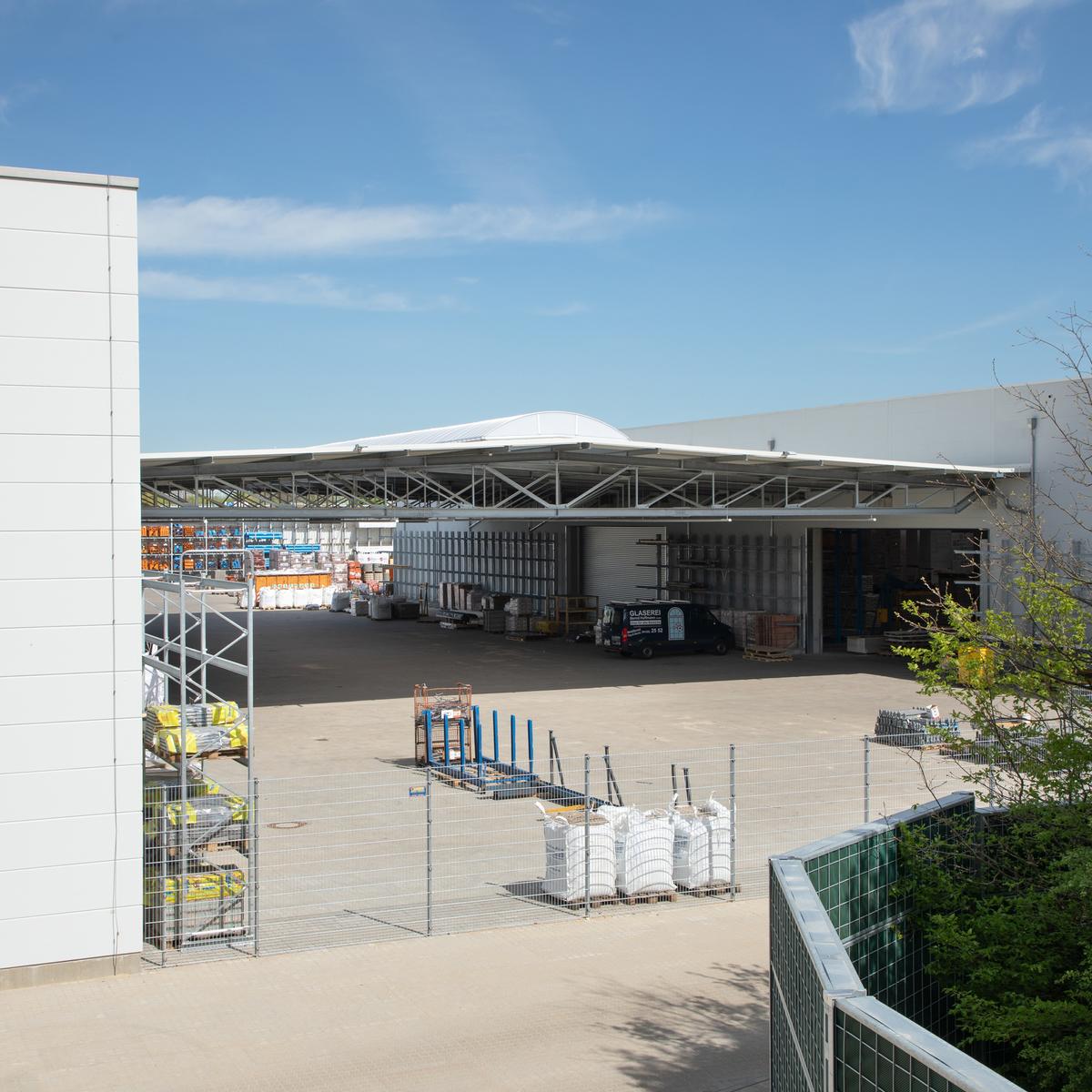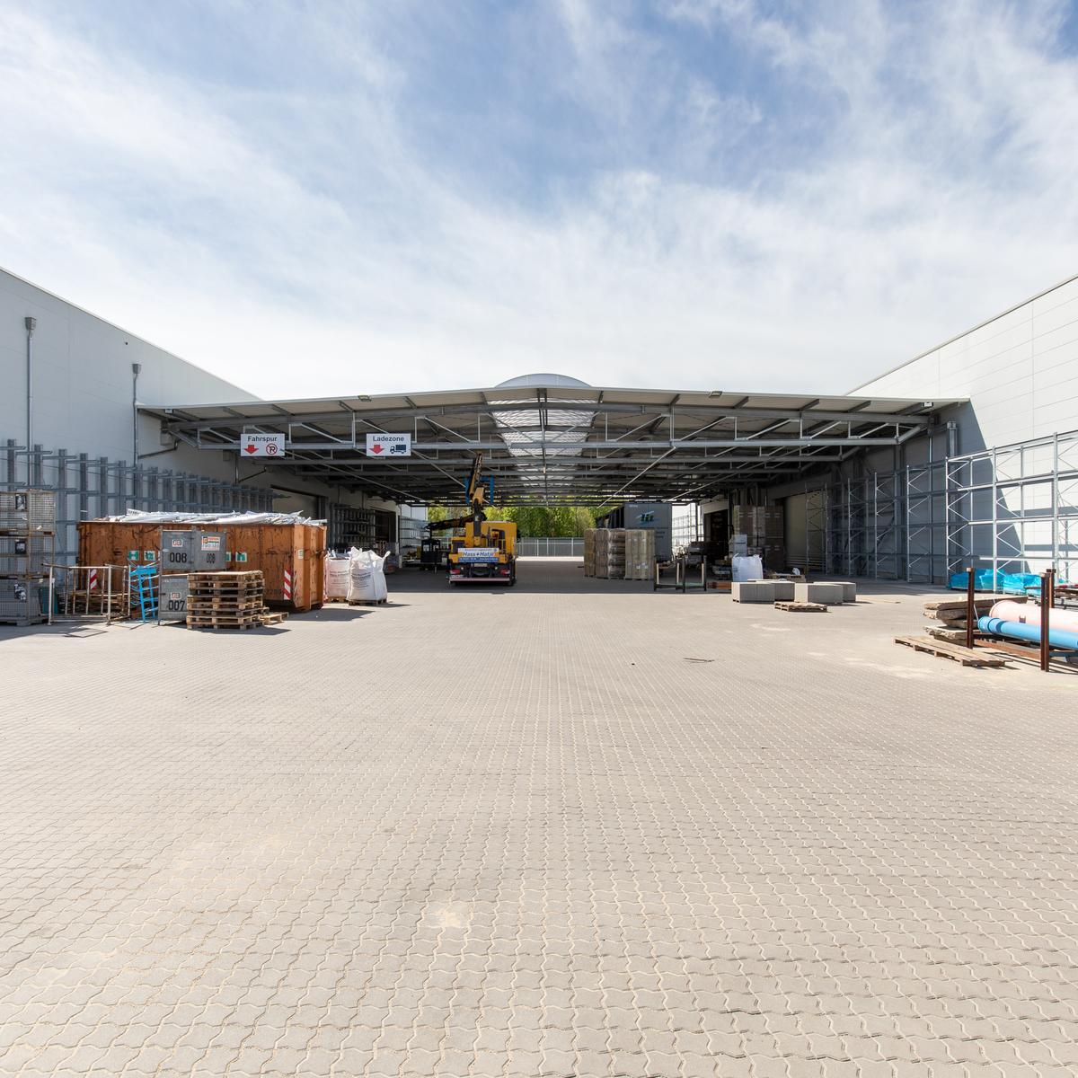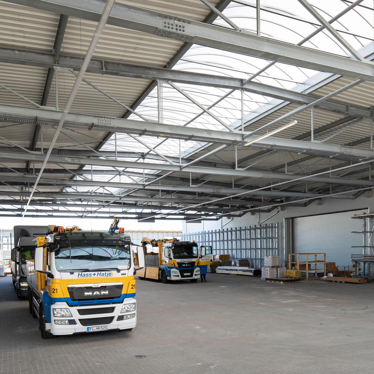 Schlüsselfertiger Neubau einer Lagerhalle mit Porenbetonfassade, Trapezblech, Gründach Vordach mit Lichtband sowie Ausführungsplanung in der Objektplanung und Tragwerksplanung. Dank vorangegangener Besichtigung einer Referenzfläche konnte der Kundenwunsch nach einer fugenlosen Industriesohle erfüllt werden. Der Einsatz des Steuerungsinstruments Köster-Masterplan sorgte für einen reibungslosen Bauablauf.