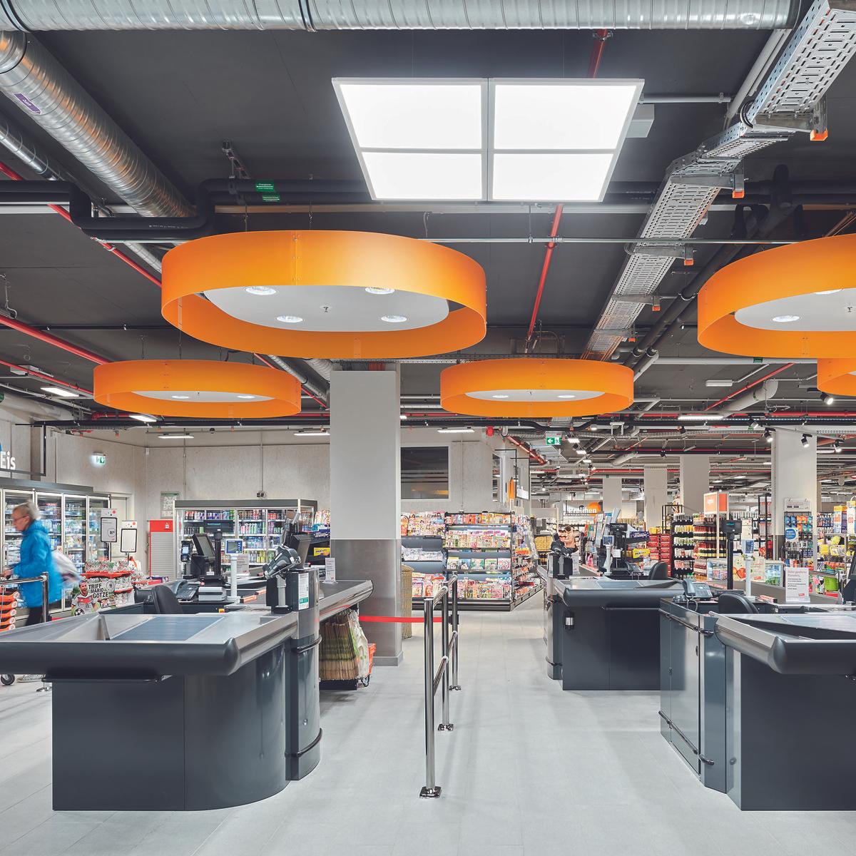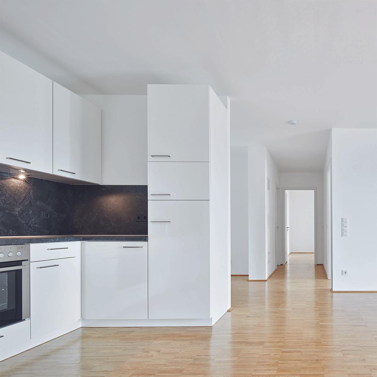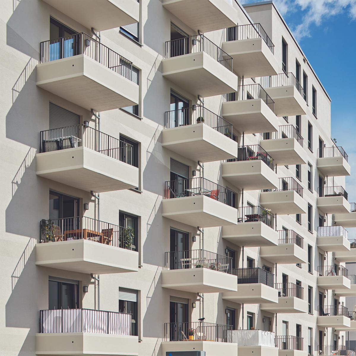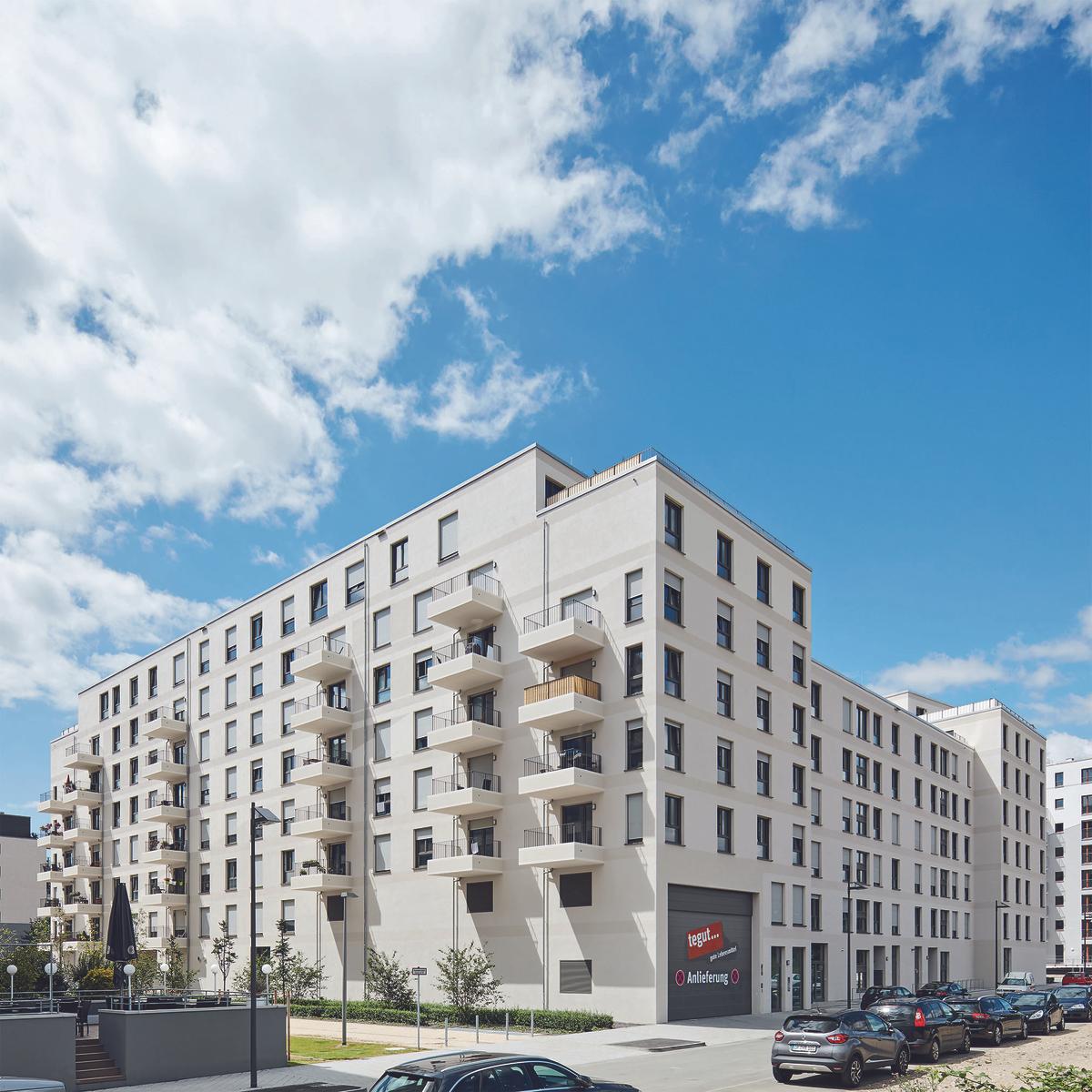 Schlüsselfertiger Neubau eines Geschäfts- und Wohngebäudes mit 147 Wohnungen und Gewerbeflächen im Erdgeschoss sowie Tiefgarage mit 222 Pkw-Stellplätzen inkl. Planung. Mit einem detaillierten Logistikkonzept konnte die innerstädtische Immobilie in der geplanten Bauzeit nach den DGNB-Standards in Silber realisiert werden.