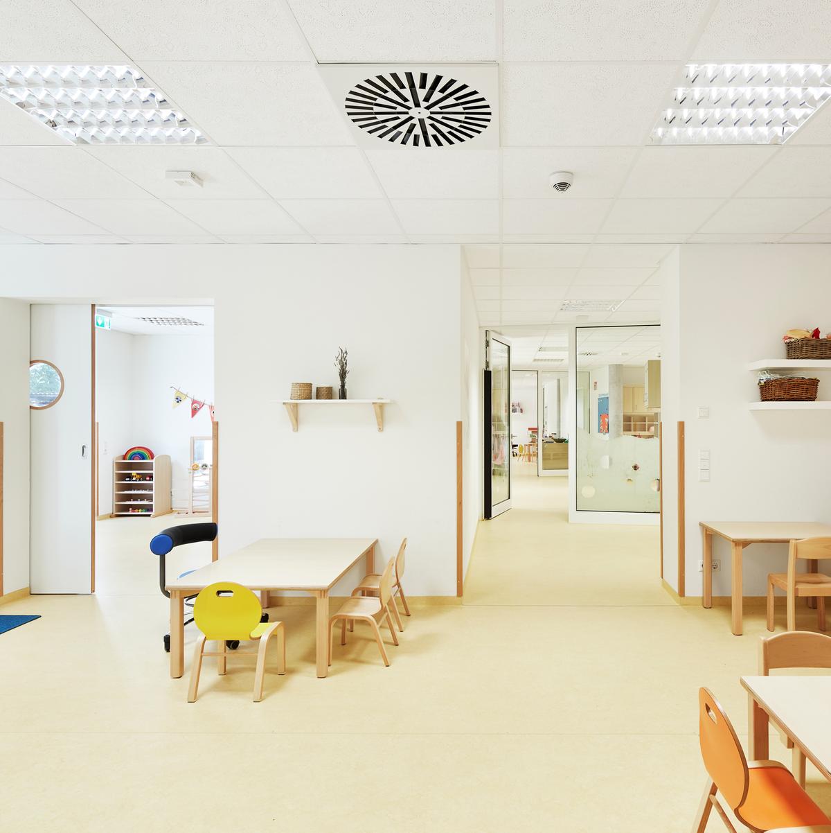 Schlüsselfertiger Neubau eines Mehrgenerationen-Wohngebäudes mit 60 Wohnungen, Kindertagesstätte, Altenclub und Begegnungsstätten inkl. Tiefgarage mit 11 Pkw-Stellplätzen sowie Verbindungsgang zur Mutterhauskirche des Kirchenordens "Orden der barmherzigen Schwestern vom heiligen Vinzenz von Paul". Durch intensive Beratungen in der Angebotsphase konnten Optimierungsmaßnahmen für den Kunden erarbeitet werden.