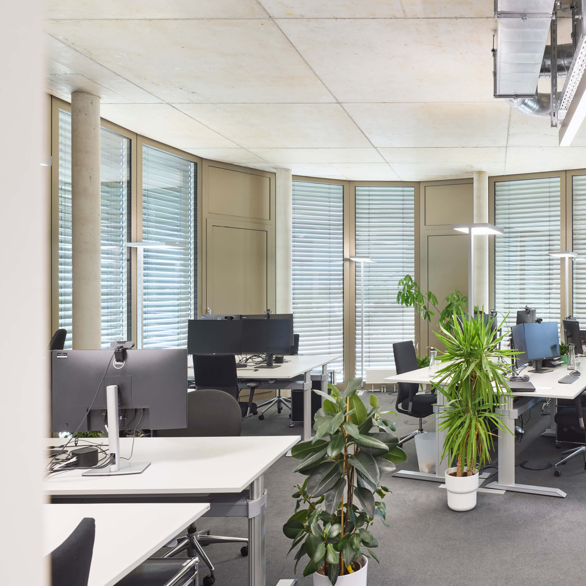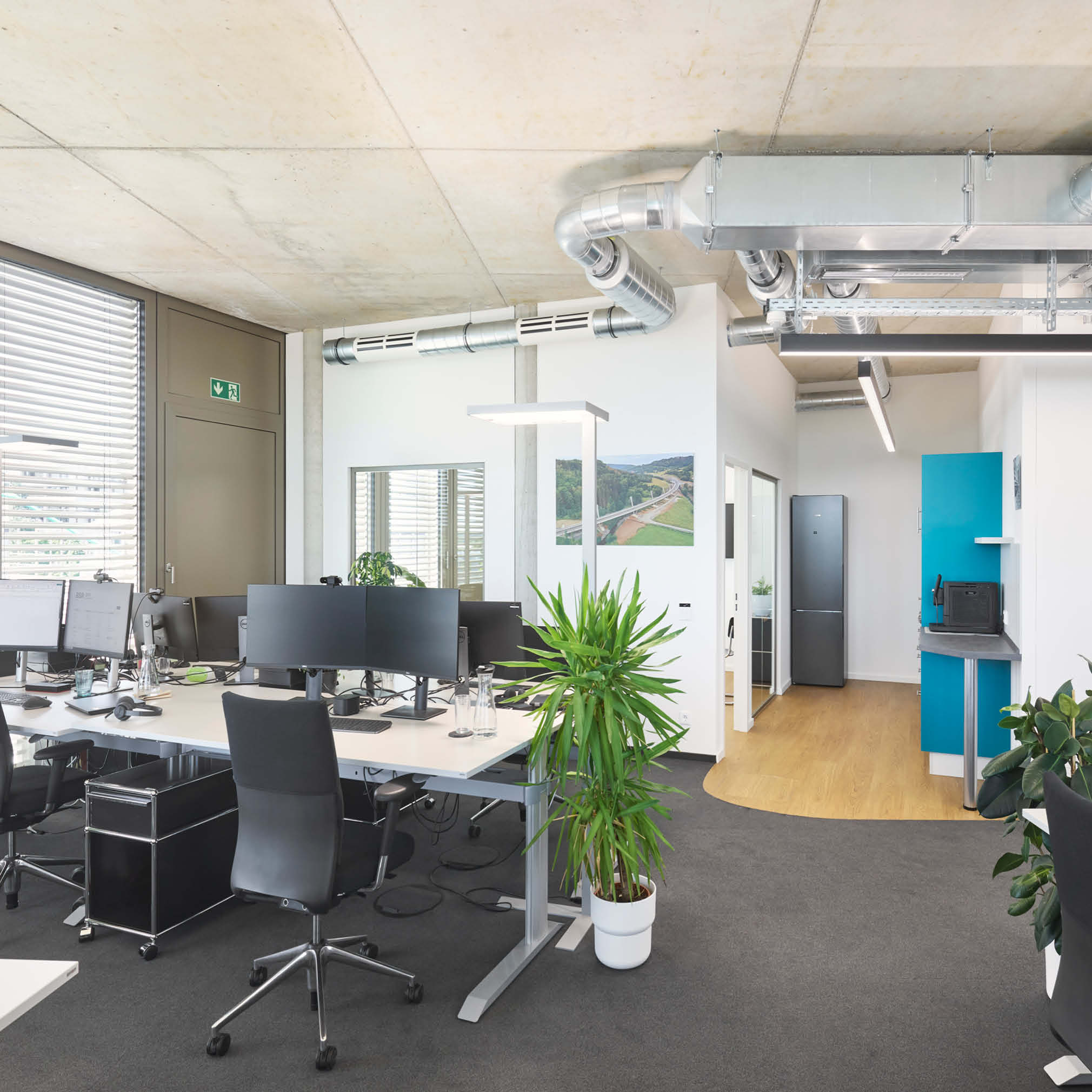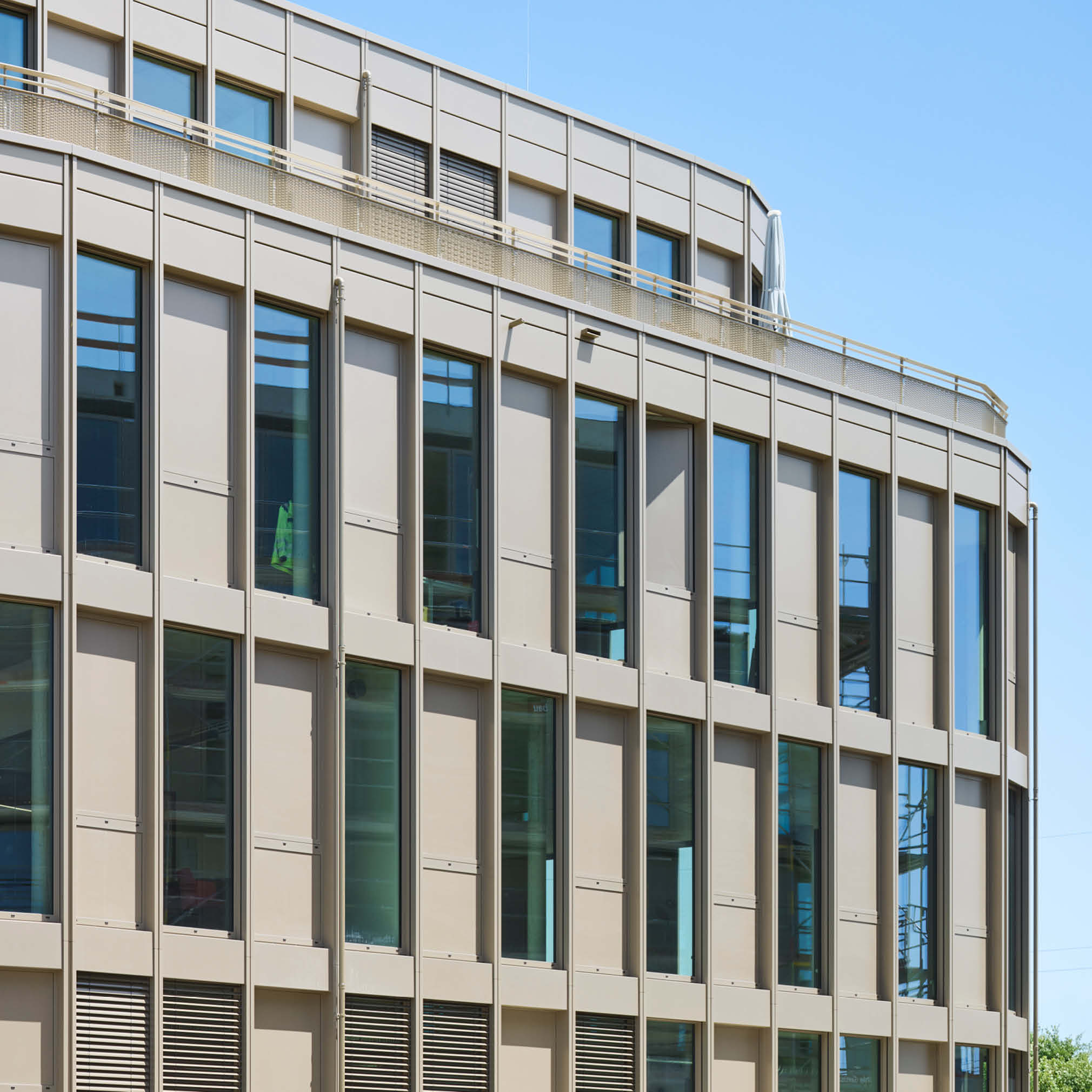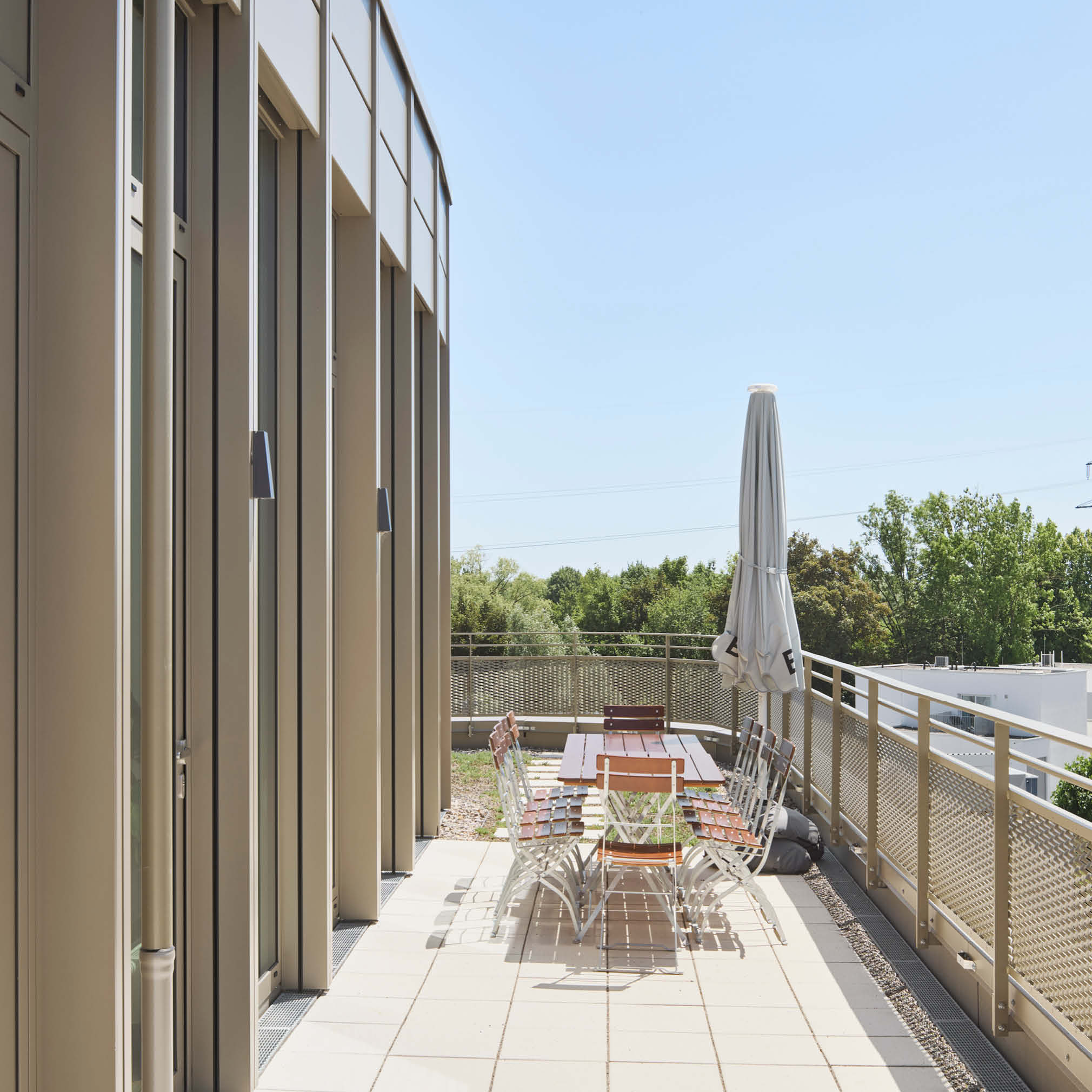 In Augsburg entsteht ein dreiteiliges Gebäude-Ensemble mit insgesamt 11.780 m² Bürofläche. Die stufenweise Realisierung erfolgt abhängig vom Vermietungsstand, Haus 1 ist fertiggestellt, Haus 2 befindet sich im erweiterten Rohbau. Die Architektur im Light Industrial Style sieht offene Grundrisse vor. Das Energiekonzept umfasst einen Eisspeicher, Wärmepumpen sowie eine Photovoltaikanlage zur Reduzierung der Betriebskosten und zur Sicherstellung der Nachhaltigkeit. Nach 12 Monaten Bauzeit wurde das Gebäude schlüsselfertig übergeben.
