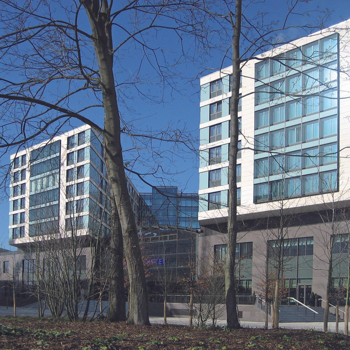 Rohbau eines 4-Sterne-Hotels mit 533 Zimmern und angegliedertem Konferenz- und Veranstaltungsbereich für bis zu 5.000 Personen sowie Tiefgarage mit 450 PKW-Stellplätzen am Düsseldorfer Flughafen.