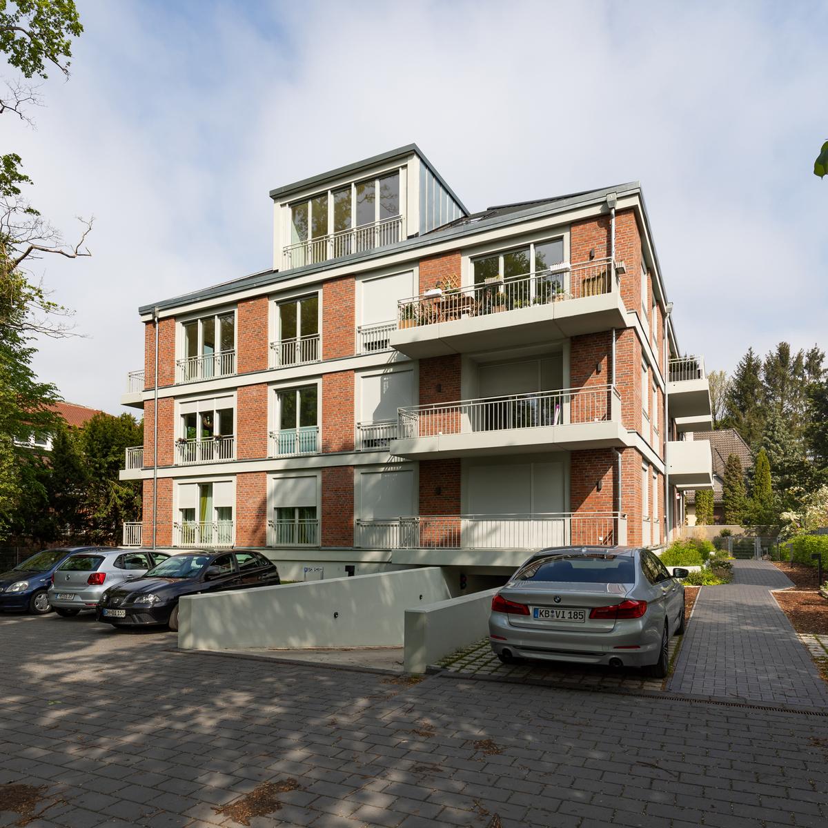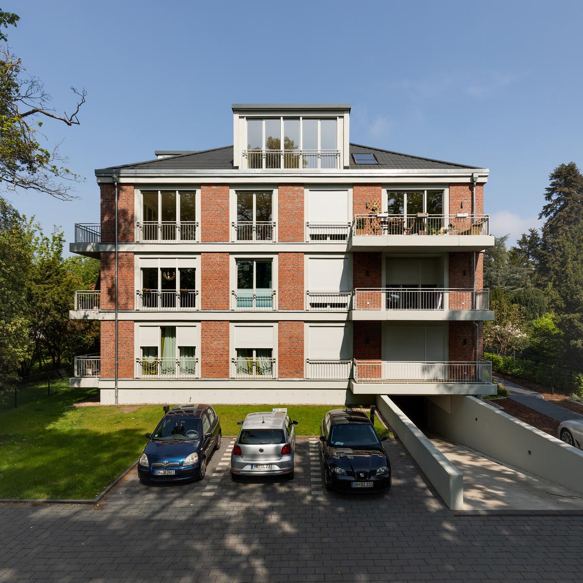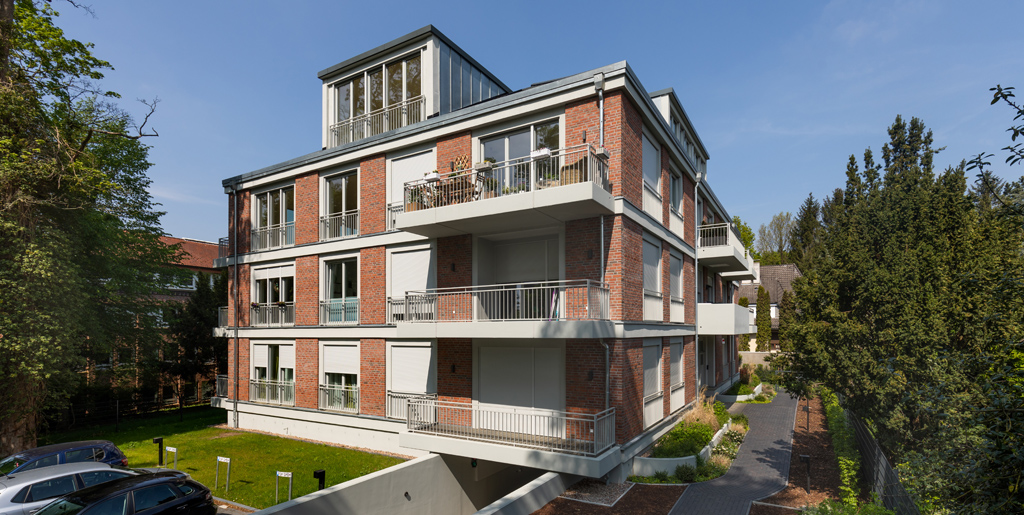 Schlüsselfertiger Neubau mit 13 exklusiven Eigentumswohnungen auf insgesamt 1.400 m² Wohnfläche sowie einer Tiefgarage. Die Fassade wurde in altem Villenstil gestaltet. Dank der frühzeitigen Einbindung des Köster-Geschäftsbereichs, der auch die Ausführungsplanung übernahm, wurde das Bauvorhaben sicher innerhalb des Bugdetrahmens realisiert. Köster sorgte auch für die Sonderwunschabwicklung aller Wohneinheiten.