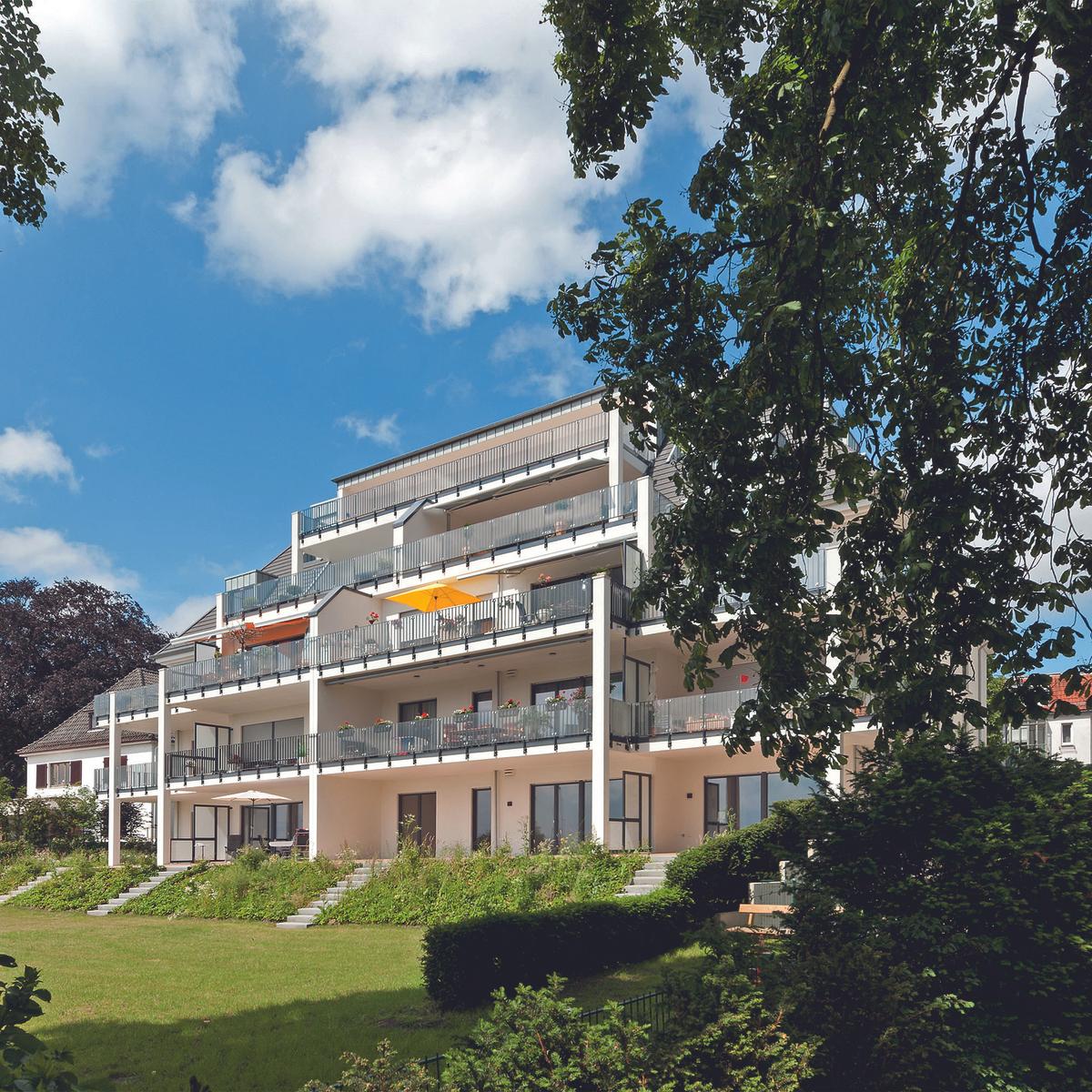 Schlüsselfertiger Neubau eines exklusiven Wohngebäudes mit 15 Eigentumswohnungen, die über eine Wohnfläche von bis zu 189 qm verfügen. Auf insgesamt 2.400 qm Wohnfläche realisierte Köster, trotz beengter Baustellenverhältnisse in Hanglage, ein hochmodernes Wohngebäude mit anspruchsvoller Fassade im Villenstil. Durch die frühzeitige Einbindung in die Planungsphase konnte der Budgetrahmen eingehalten und das Bauvorhaben für den Kunden besonders wirtschaftlich umgesetzt werden. Köster berücksichtigte zudem, den besonderen Wunsch des Kunden, die Altbebauung im Untergeschoss teilweise zu erhalten.