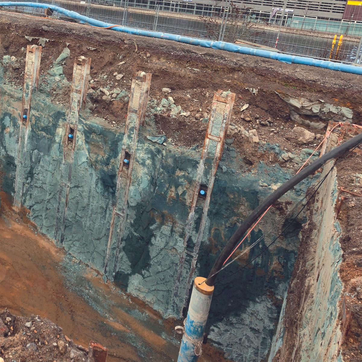 Für den Erweiterungsbau des Museums Küppersmühle realisierte Köster eine wasserdichte Trogbaugrube inkl. Aushub von 6.500 m3 bis 6 m Tiefe. Der Bau erfolgte mittels 3.000 m2 rückverankerten Schlitz- und Dichtwänden sowie Schacht- und Kanalbauarbeiten. Ein von Köster eingebrachter Sondervorschlag im Bereich der Silos führte zu einer höheren Dichtigkeit sowie einer generellen Flexibilität in der Systemtiefe bei gleichzeitiger Zeit- und Kostenersparnis.