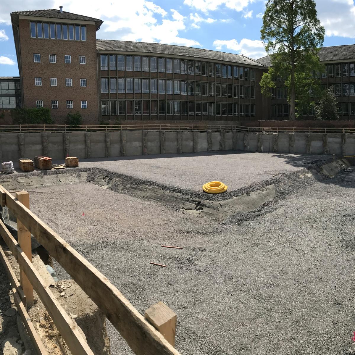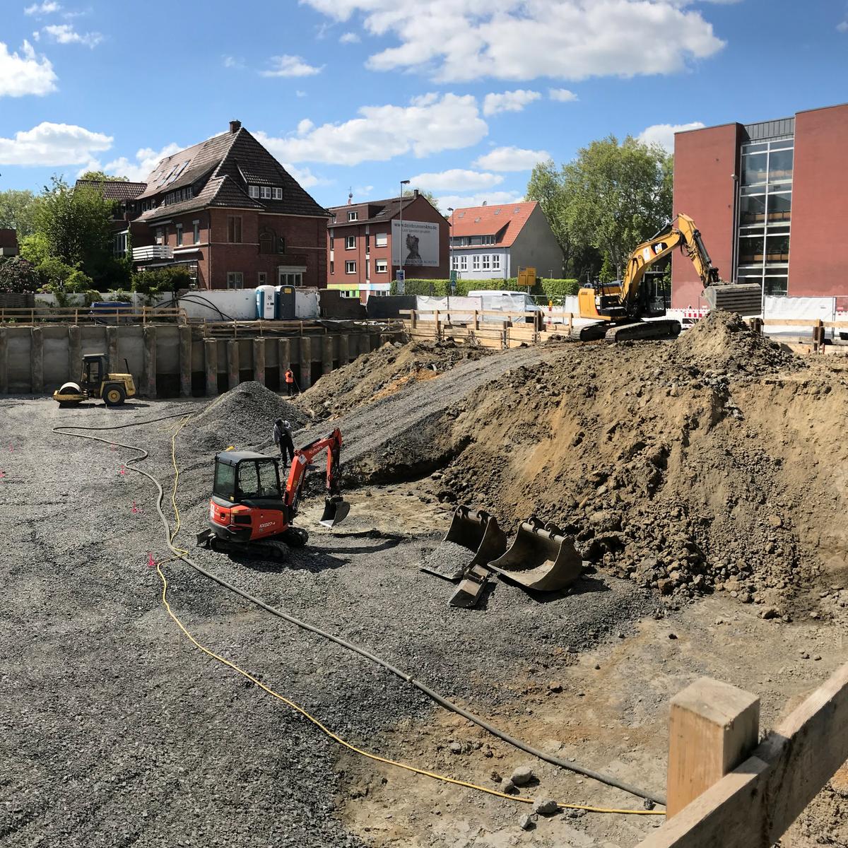Erd-, und Verbauarbeiten, sowie Mikropfahlgründung für den Bau von Mietwohnungen. Während der Angebotsphase wurde die Baugrubenumschließung laufend optimiert und schließlich das optimale Konzept für den Kunden entwickelt. Durch ein getaktetes Logistikkonzept konnten die Arbeiten parallel zu den stattfindenden Abbrucharbeiten des Bestandskellers ausgeführt werden.